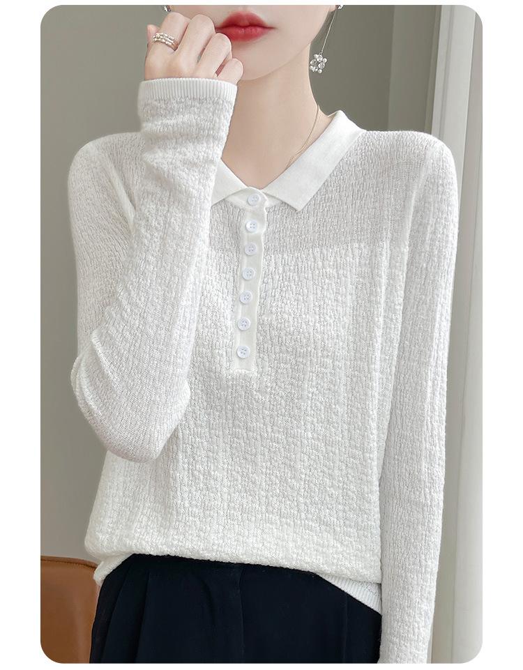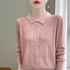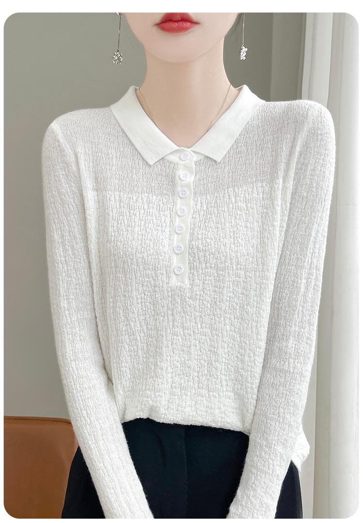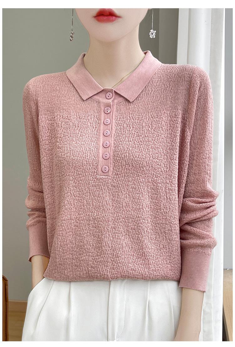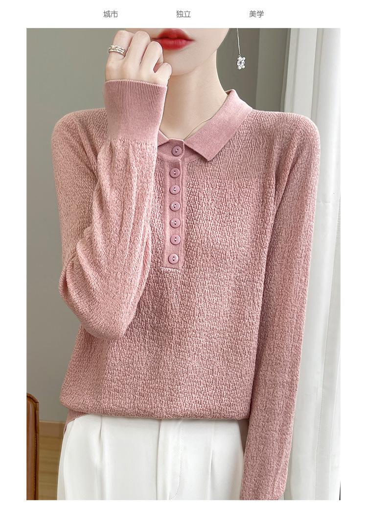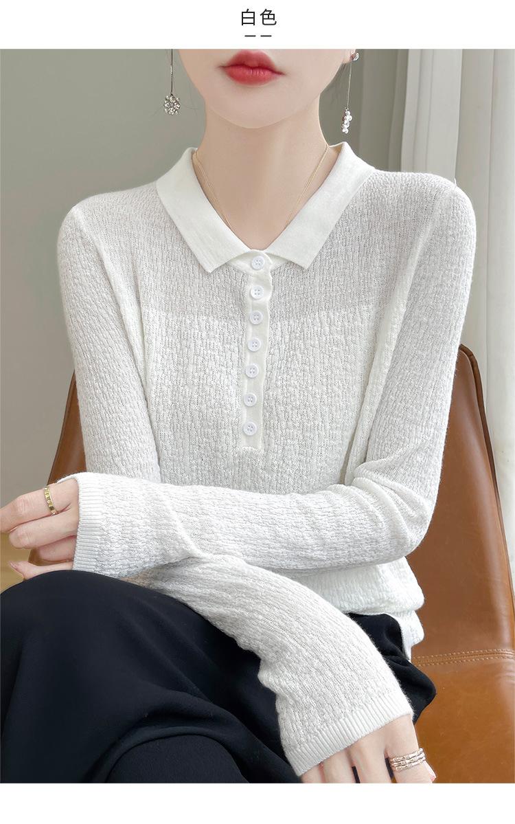 Camiseta Base de Cuello Polo de Otoño Top Delgado 2024 Nuevo Color Sólido Casual Delgado Suéter de Punto de Lana para Mujer