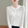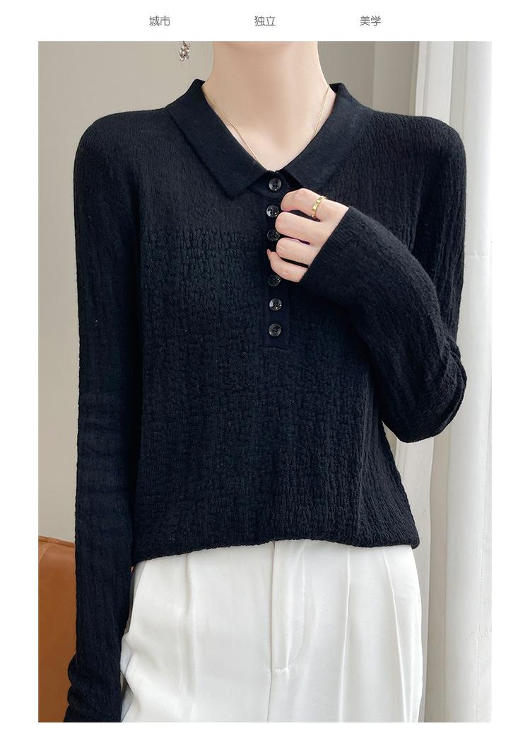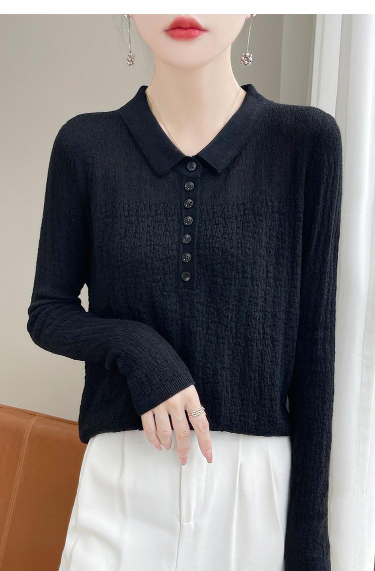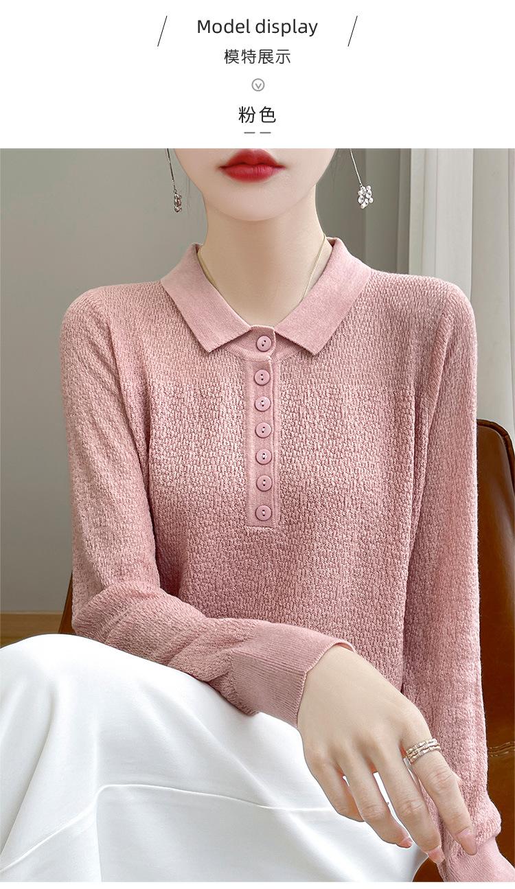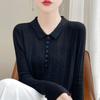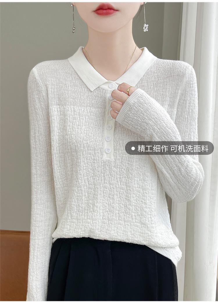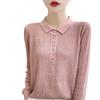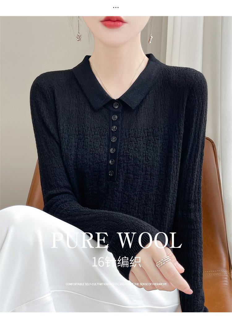 Camiseta Base de Cuello Polo de Otoño Top Delgado 2024 Nuevo Color Sólido Casual Delgado Suéter de Punto de Lana para Mujer