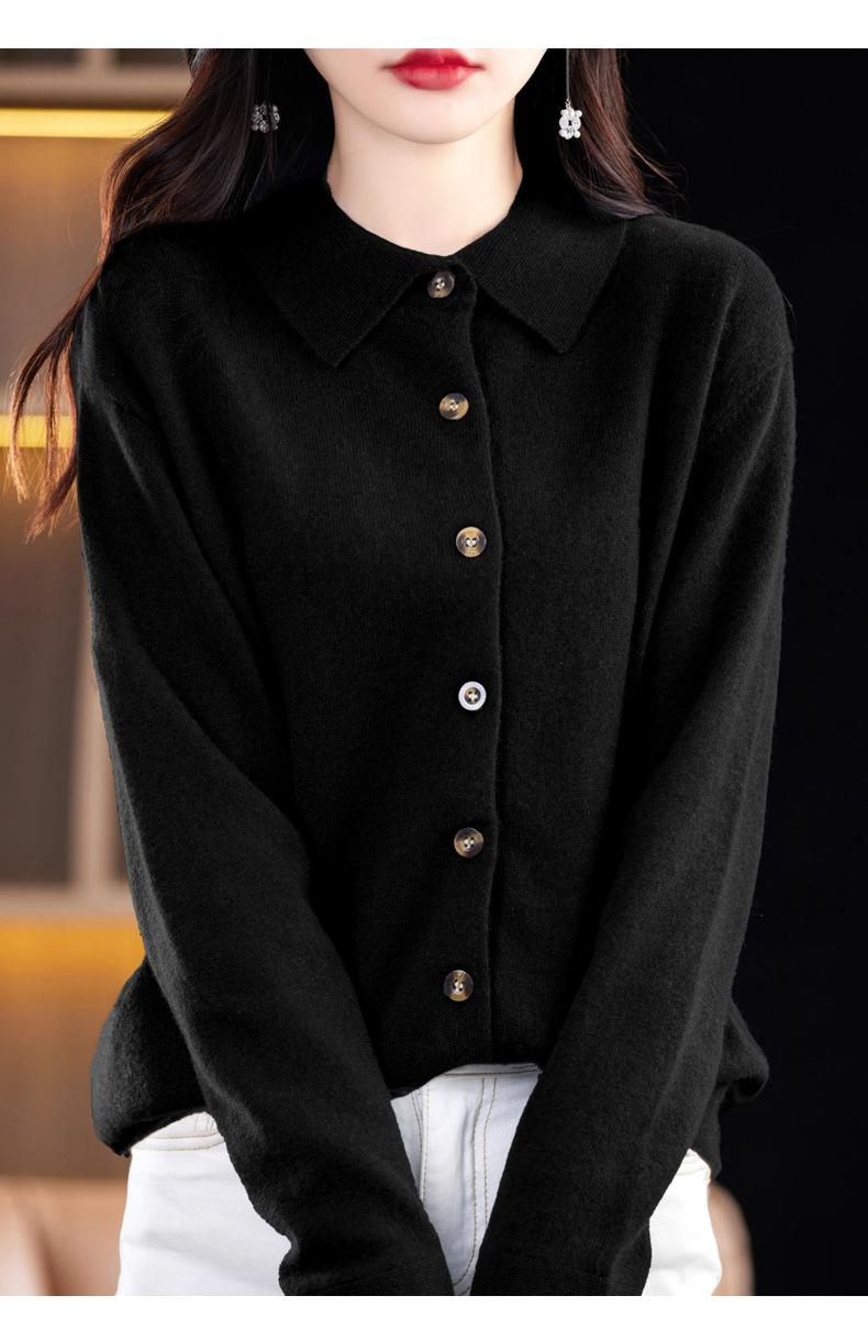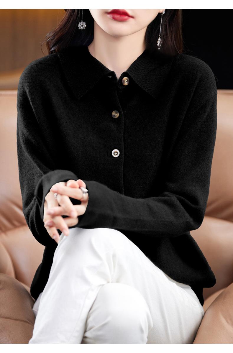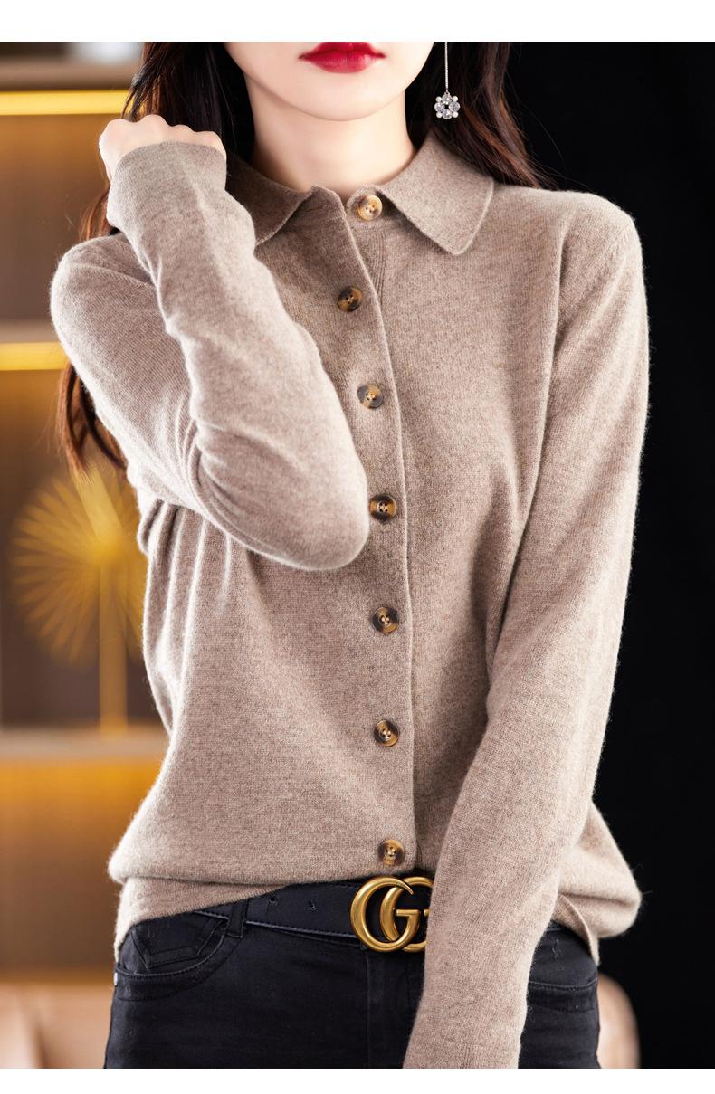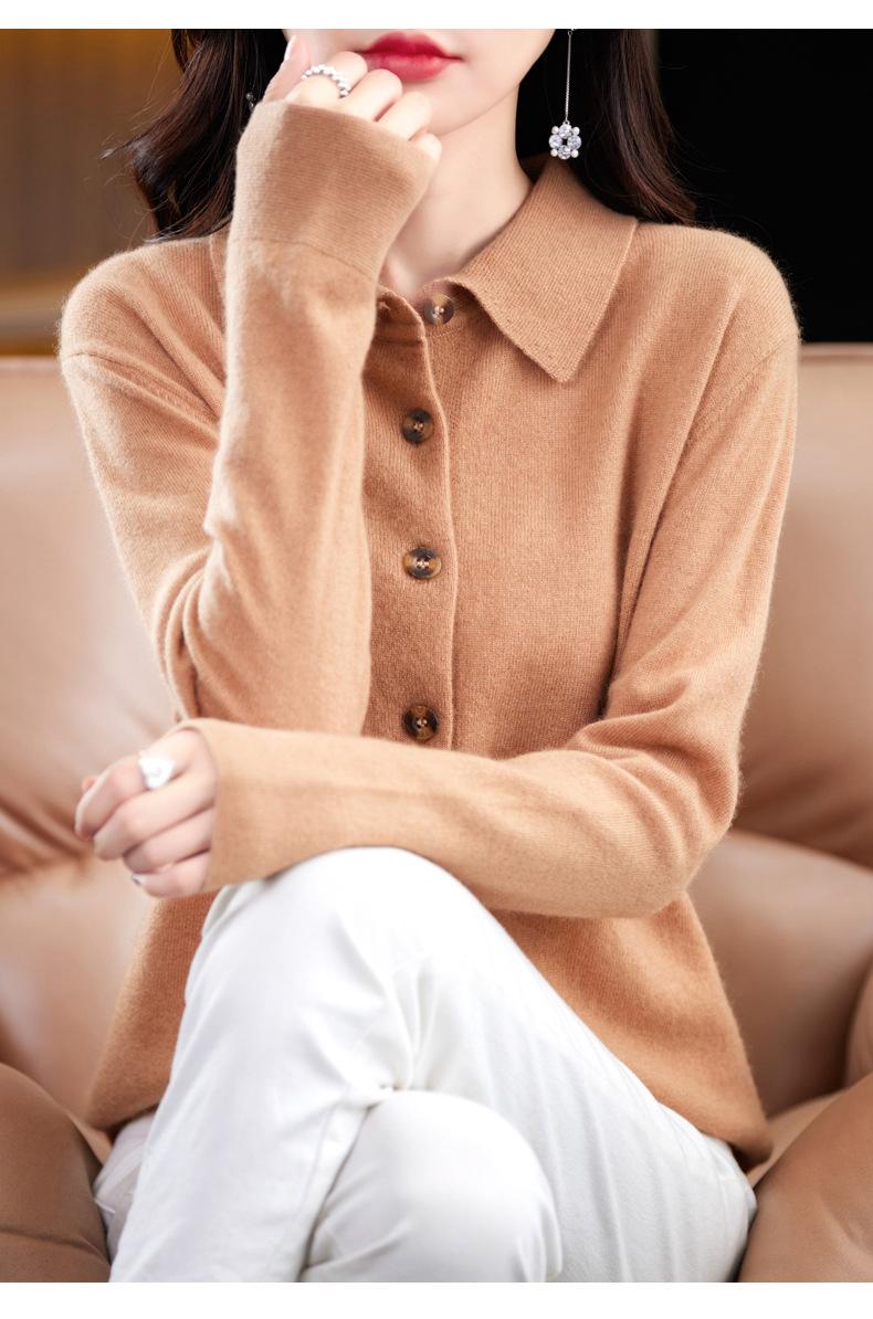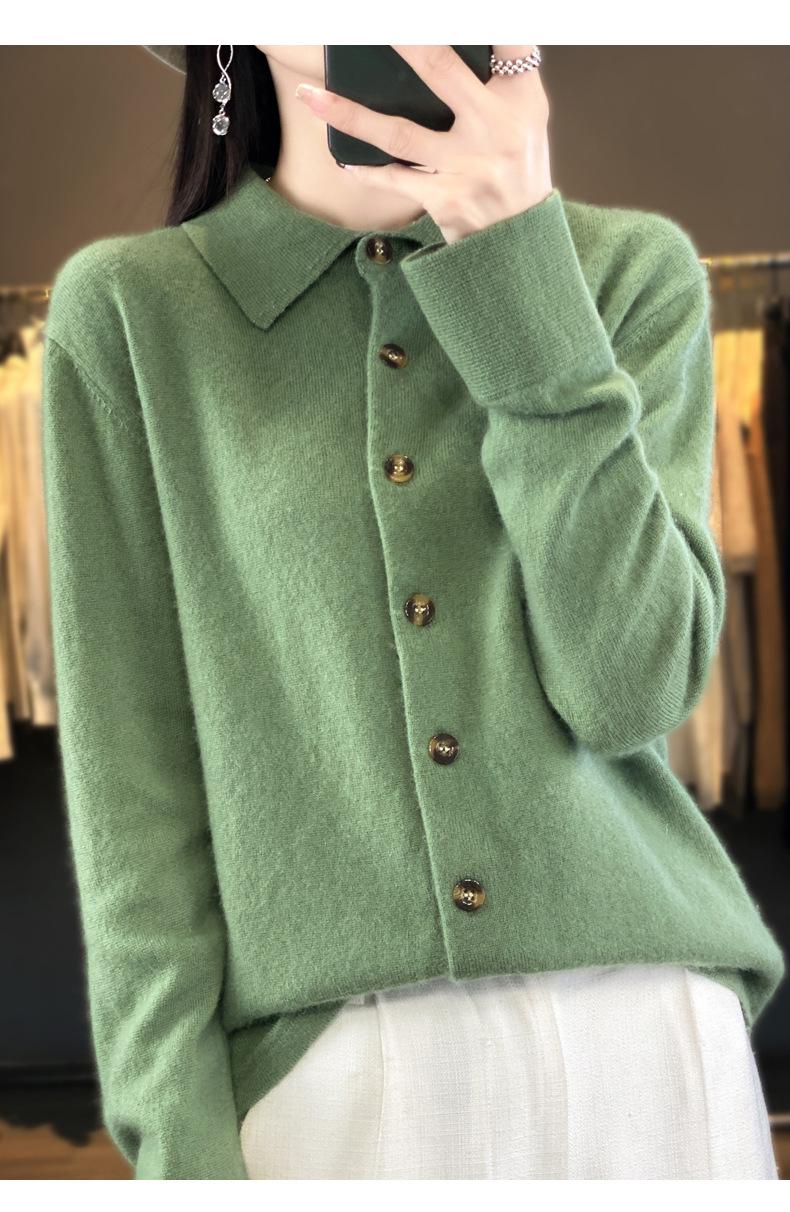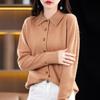 Cárdigan de Punto Elegante con Cuello POLO de Manga Larga para Mujer Andy Velvet Color Sólido Hebilla Casual Sencillo Suave Ceroso Chaqueta Base
