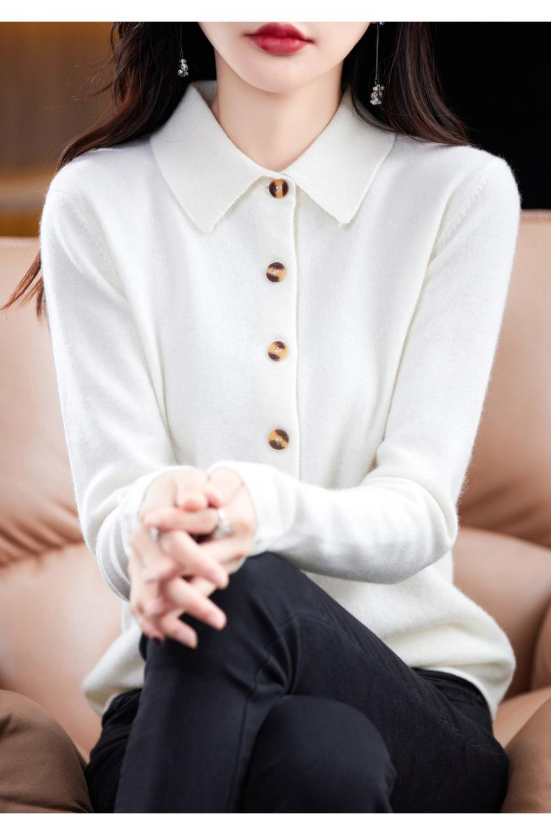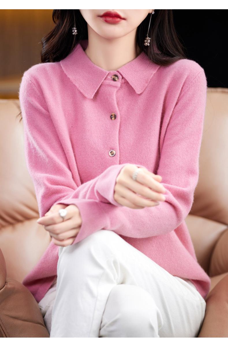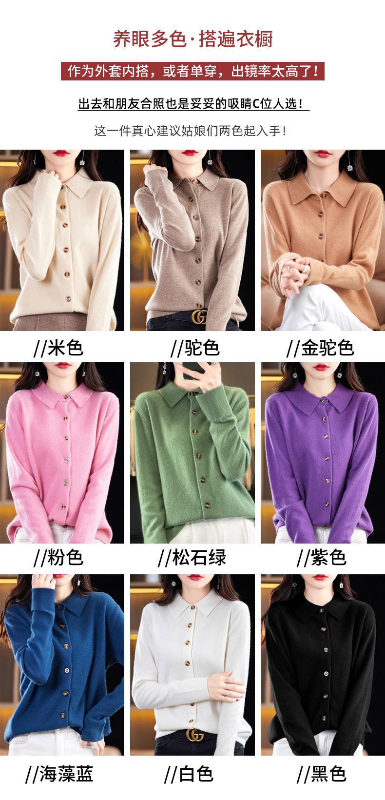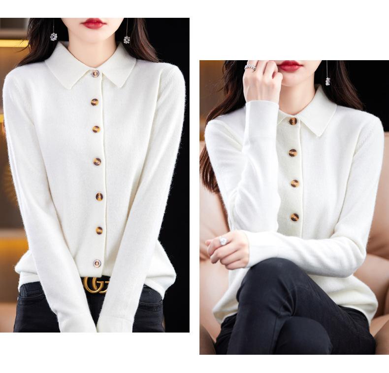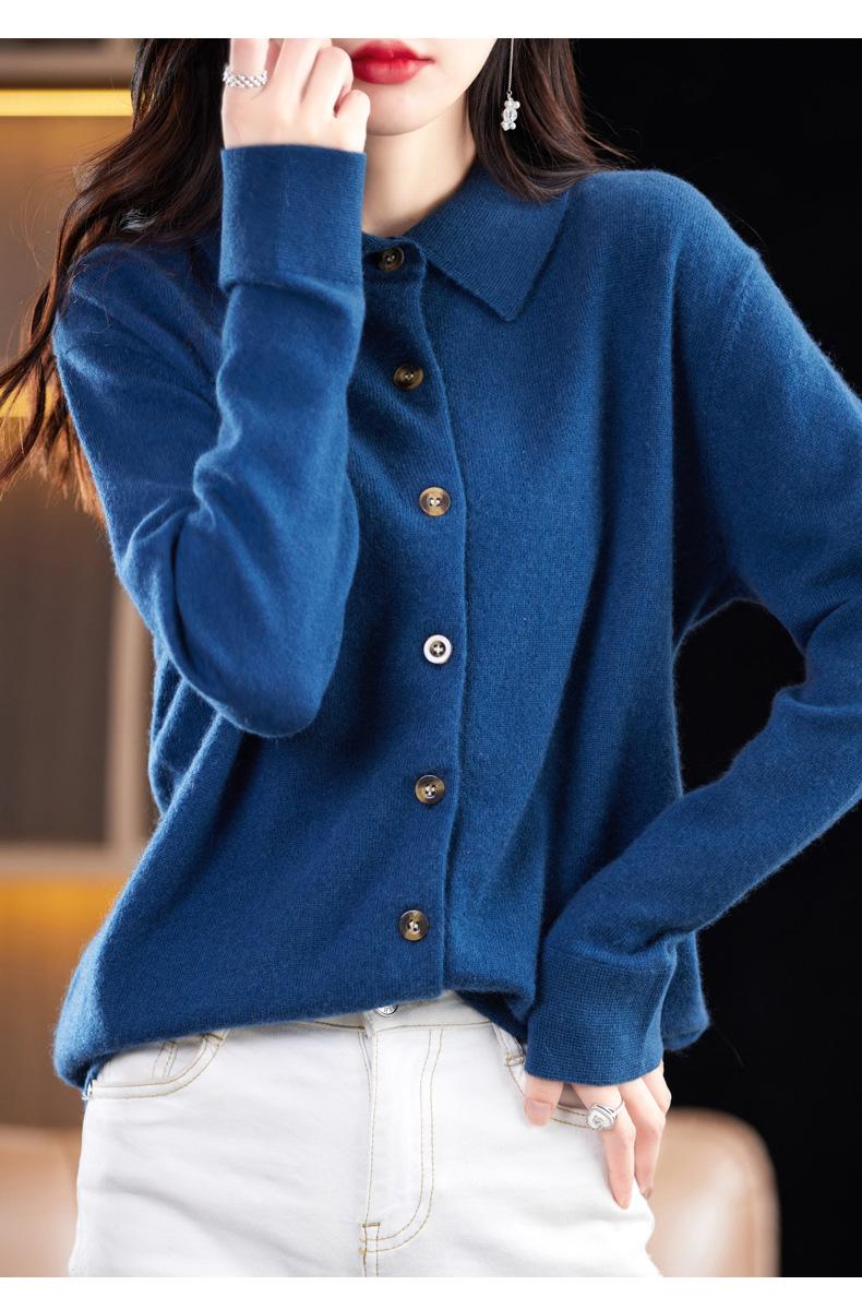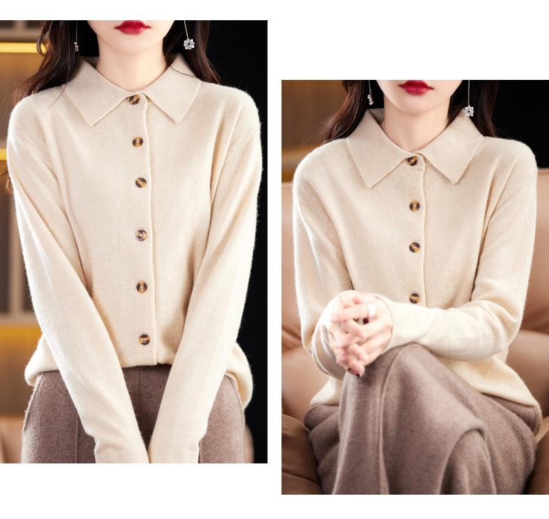 Cárdigan de Punto Elegante con Cuello POLO de Manga Larga para Mujer Andy Velvet Color Sólido Hebilla Casual Sencillo Suave Ceroso Chaqueta Base