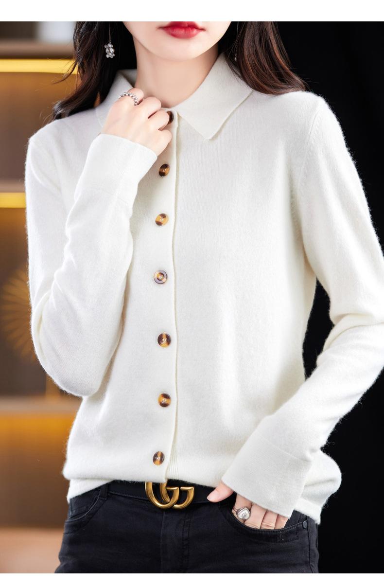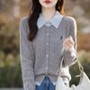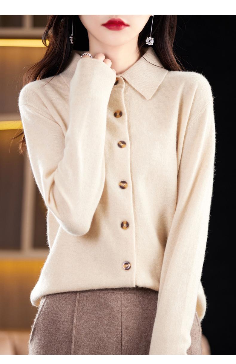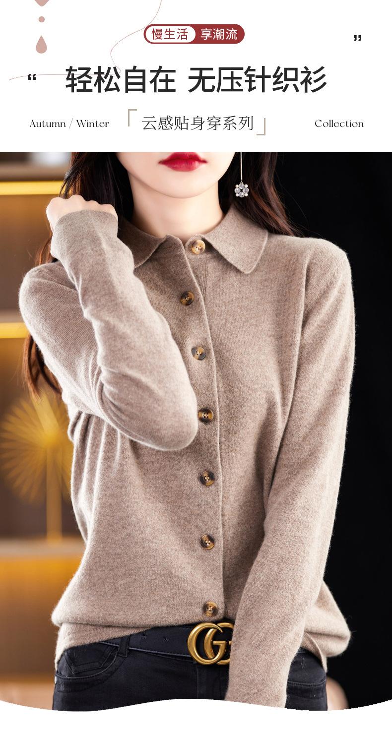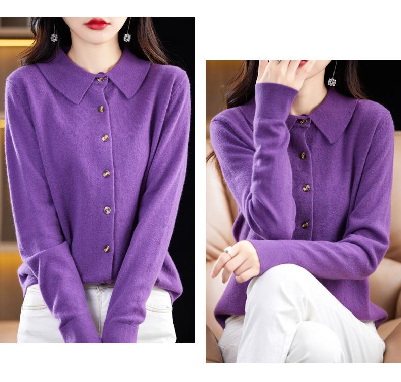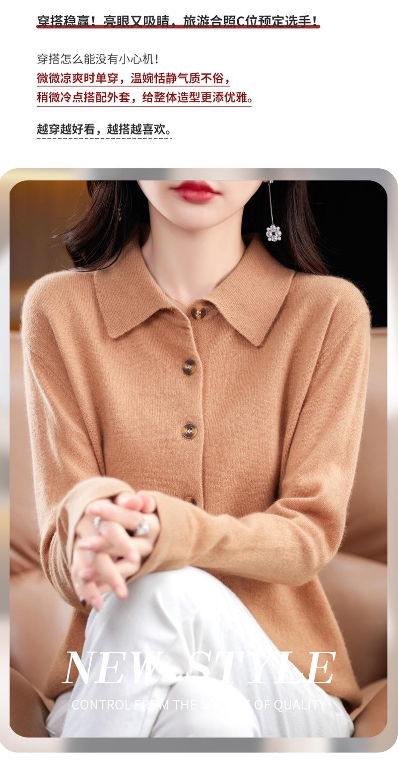 Cárdigan de Punto Elegante con Cuello POLO de Manga Larga para Mujer Andy Velvet Color Sólido Hebilla Casual Sencillo Suave Ceroso Chaqueta Base