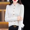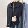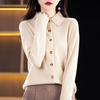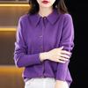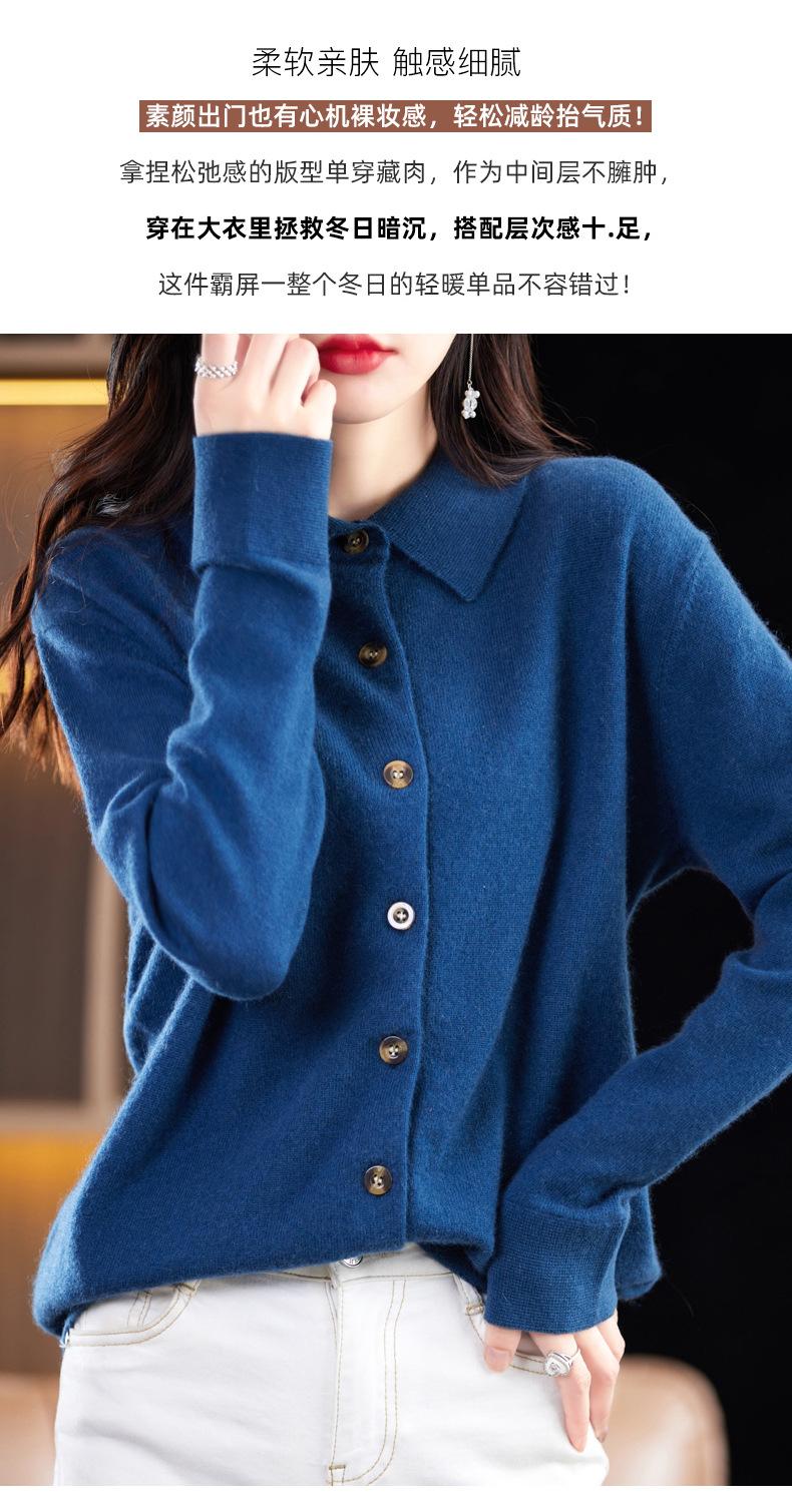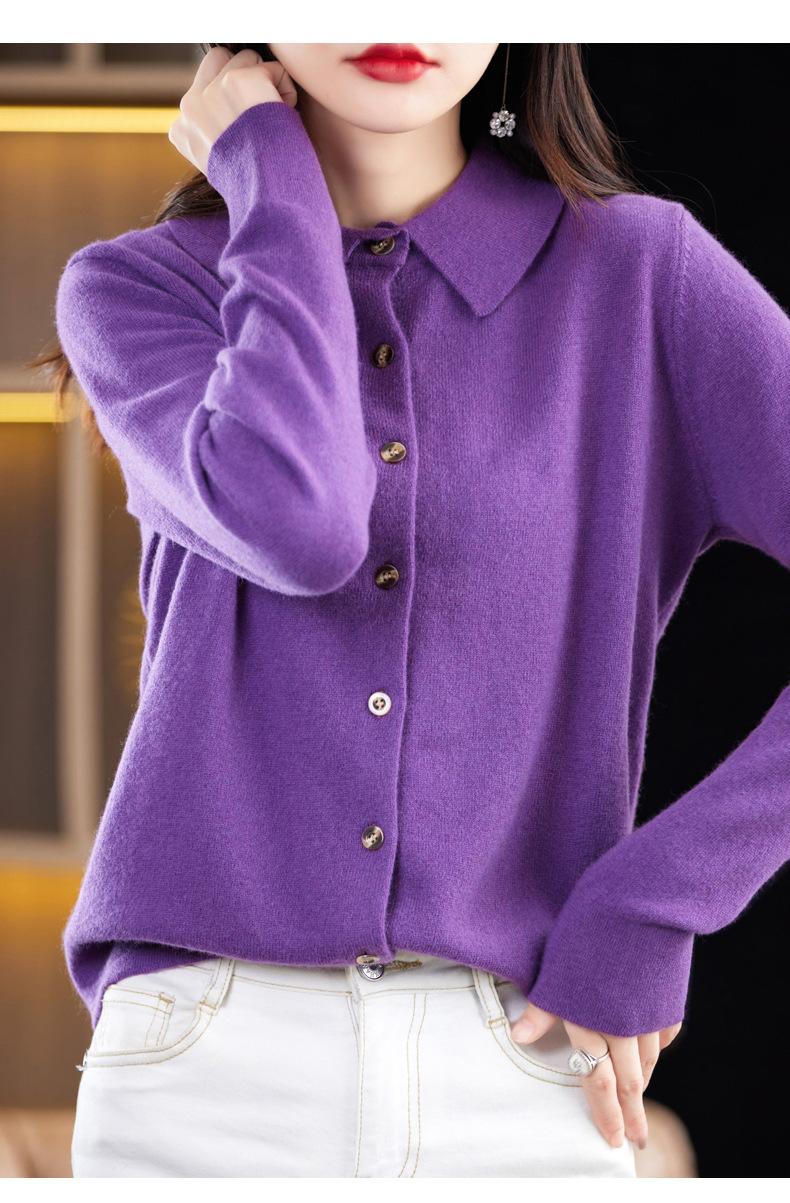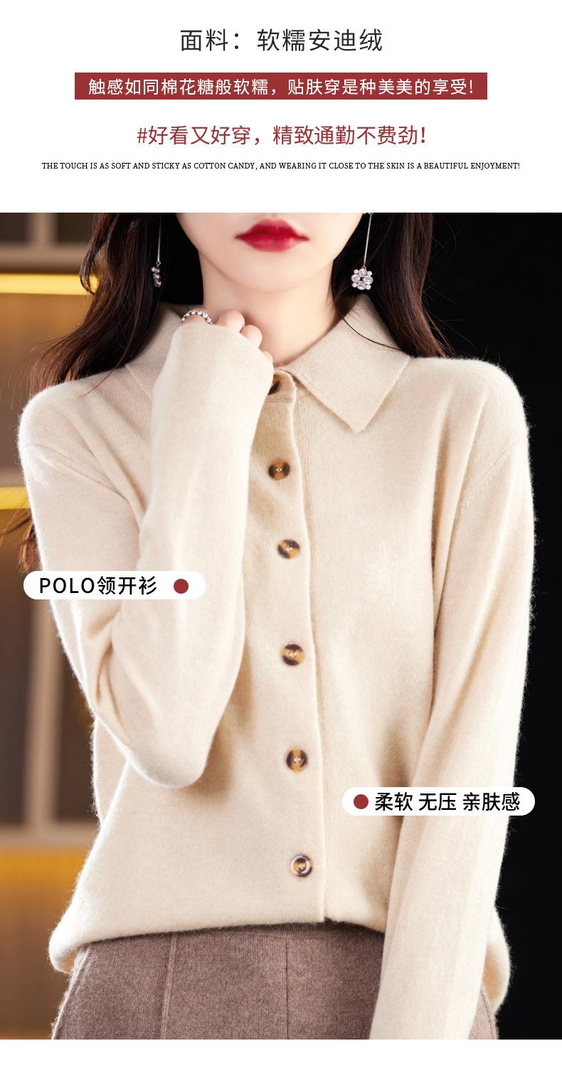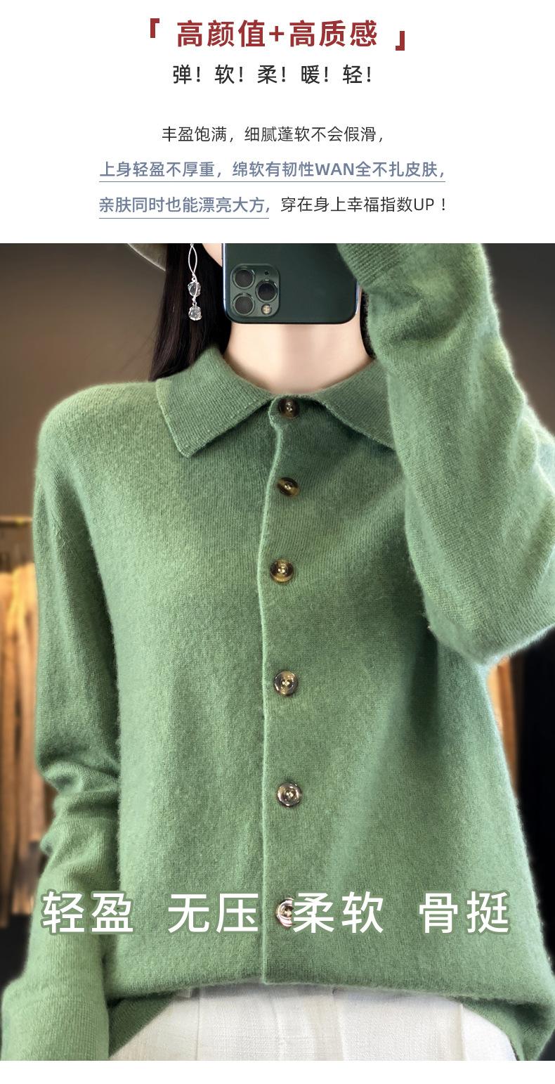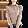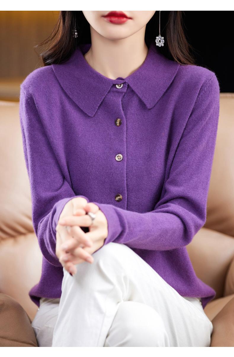 Cárdigan de Punto Elegante con Cuello POLO de Manga Larga para Mujer Andy Velvet Color Sólido Hebilla Casual Sencillo Suave Ceroso Chaqueta Base