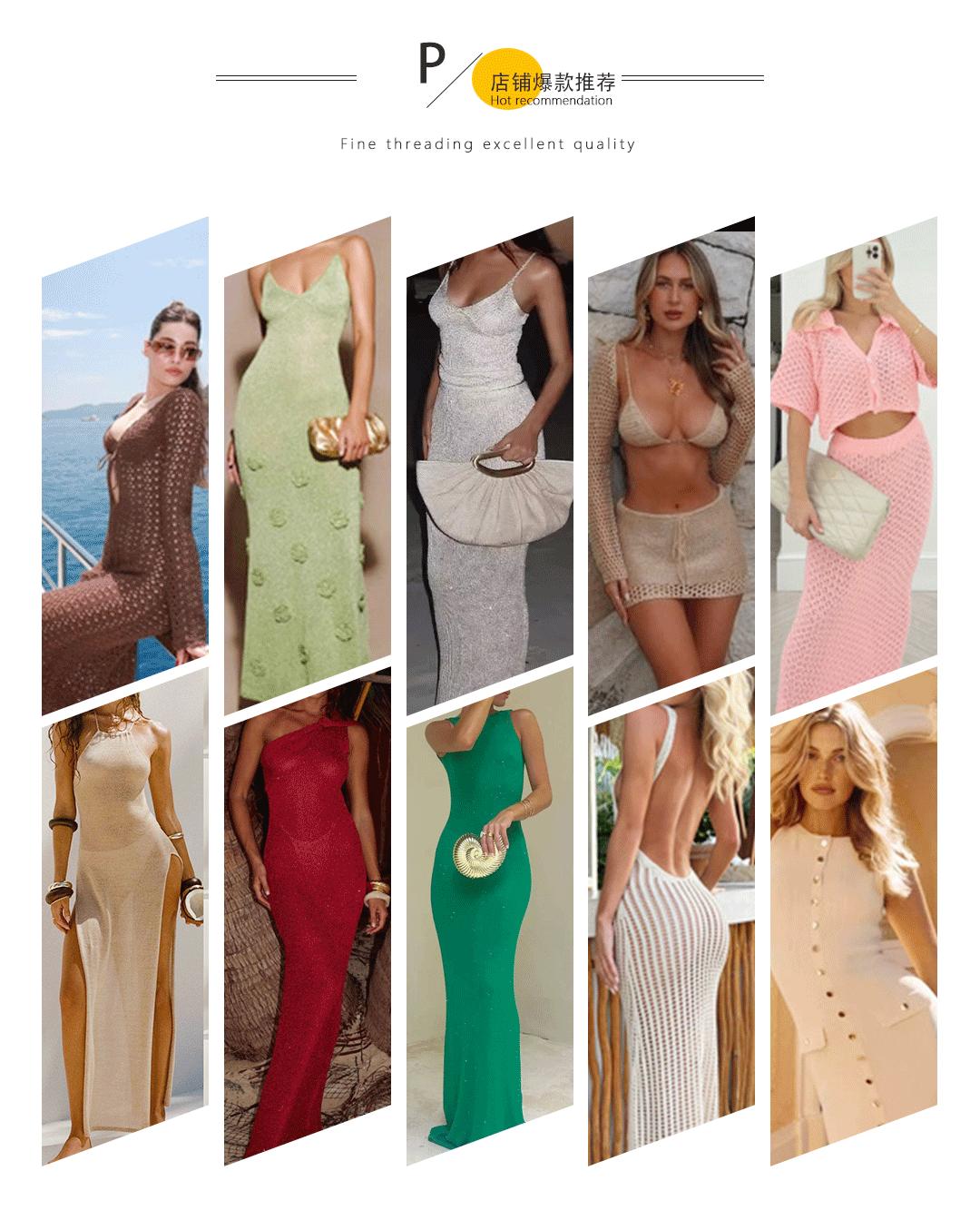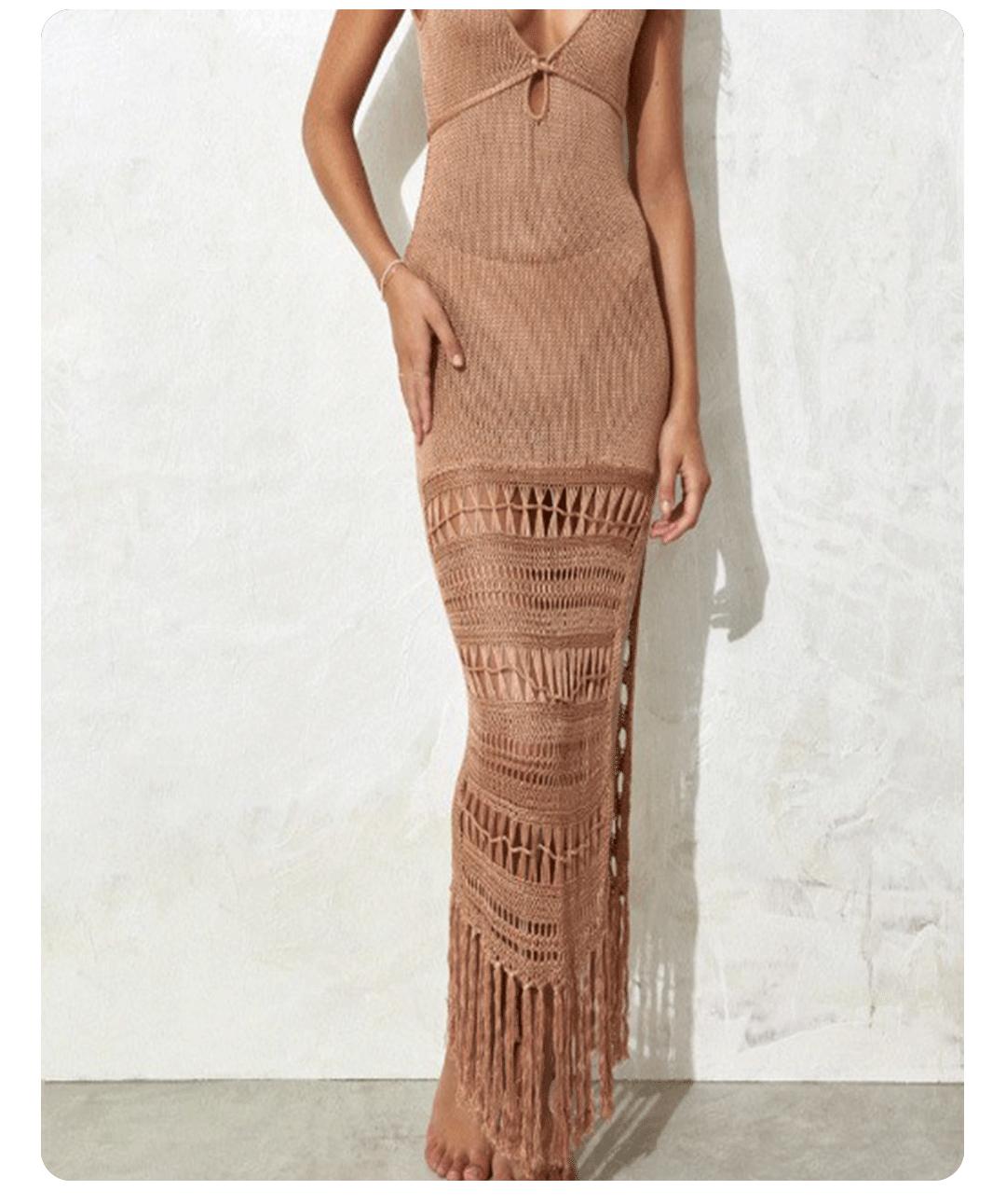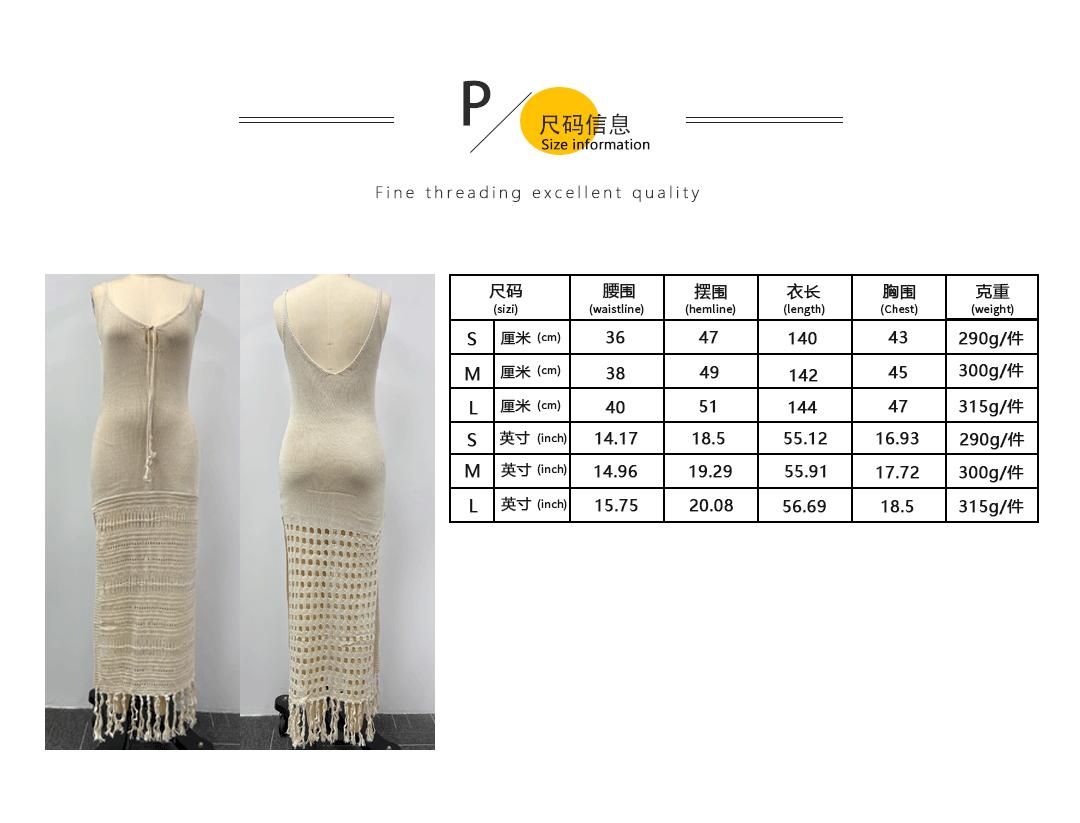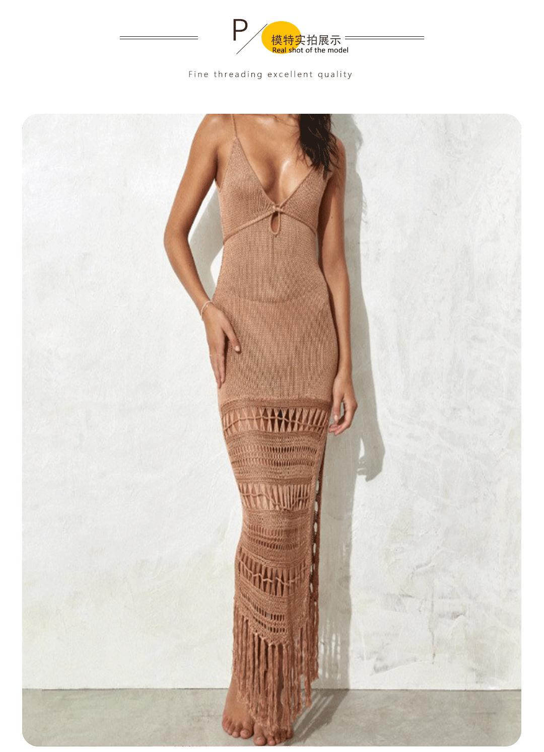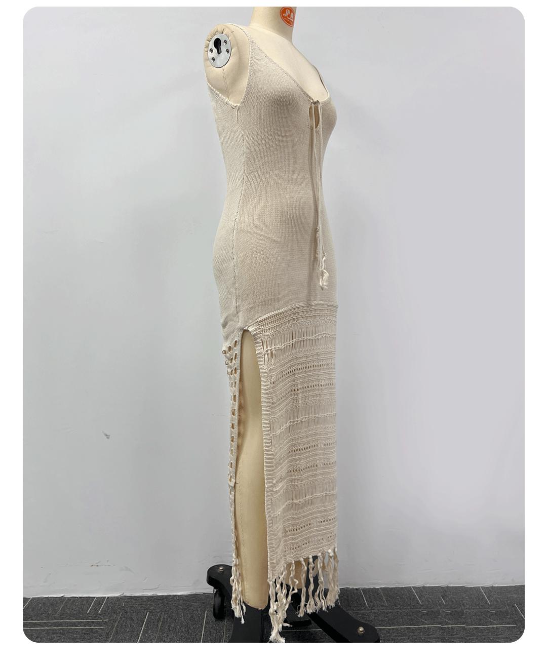 Vacaciones de Playa Grupo Tirantes Cuello en V Transfronterizo Falda Larga con Borlas de Crochet Blusa de Punto con Aberturas Vestido sin Mangas