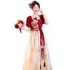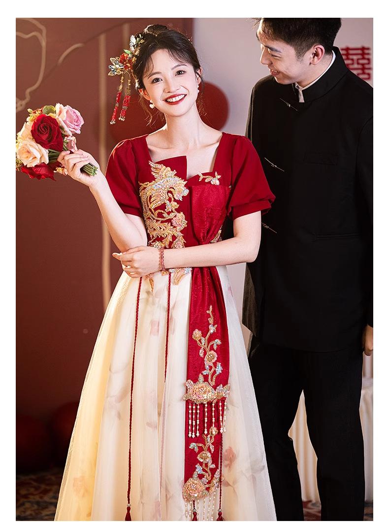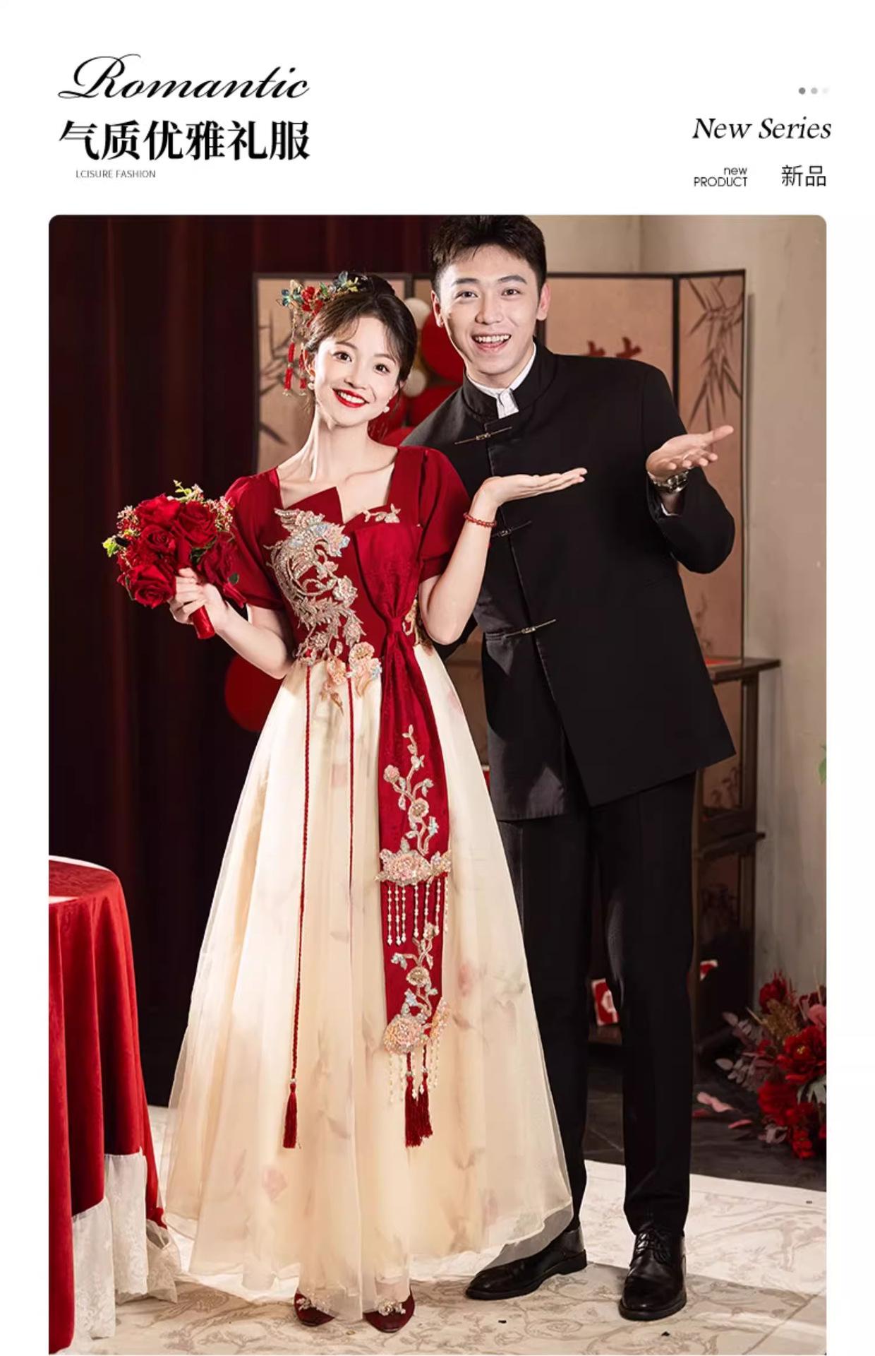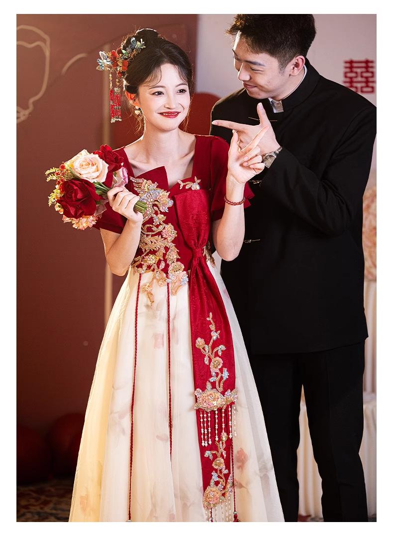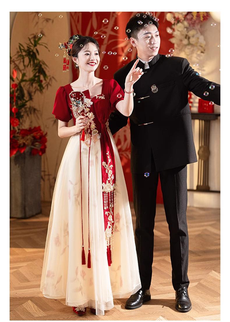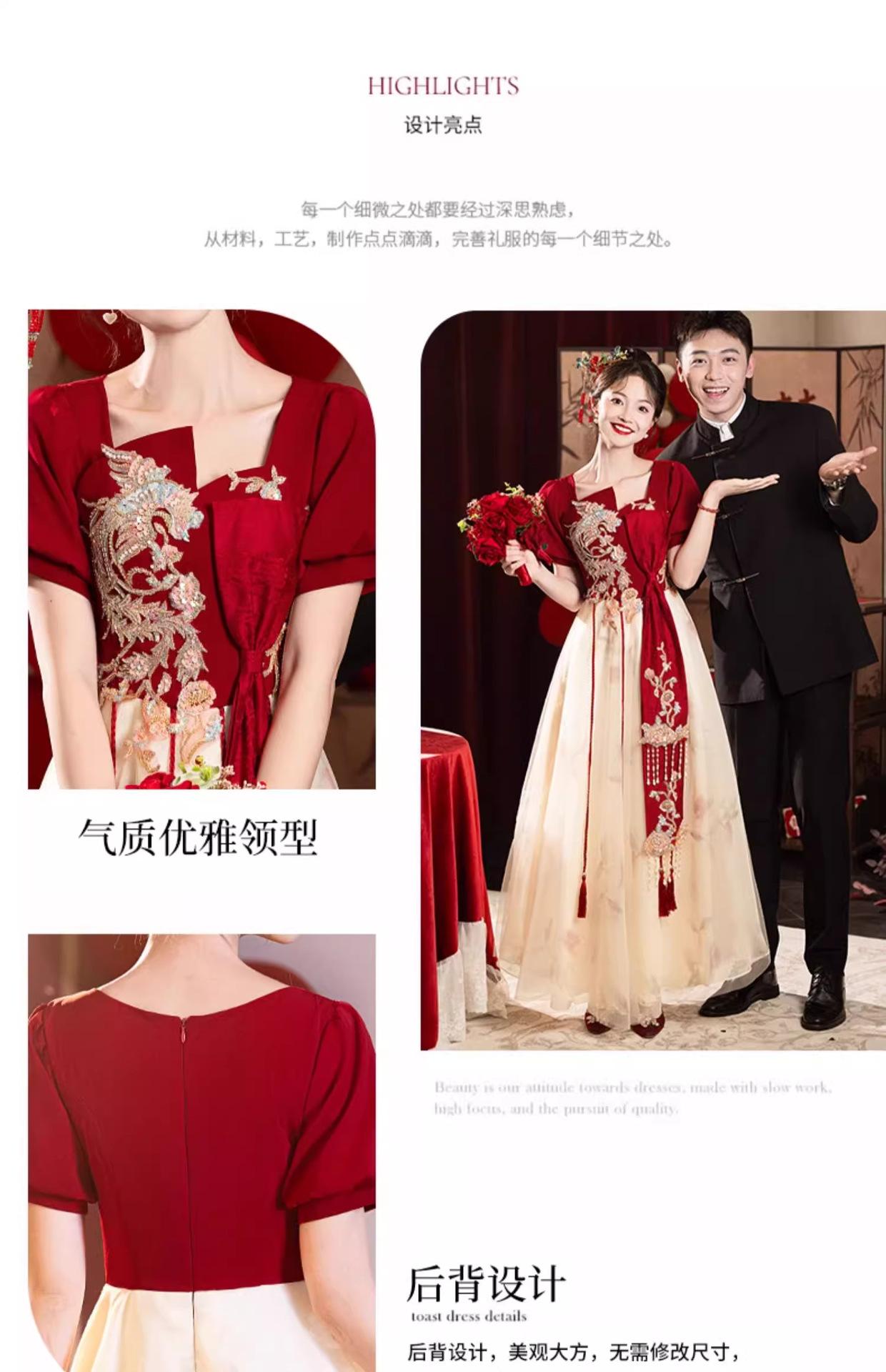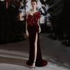 Vestido de novia rojo de estilo brindis, vestido de compromiso, vestido de mujer para boda francesa, vestido de noche largo ajustado con escote en V y abertura trasera.