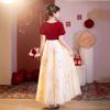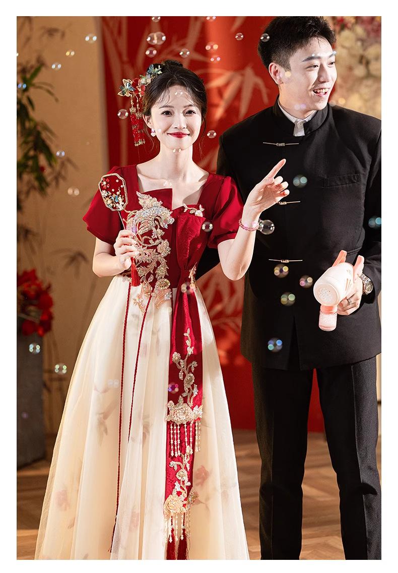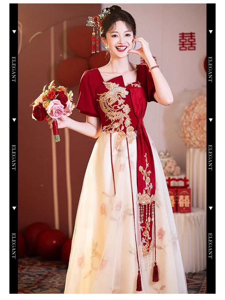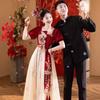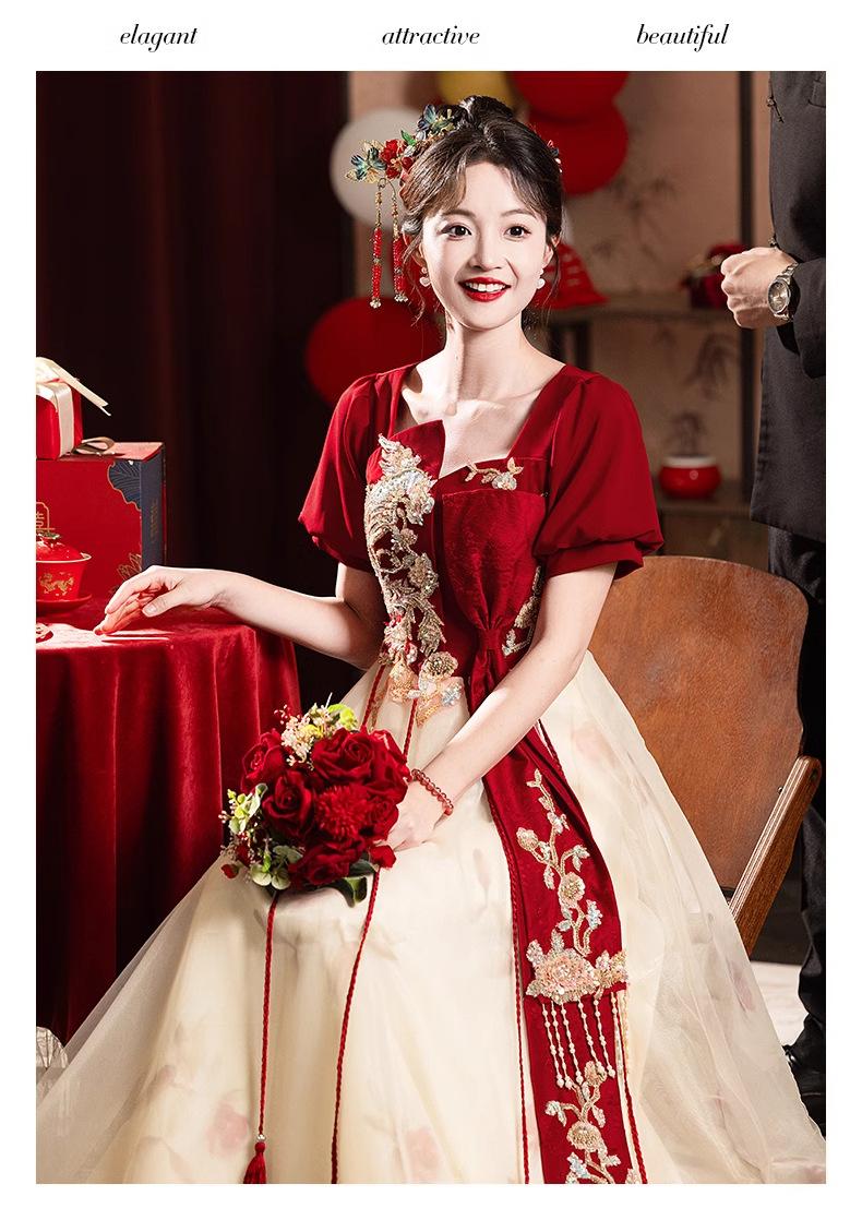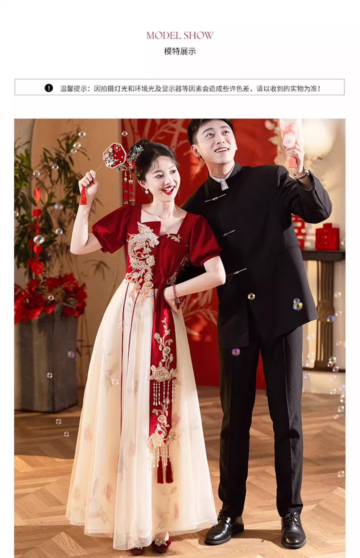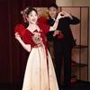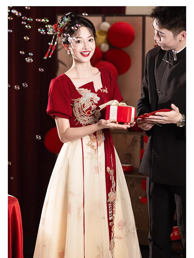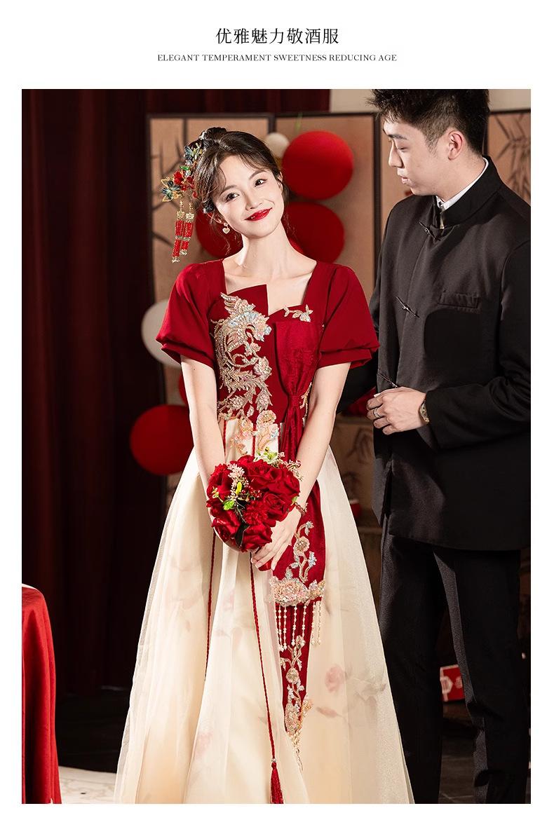 Vestido de novia rojo de estilo brindis, vestido de compromiso, vestido de mujer para boda francesa, vestido de noche largo ajustado con escote en V y abertura trasera.