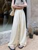 Pantalones casuales plisados de seda helada para mujer 2025 de cintura alta elásticos drapeados de pierna ancha pantalones finos de otoño pantalones largos hasta el piso