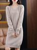 Otoño e Invierno Nuevo Jersey de Cuello en V Versátil Color Sólido Largo Medio Suéter de Lana para Mujer, Capa Base Tejida Suéter Cálido