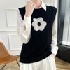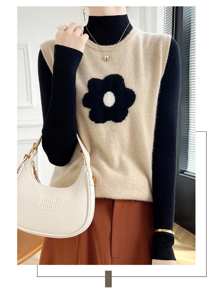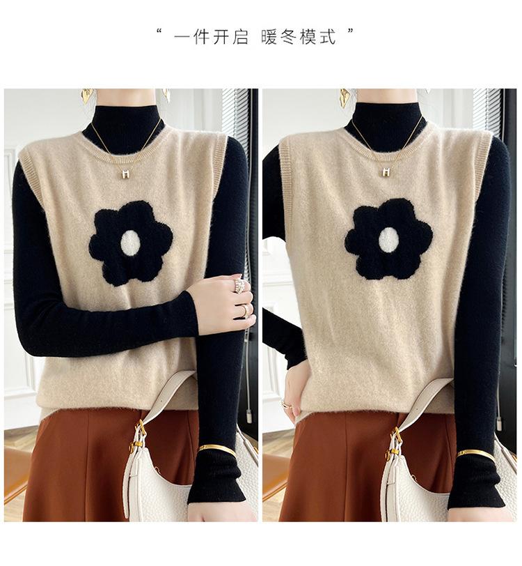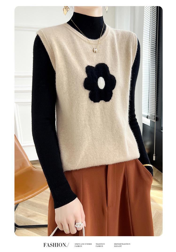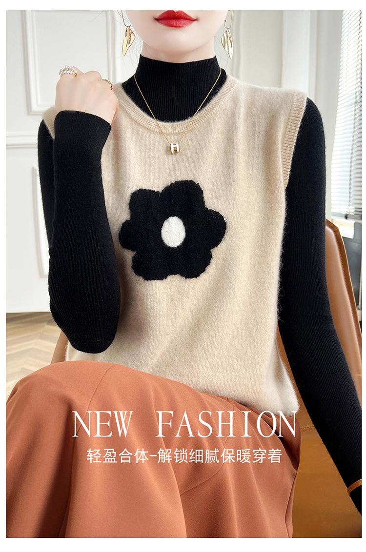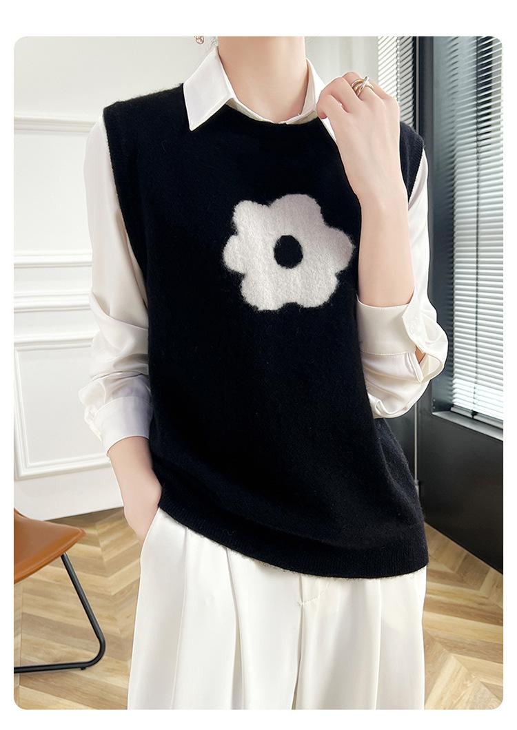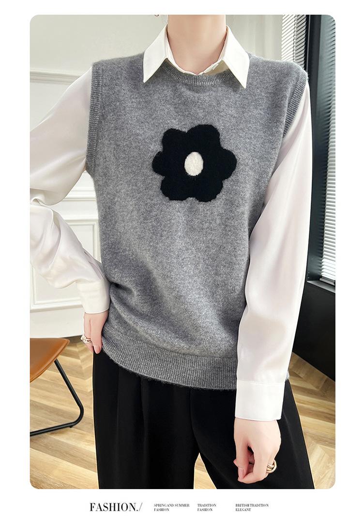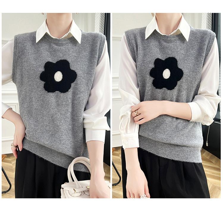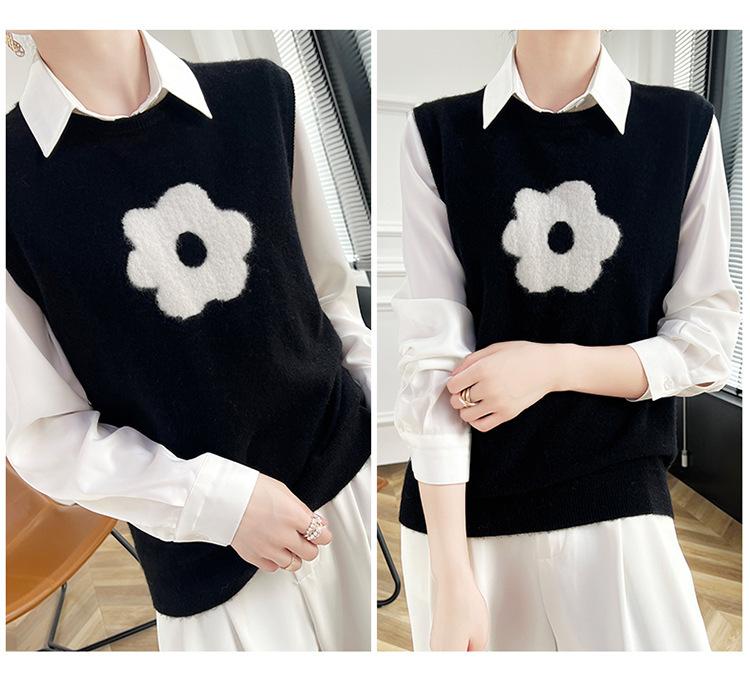 Chaleco de Punto Suelto para Mujer de Lana Pura Apilada con Cuello Redondo, Jersey Jacquard, Chaleco de Flores Tejido, Estilo K Otoño e Invierno 2025