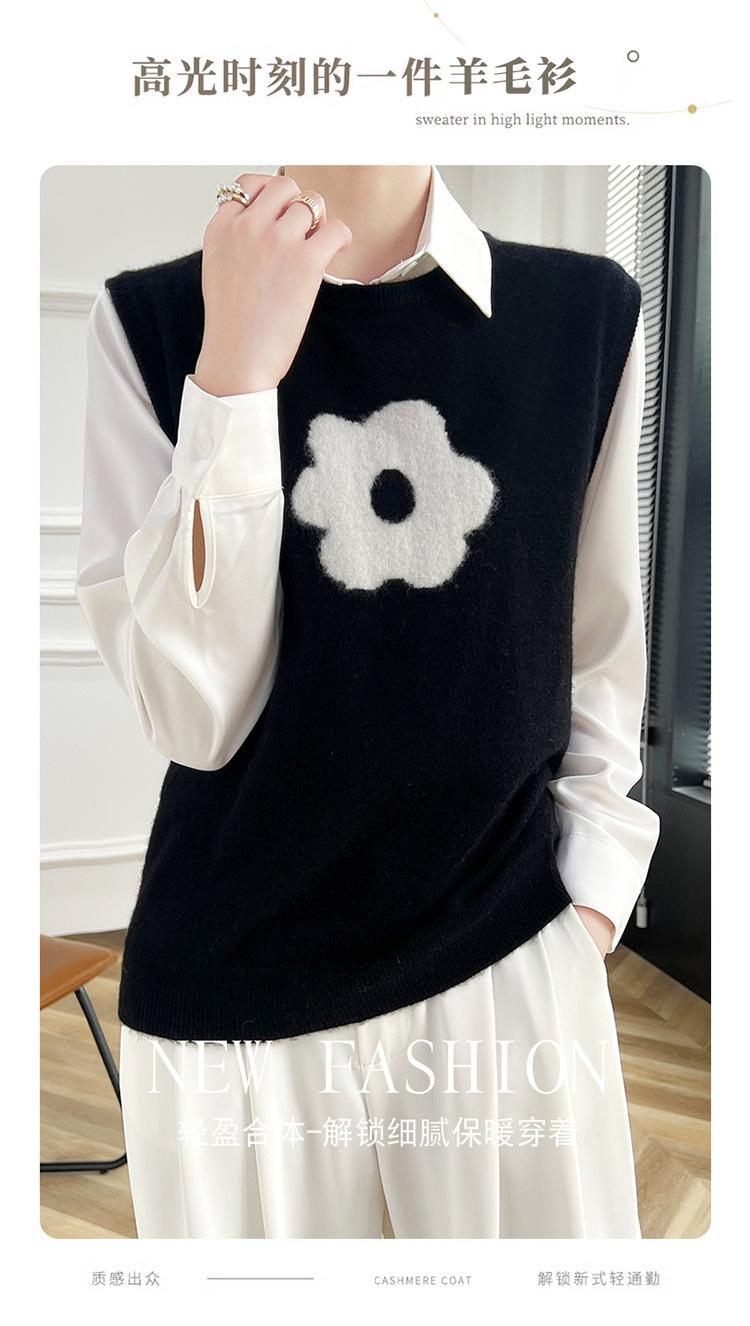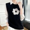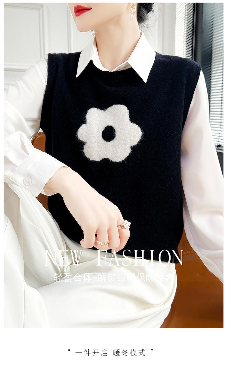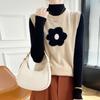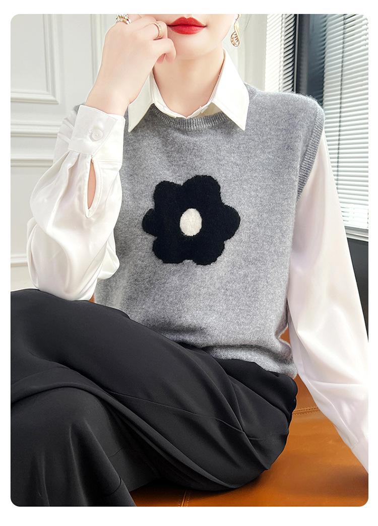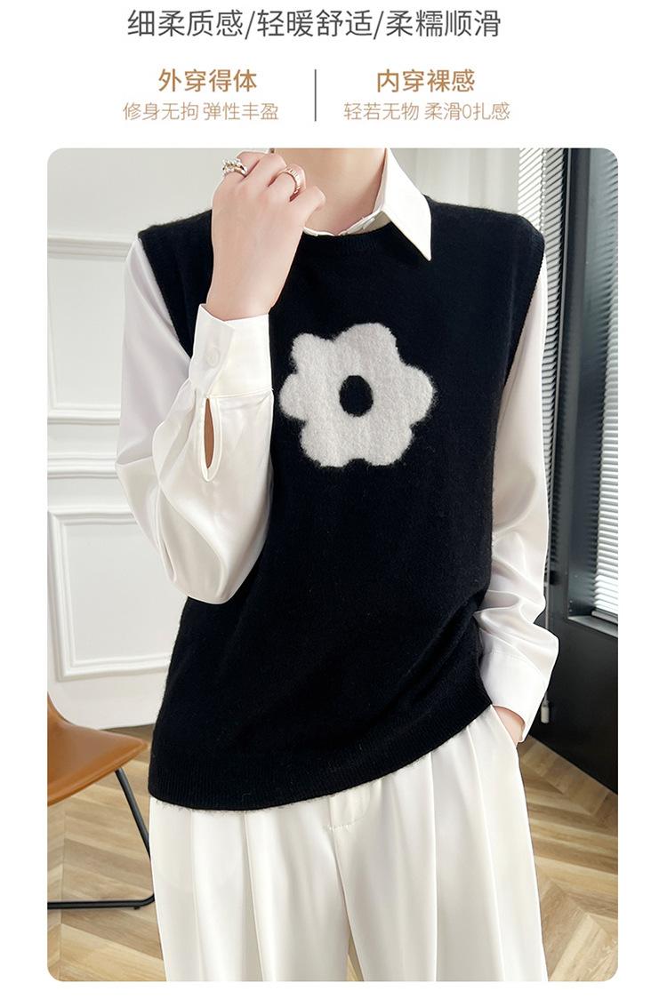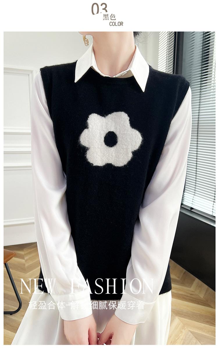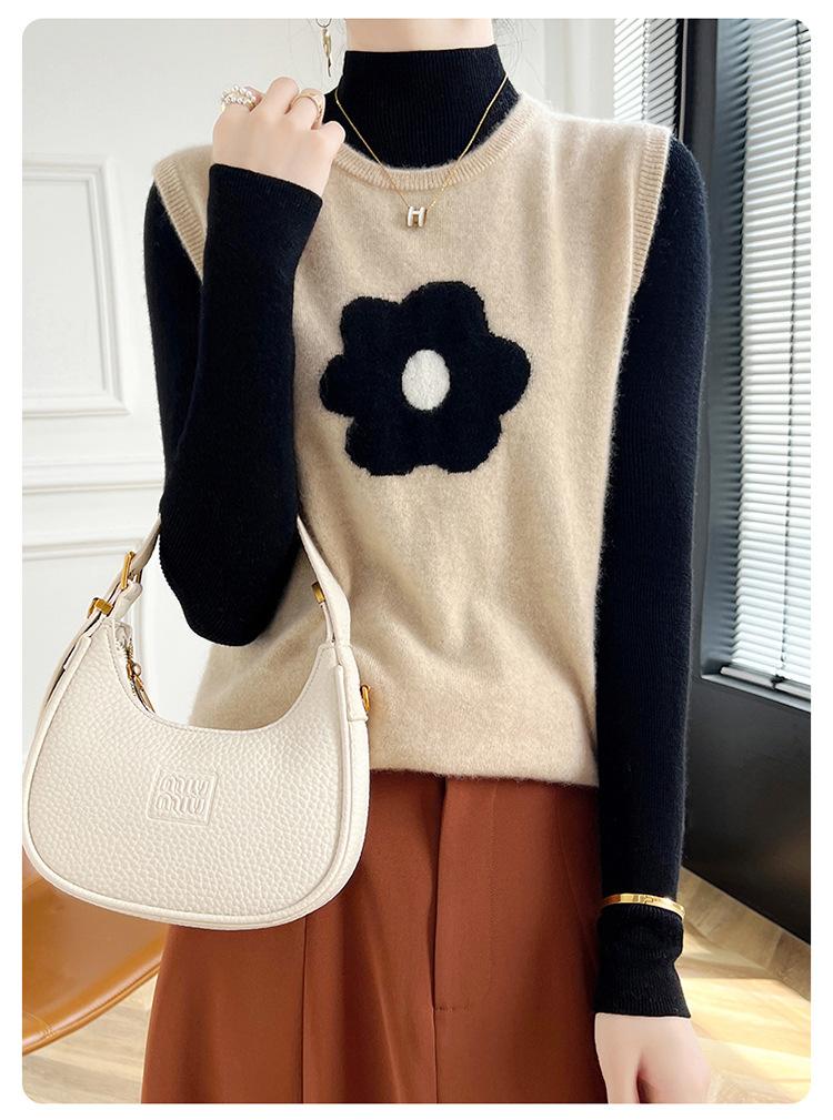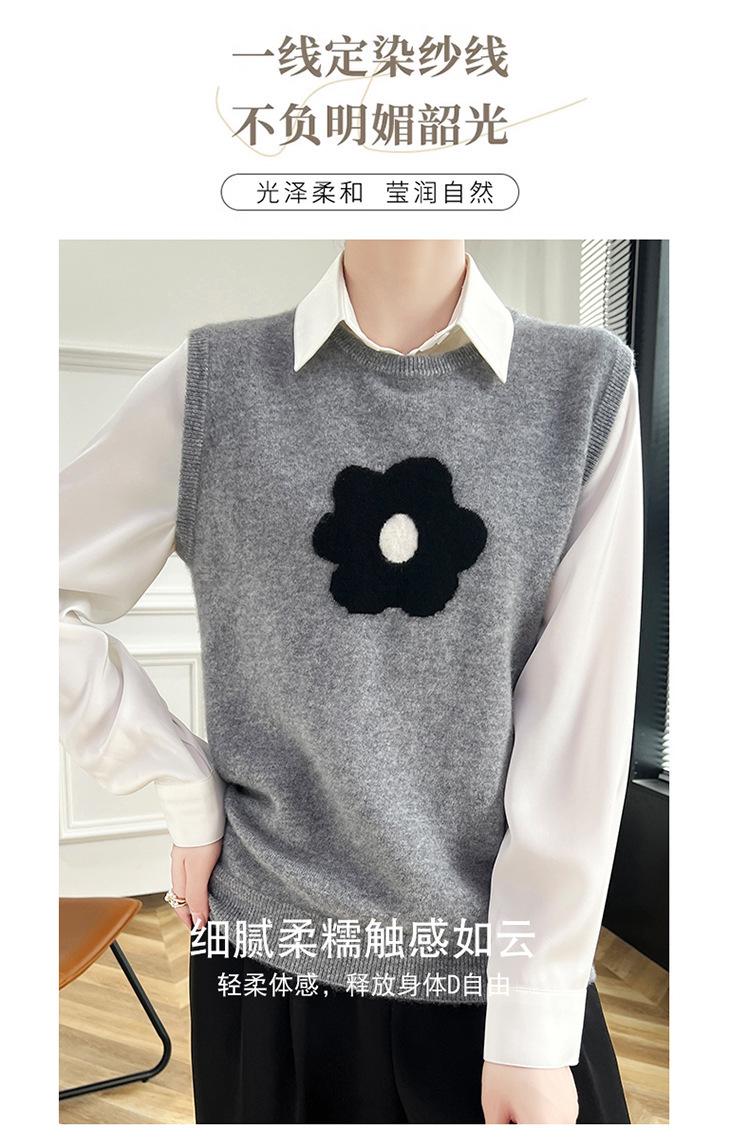 Chaleco de Punto Suelto para Mujer de Lana Pura Apilada con Cuello Redondo, Jersey Jacquard, Chaleco de Flores Tejido, Estilo K Otoño e Invierno 2025