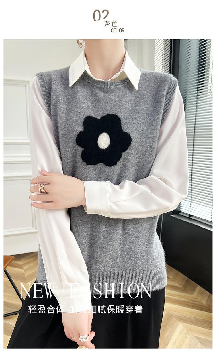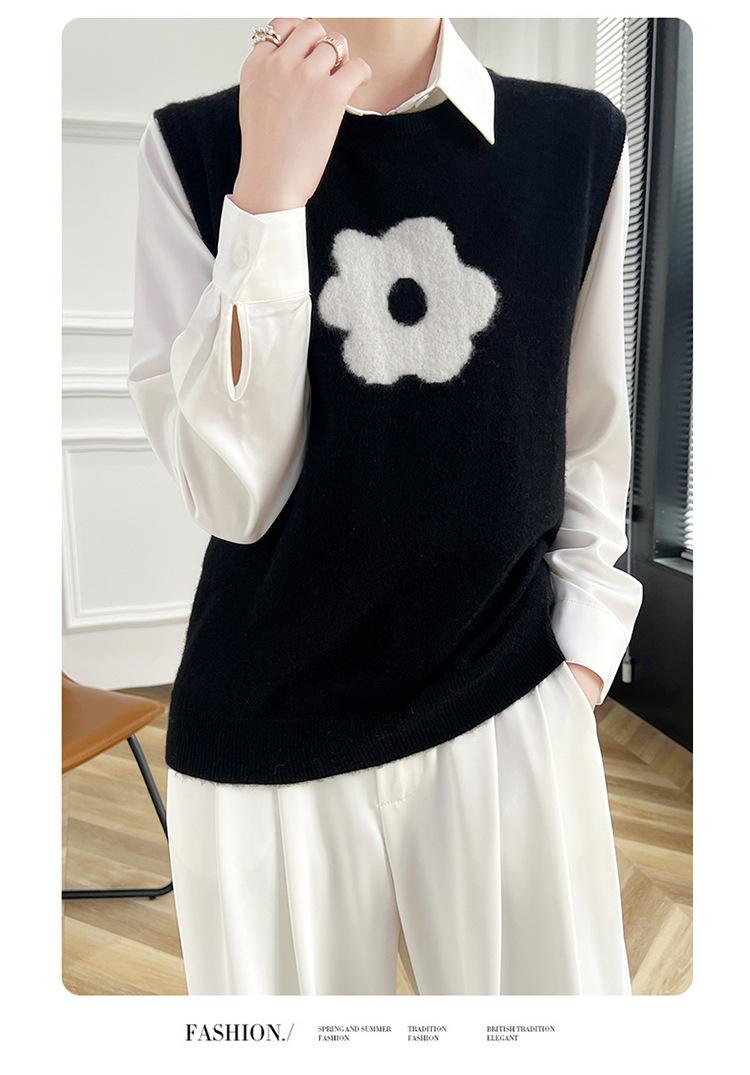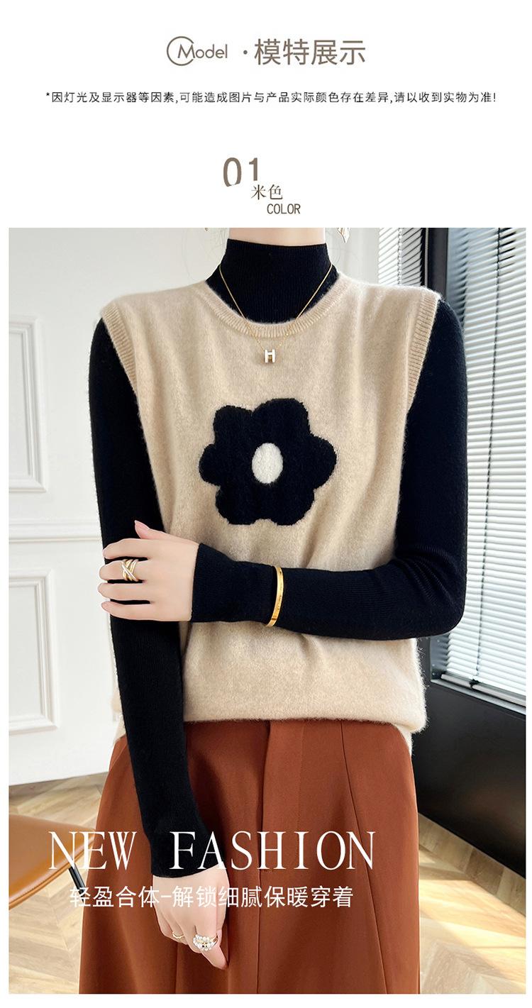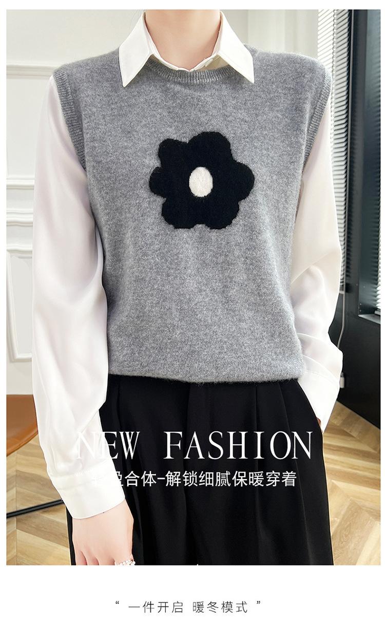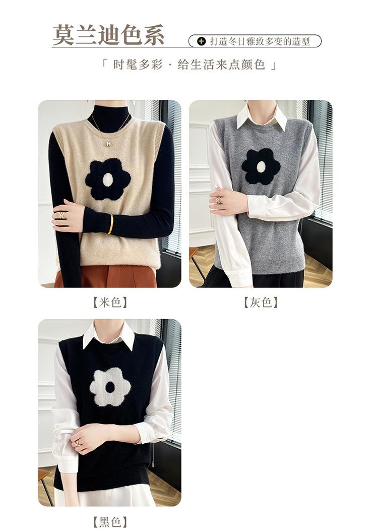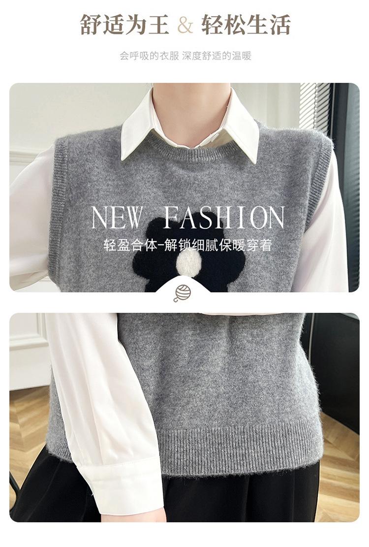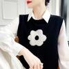 Chaleco de Punto Suelto para Mujer de Lana Pura Apilada con Cuello Redondo, Jersey Jacquard, Chaleco de Flores Tejido, Estilo K Otoño e Invierno 2025
