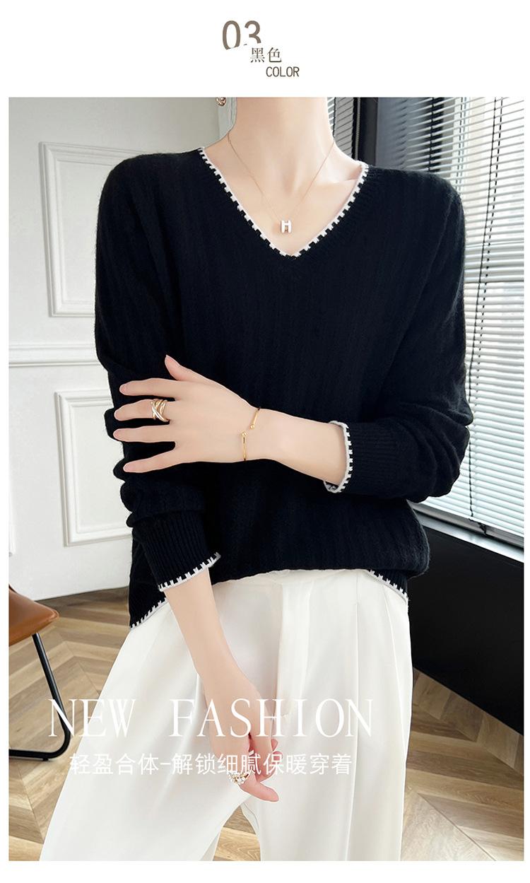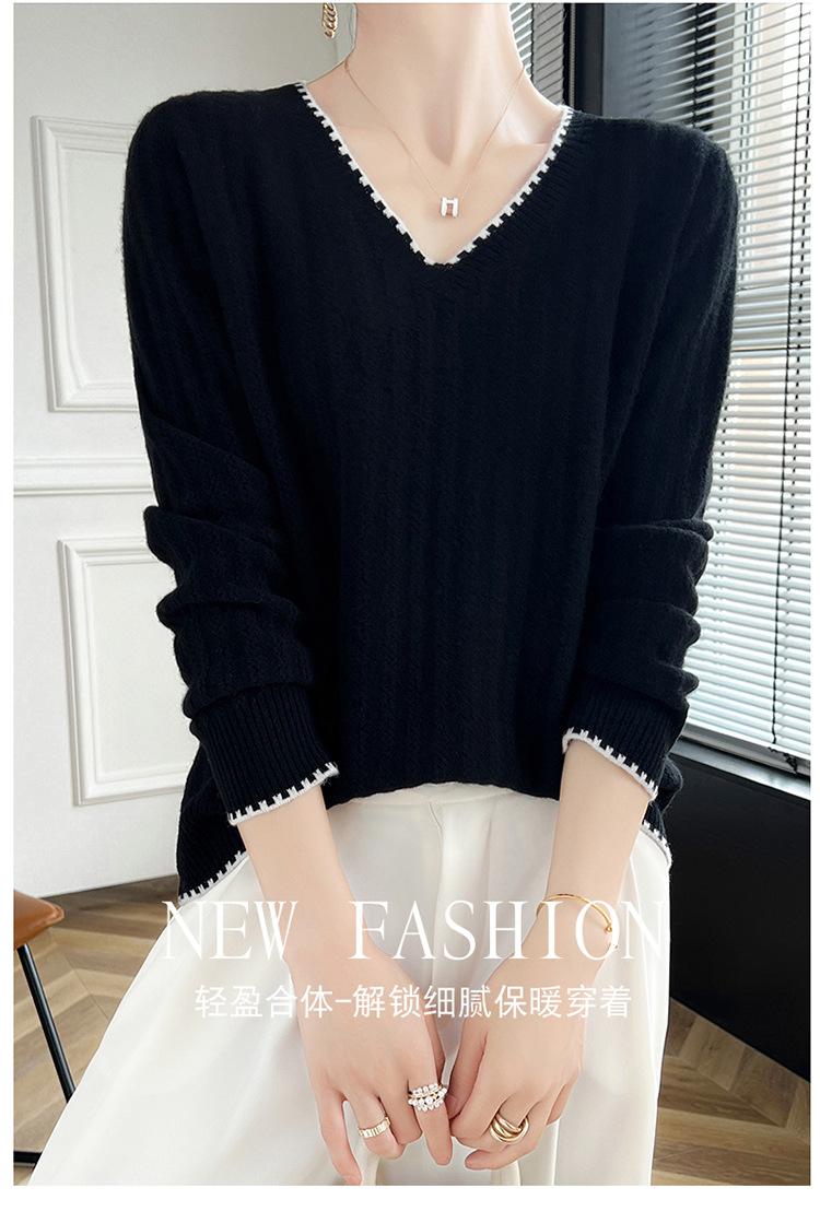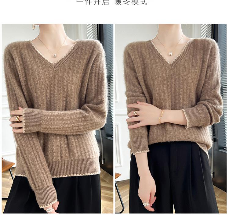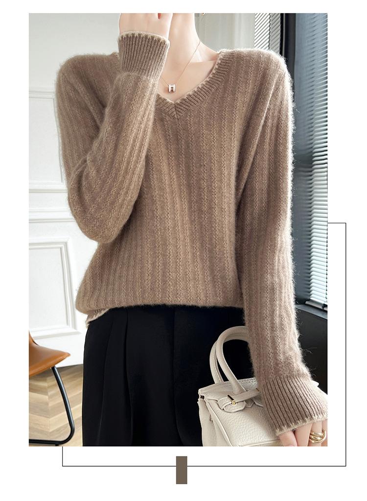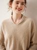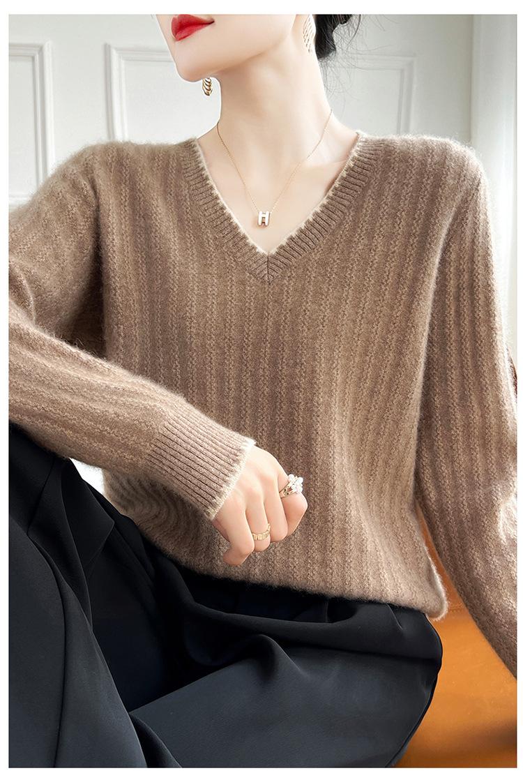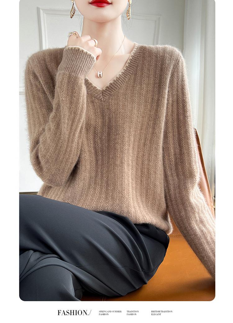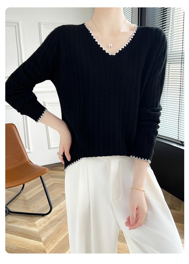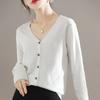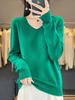 Suéter de cuello en V para mujer, jersey de manga larga, color liso, suelto, de punto, para principios de otoño, 2024