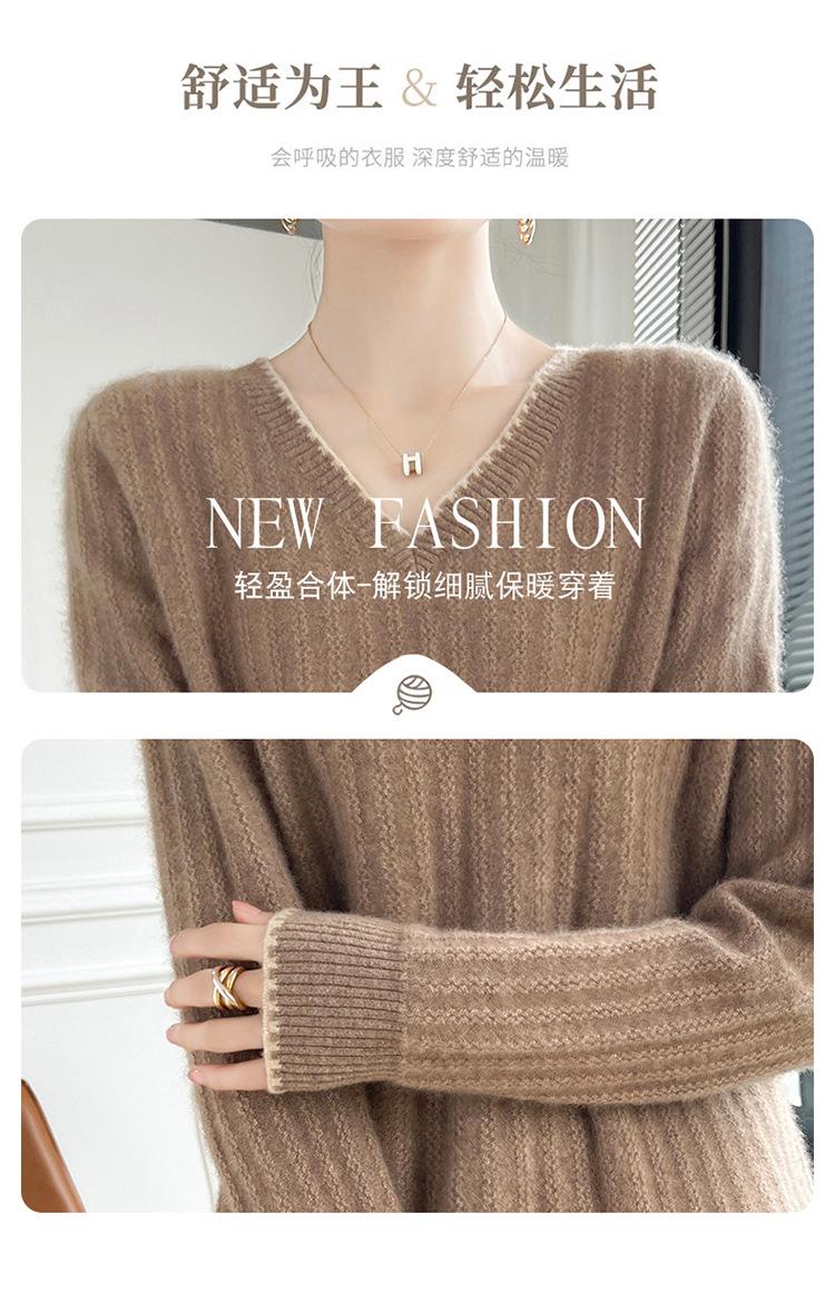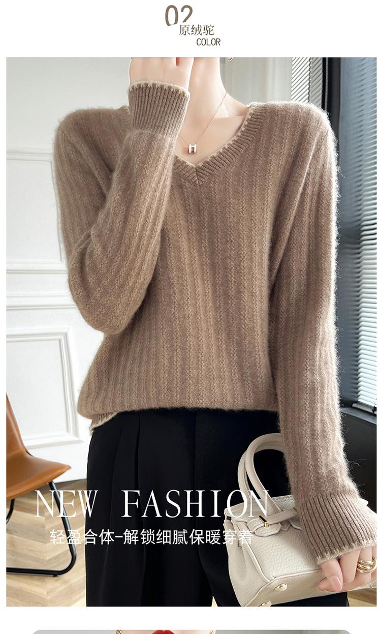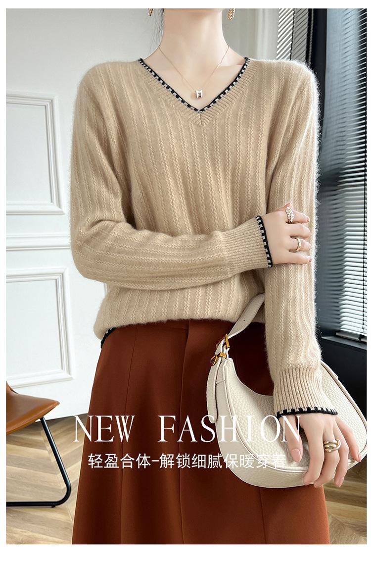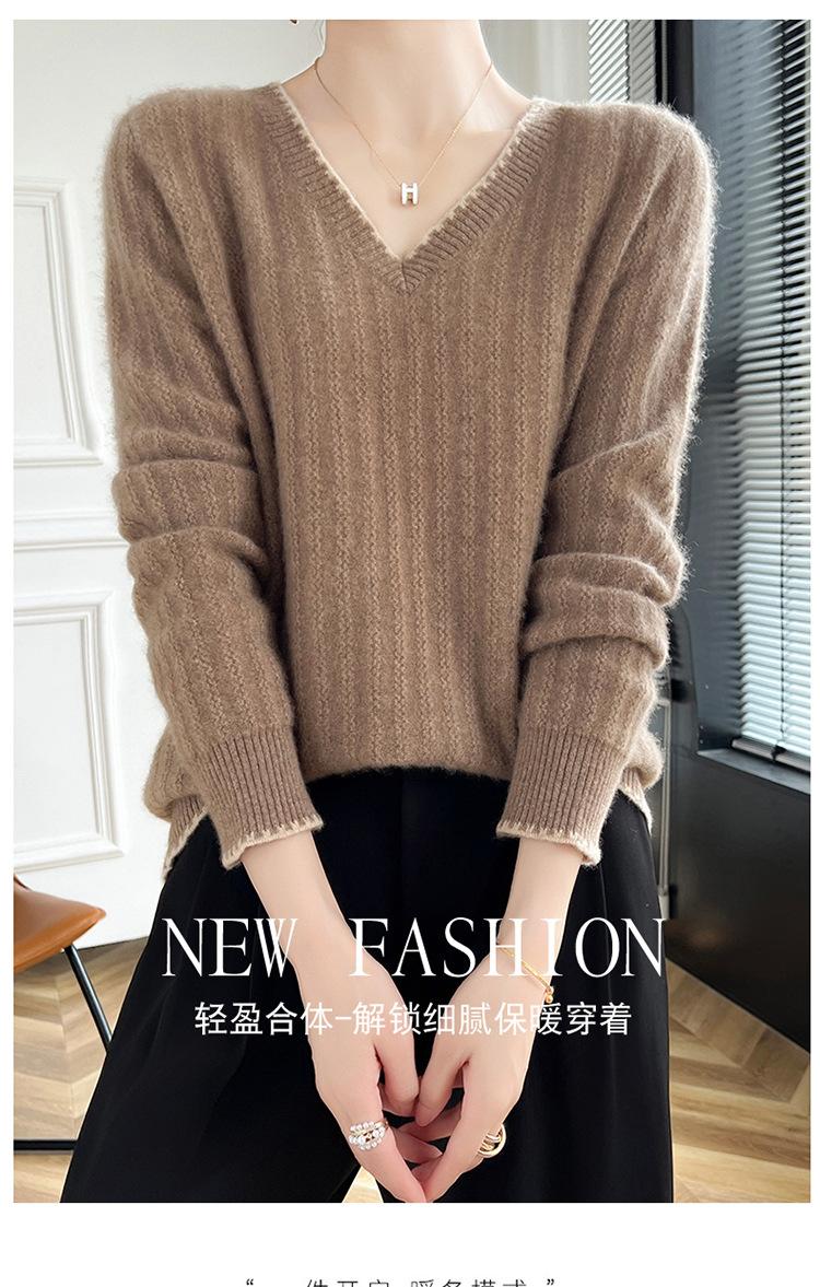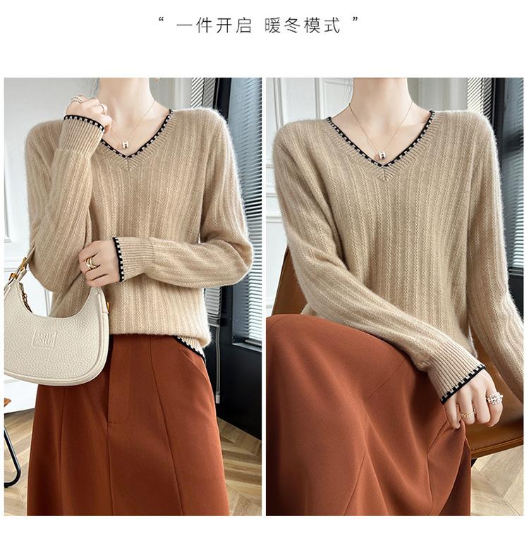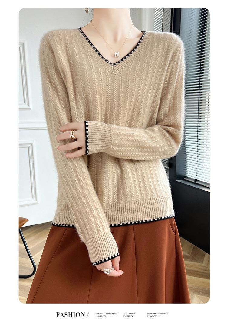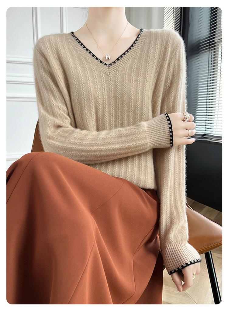 Suéter de cuello en V para mujer, jersey de manga larga, color liso, suelto, de punto, para principios de otoño, 2024