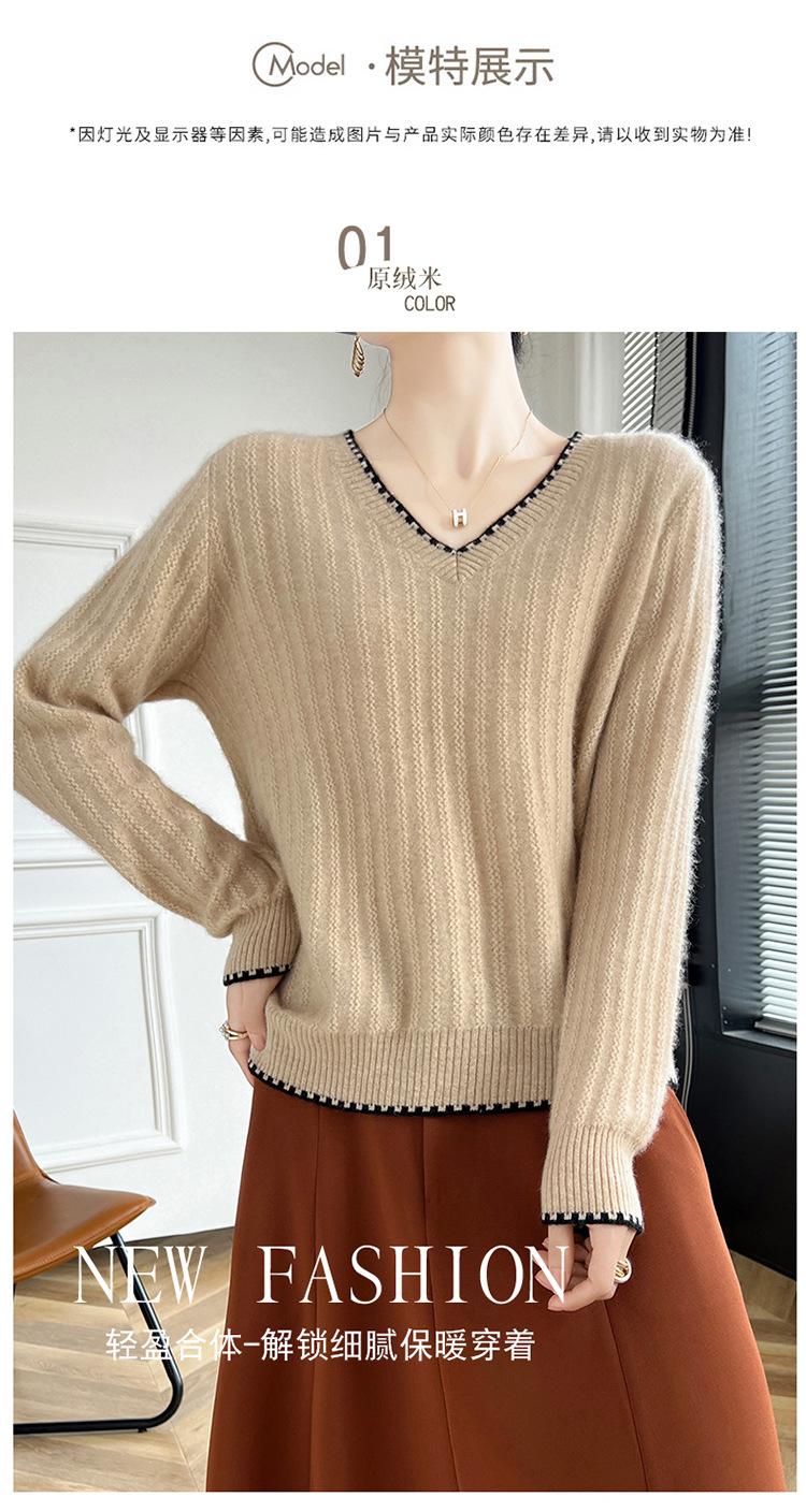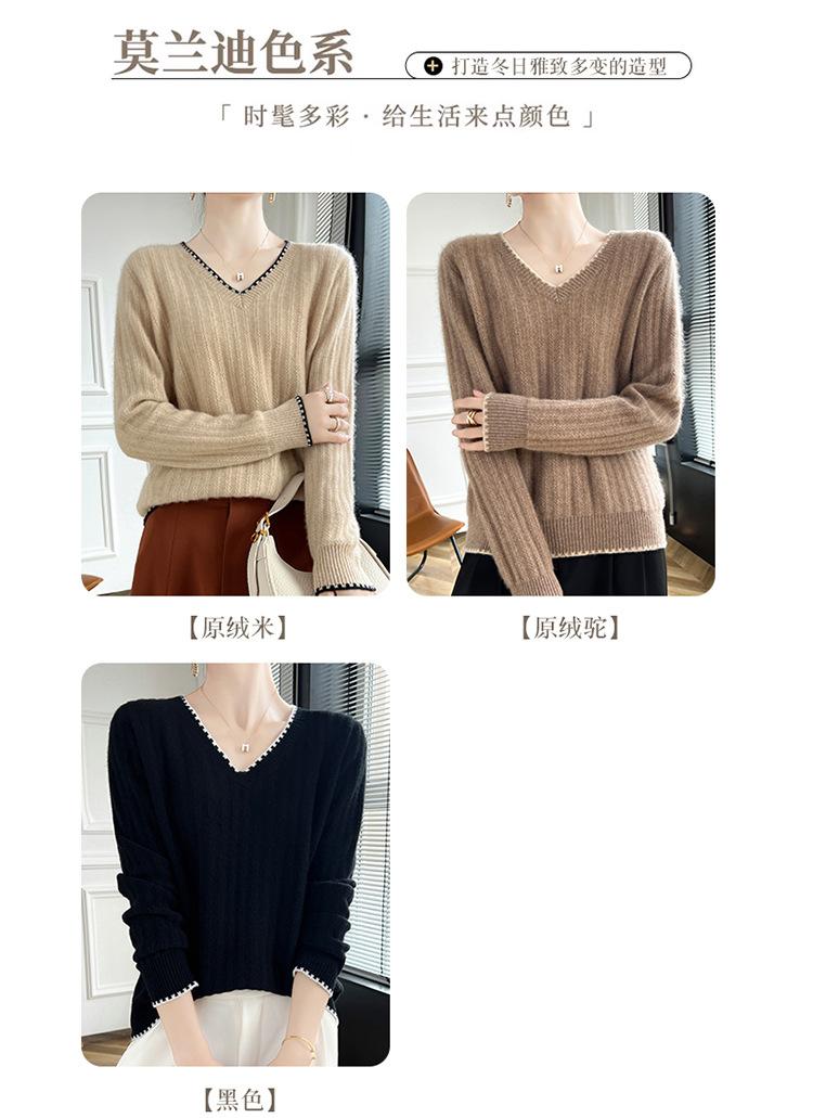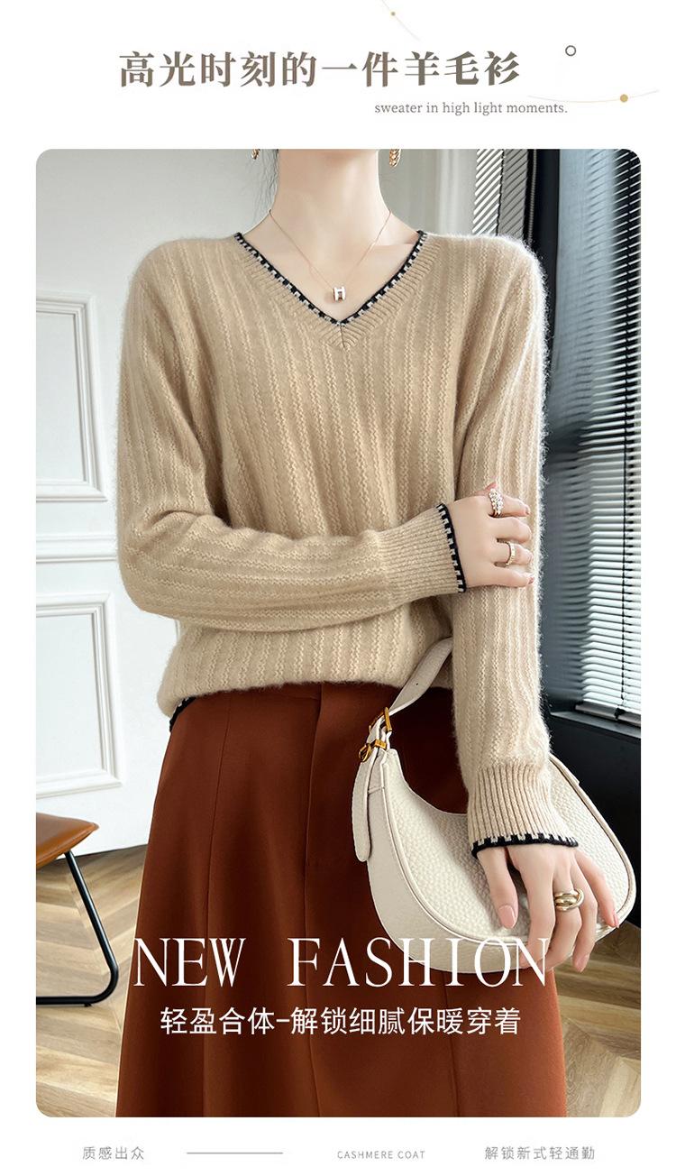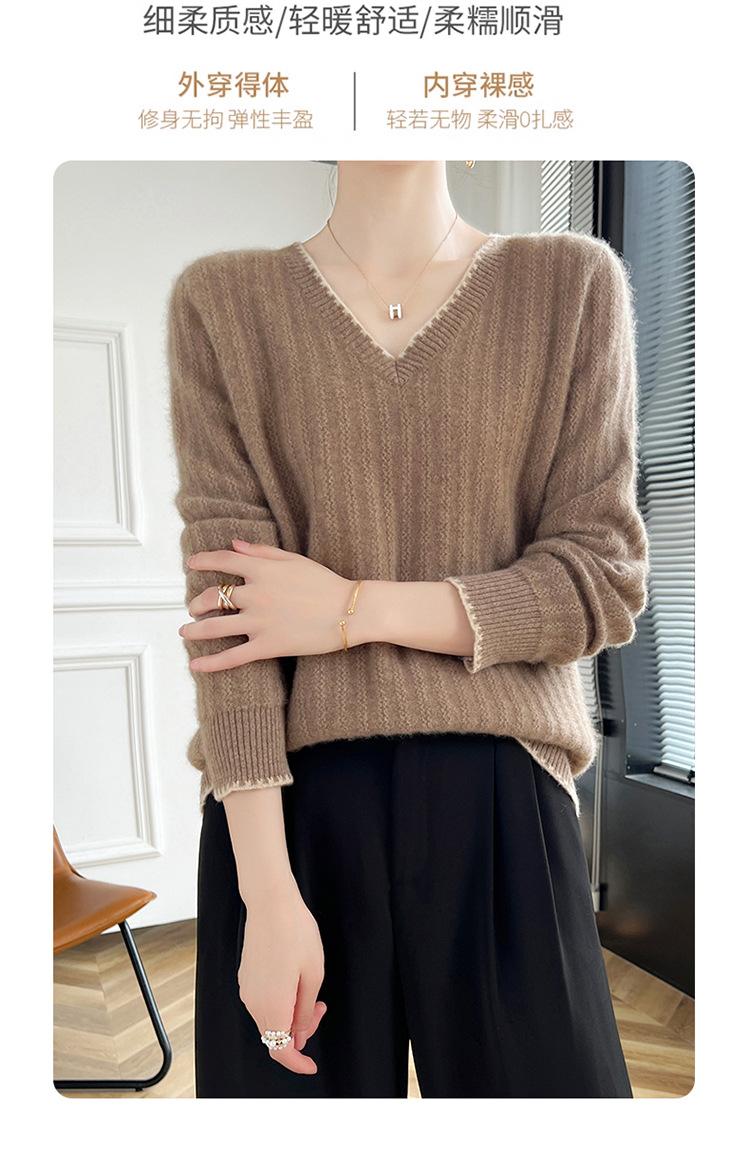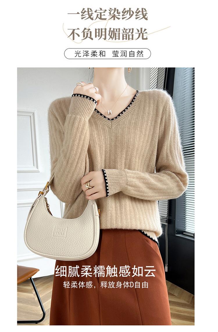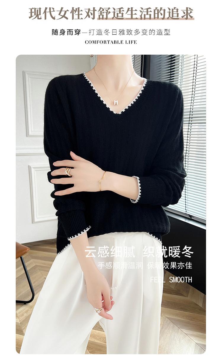 Suéter de cuello en V para mujer, jersey de manga larga, color liso, suelto, de punto, para principios de otoño, 2024