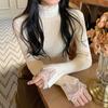 Otoño e Invierno Medio Cuello Alto Fondo para Mujer Nuevo Estilo Coreano Color Sólido Encaje Top de Punto Ajustado Suéter Interior para Mujer