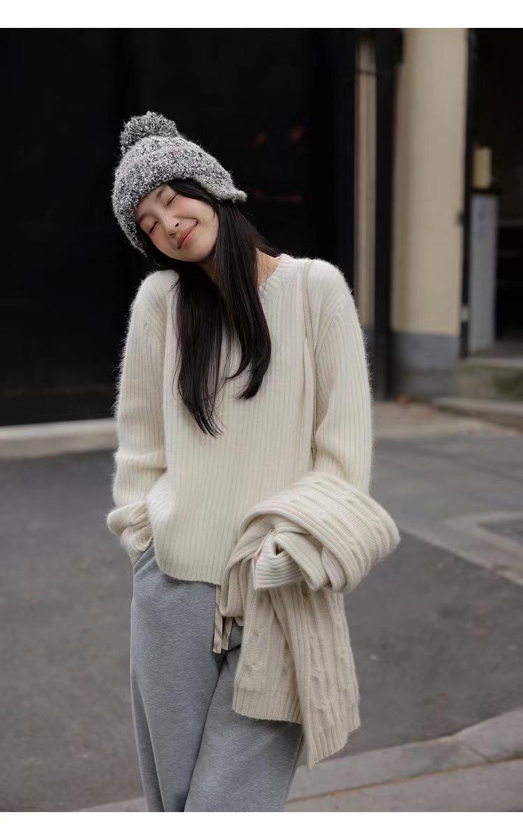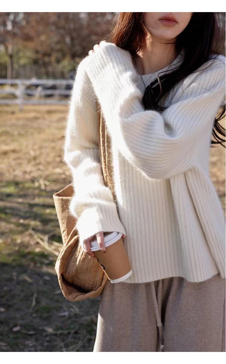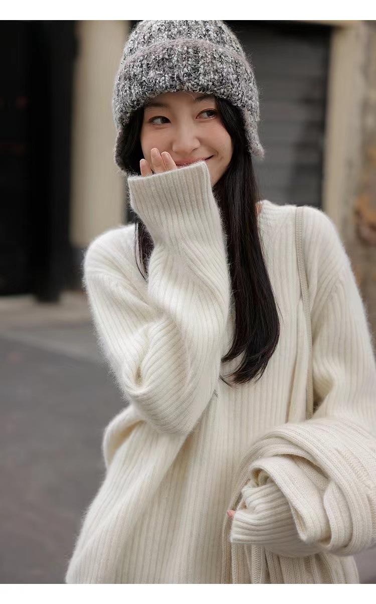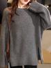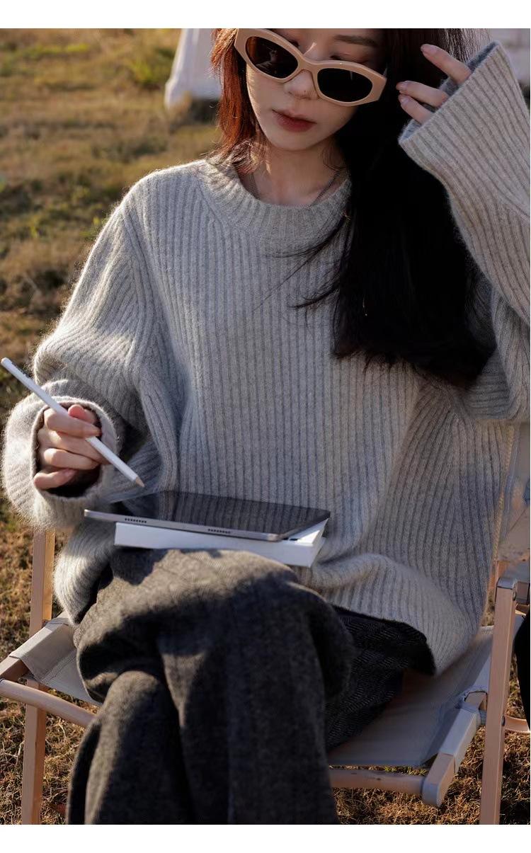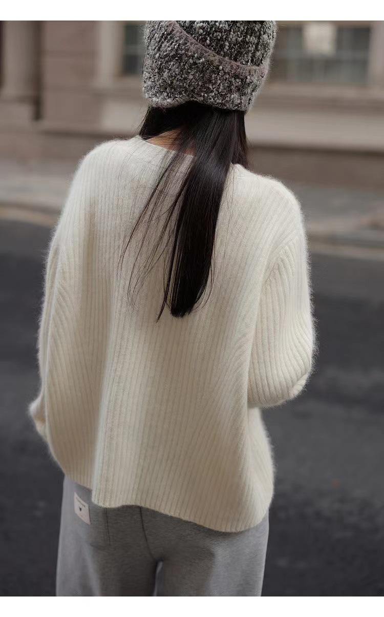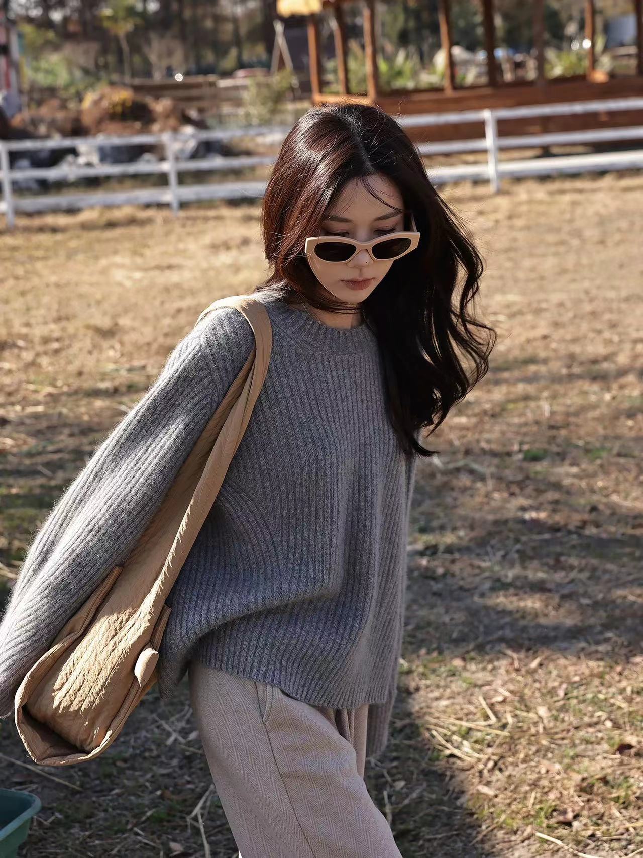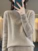 Camisa de punto con cuello redondo vertical para mujer, de lana pura, informal, cómoda, de manga larga, otoño e invierno de 2024