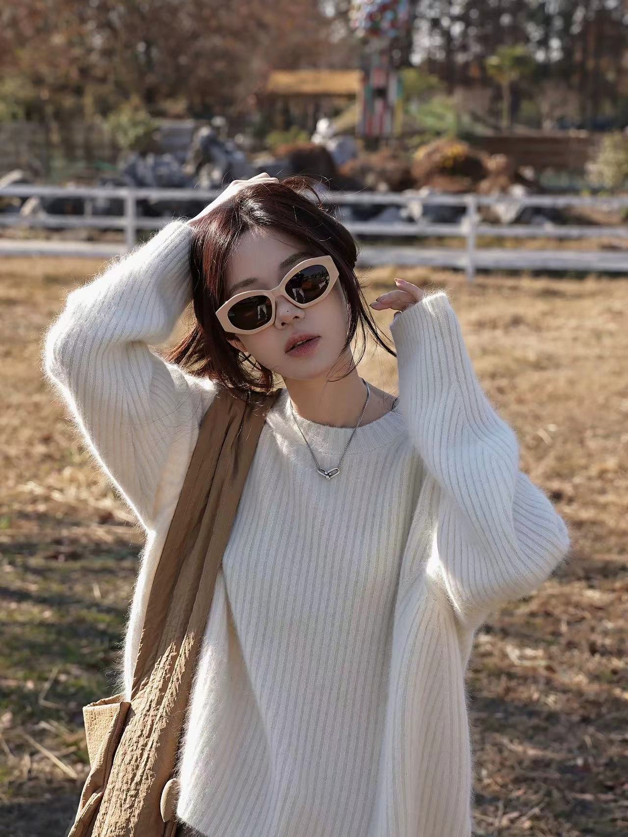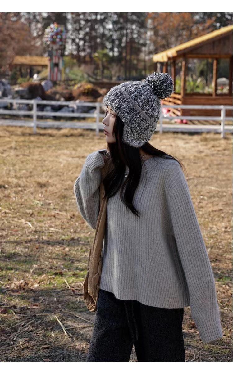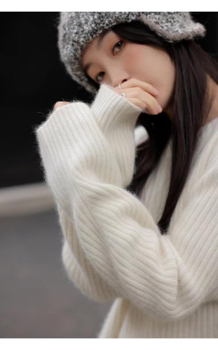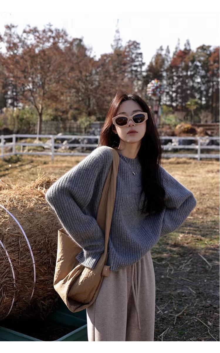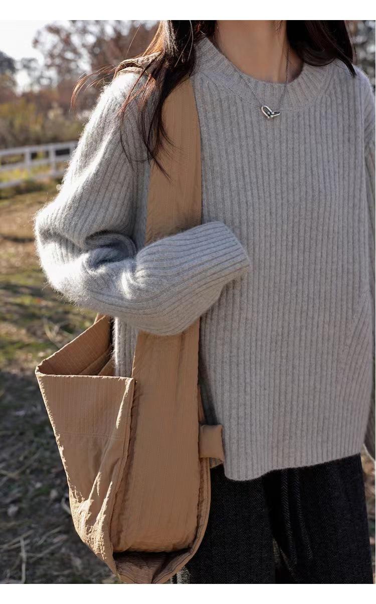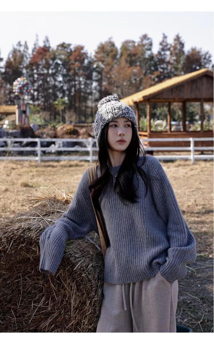Camisa de punto con cuello redondo vertical para mujer, de lana pura, informal, cómoda, de manga larga, otoño e invierno de 2024