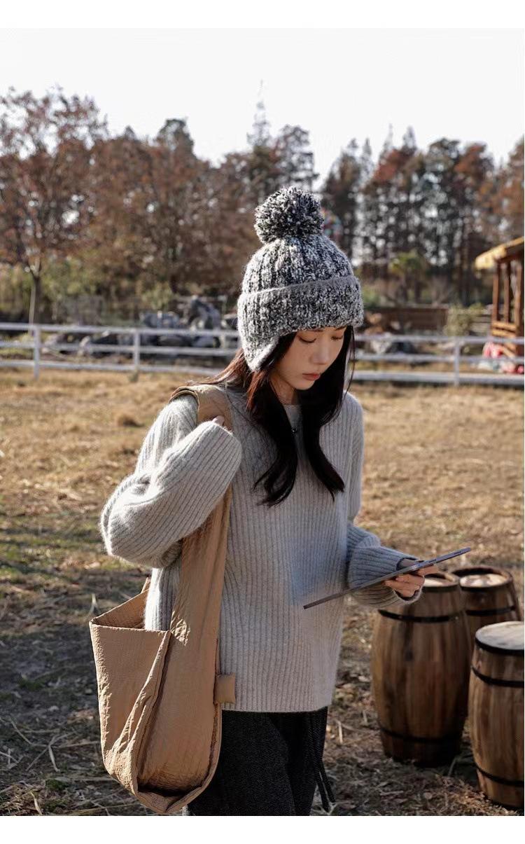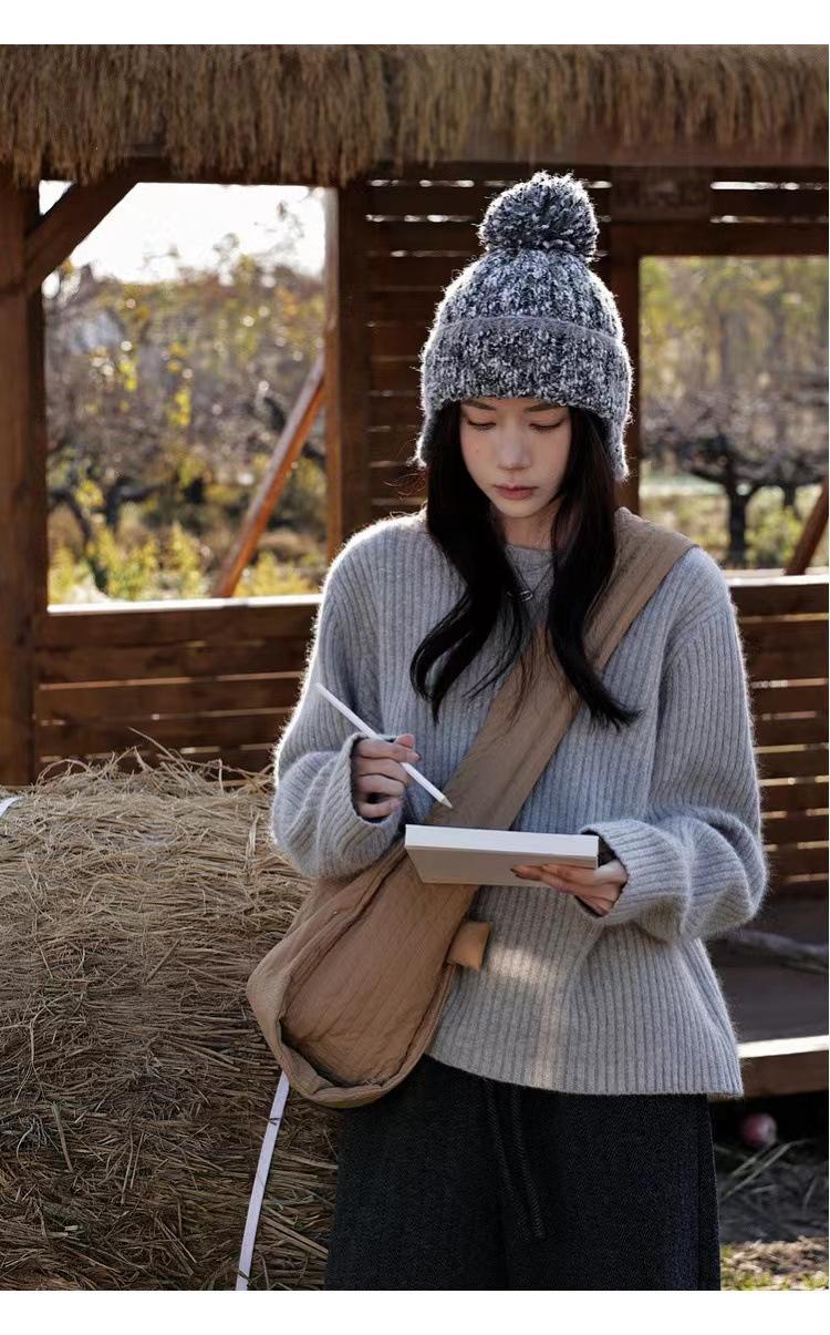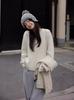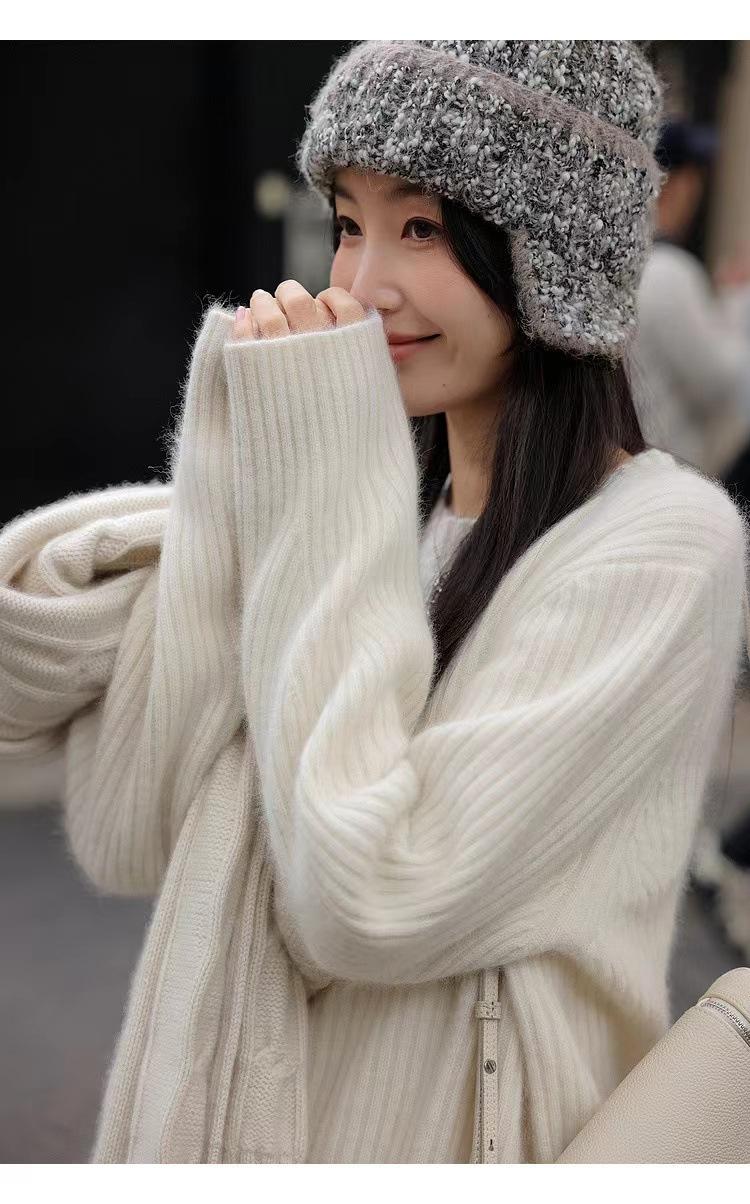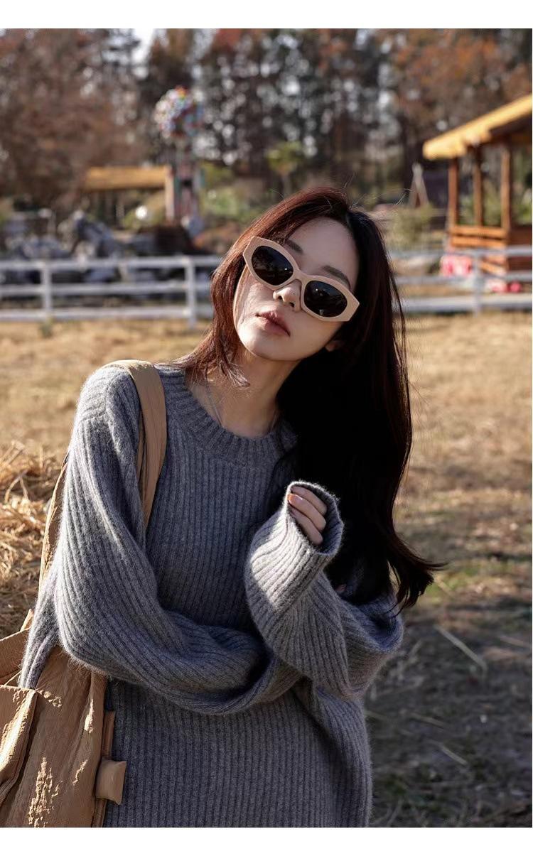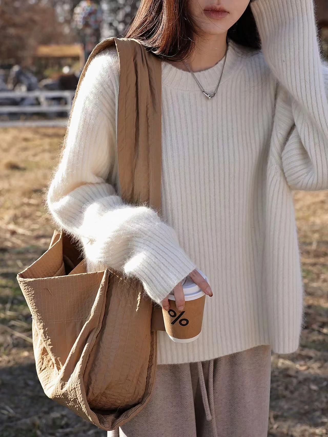 Camisa de punto con cuello redondo vertical para mujer, de lana pura, informal, cómoda, de manga larga, otoño e invierno de 2024