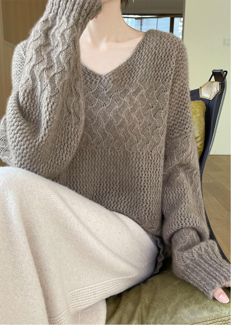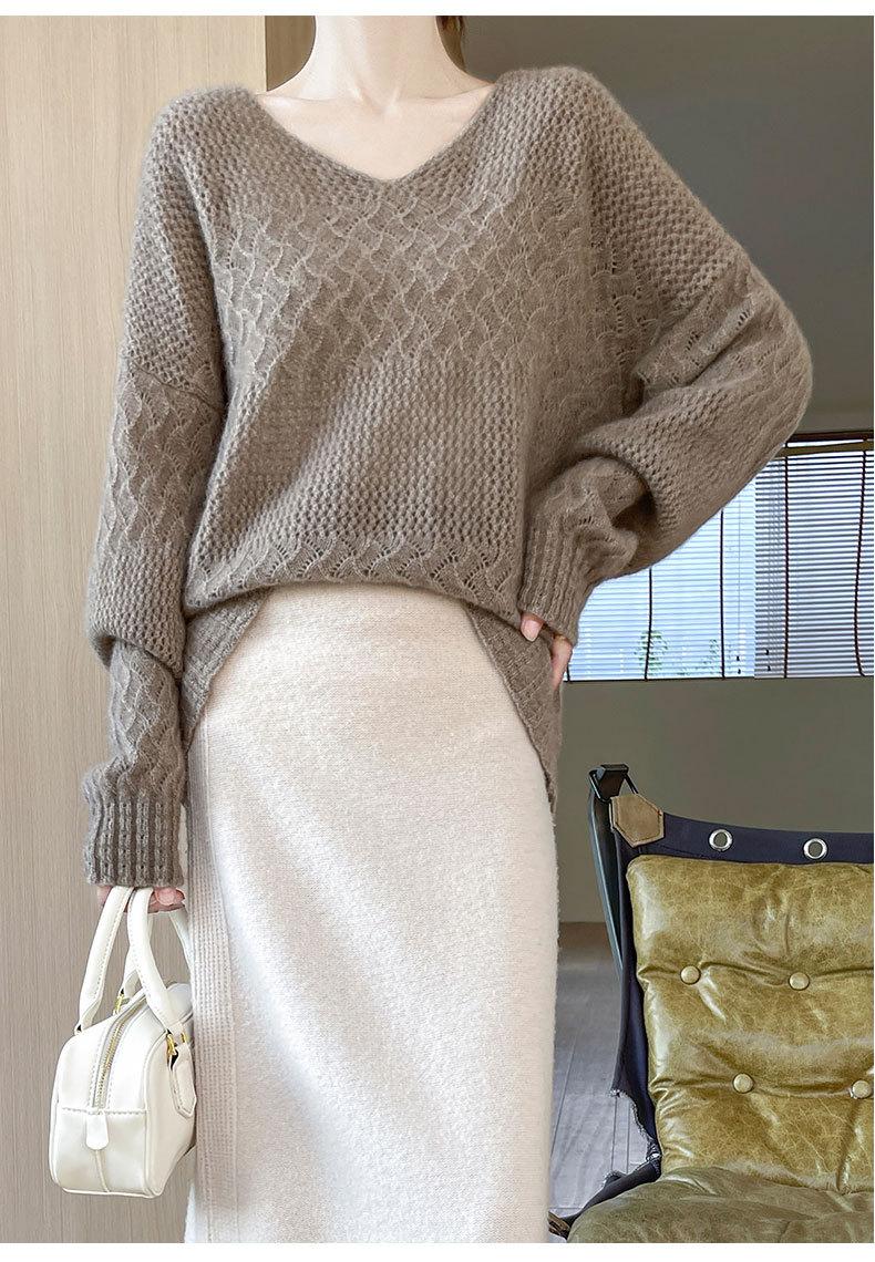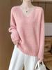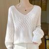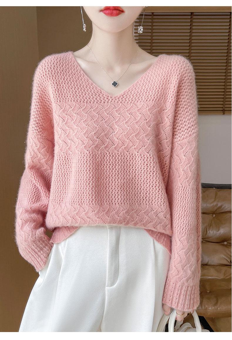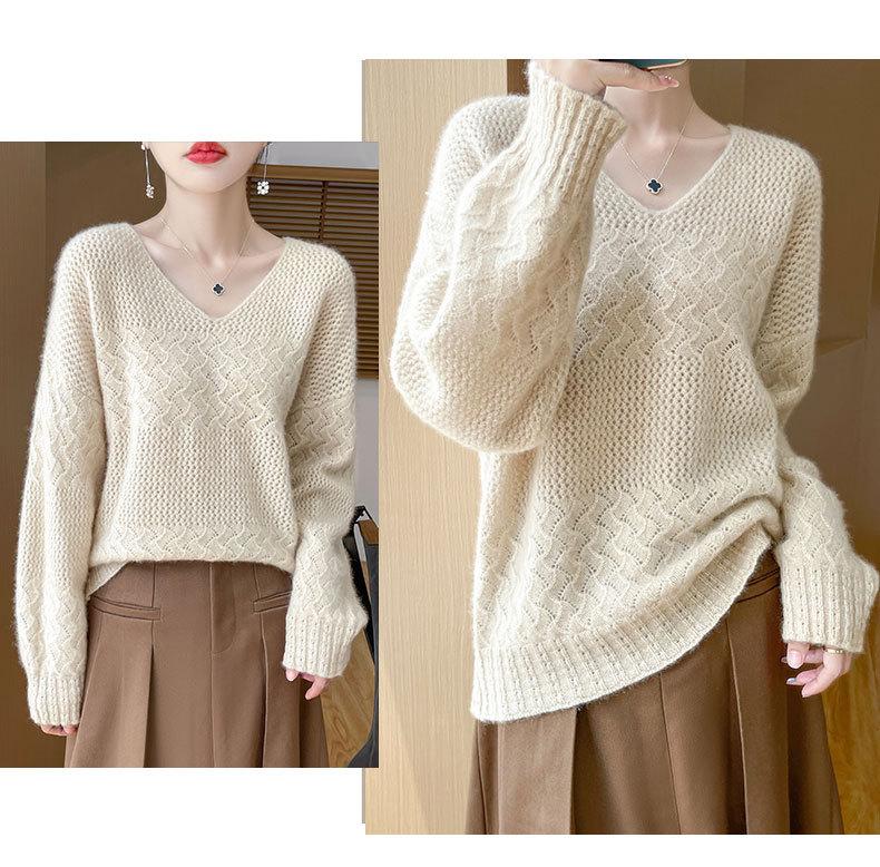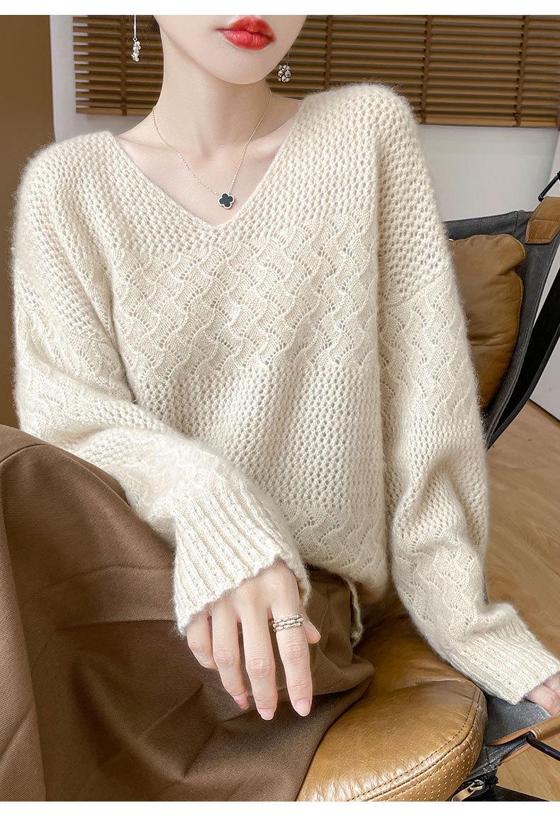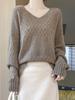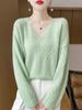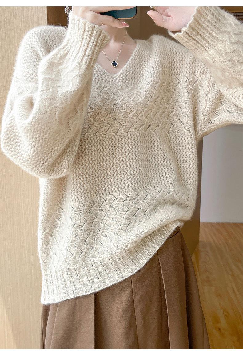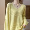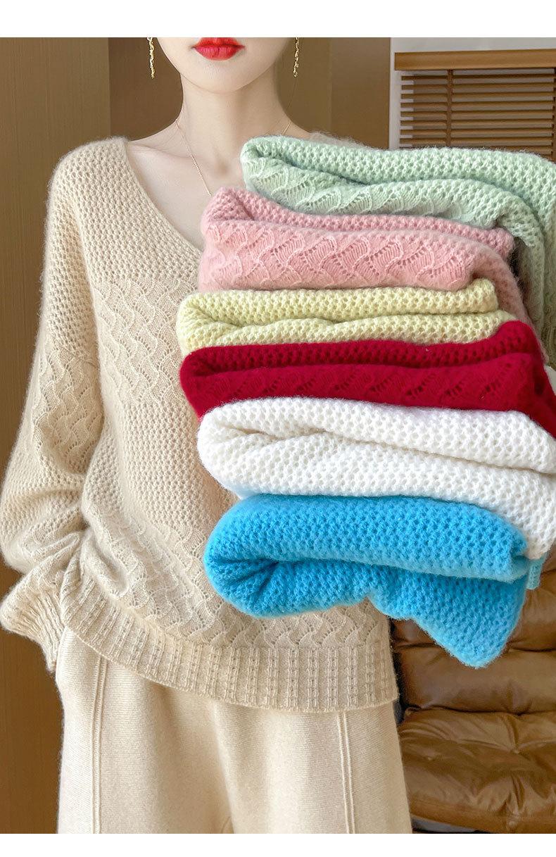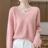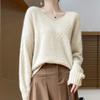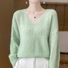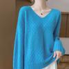 Suéter de cachemira con cuello en V para mujer, jersey de jacquard calado, holgado, combinable con todo, para uso diario, camisa de lana, novedad de otoño e invierno.
