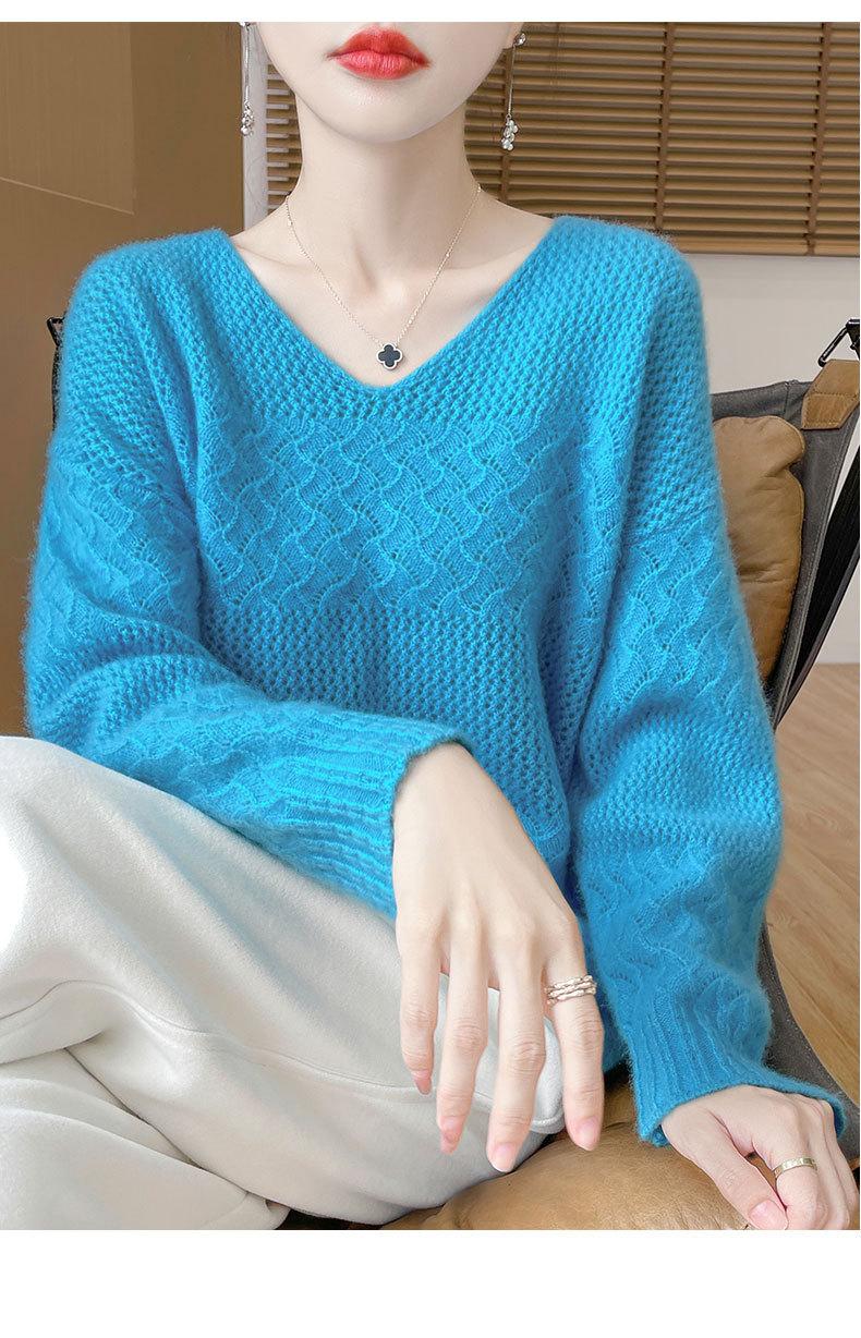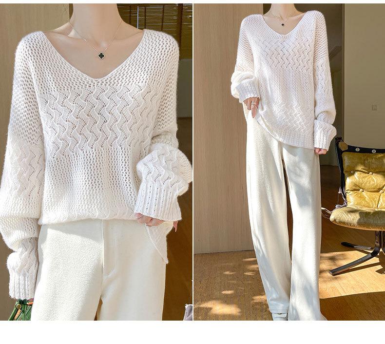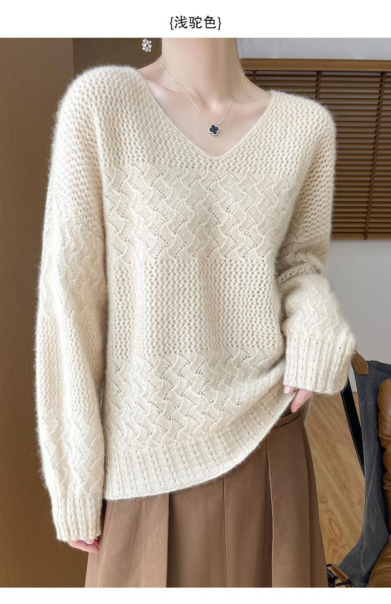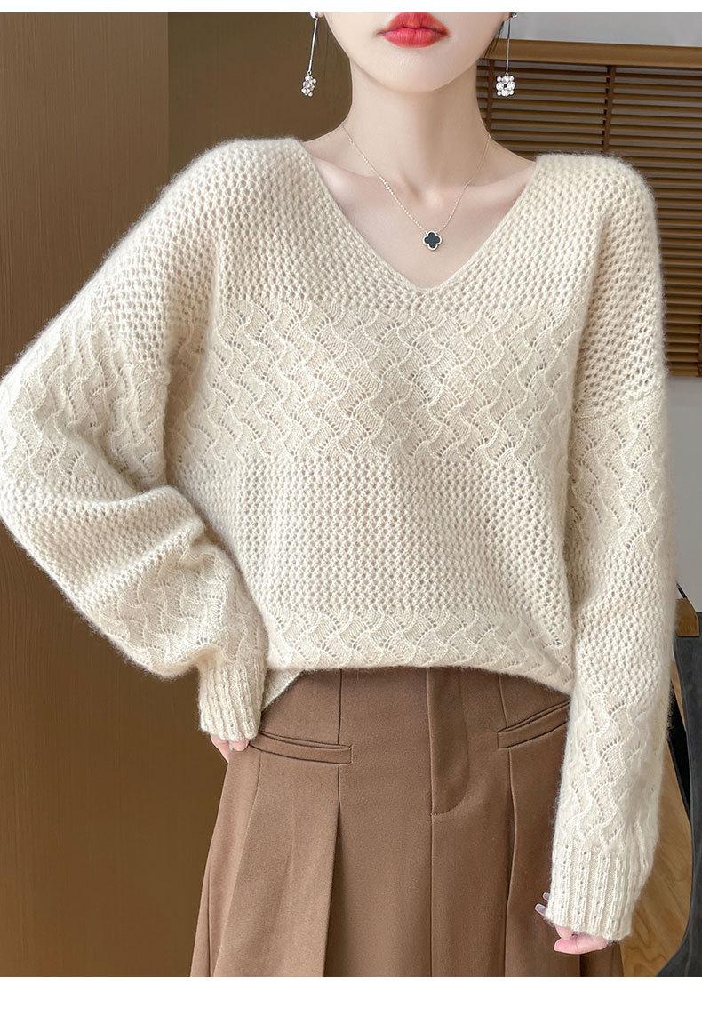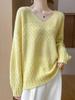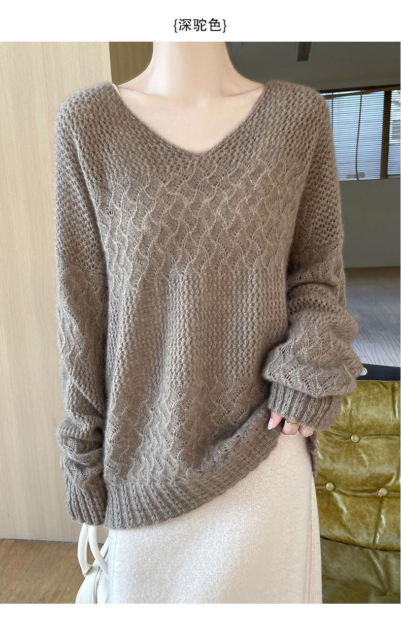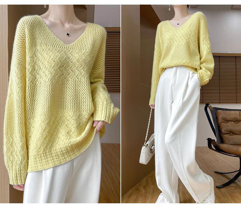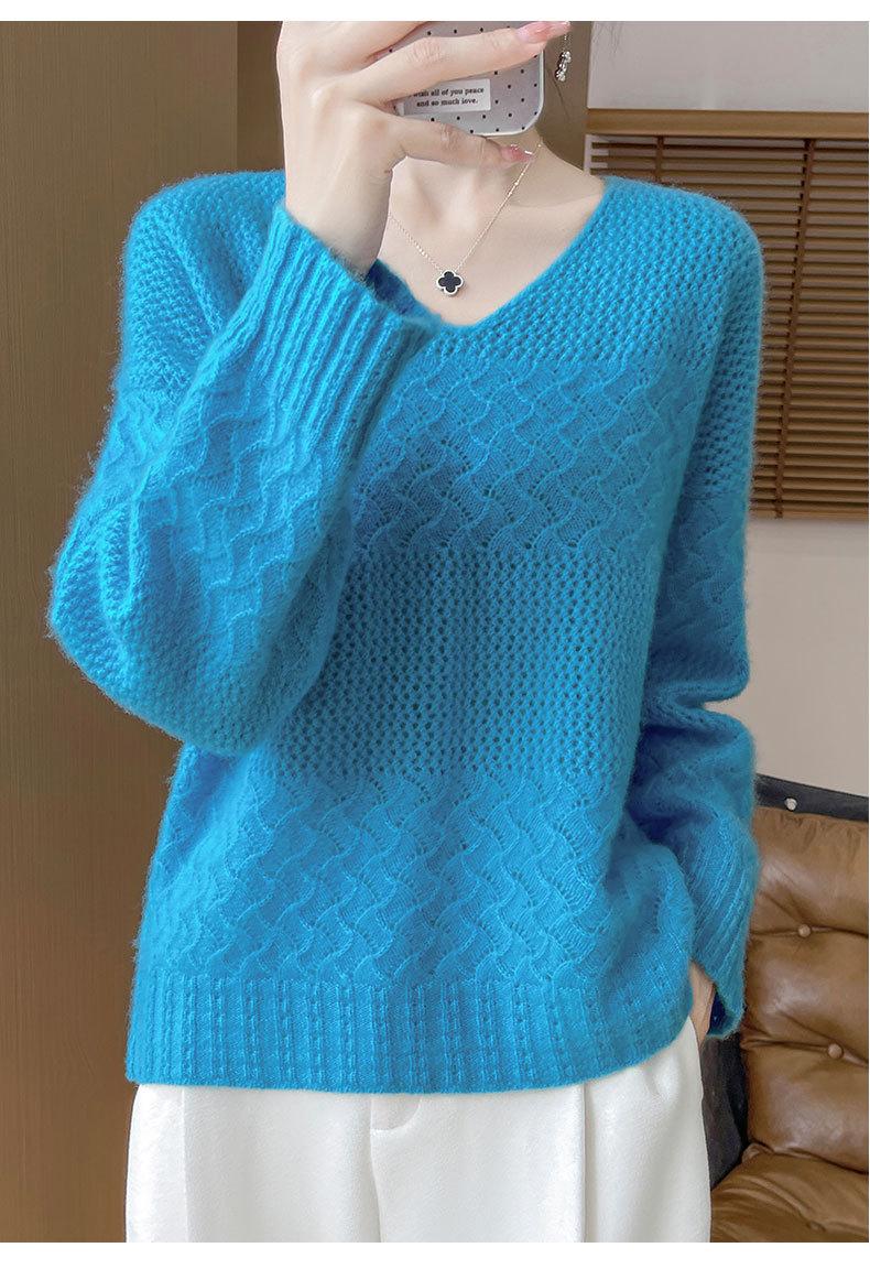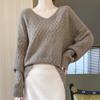 Suéter de cachemira con cuello en V para mujer, jersey de jacquard calado, holgado, combinable con todo, para uso diario, camisa de lana, novedad de otoño e invierno.