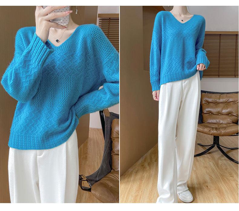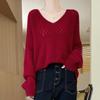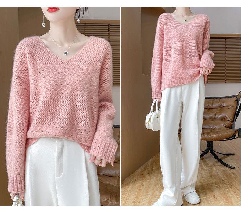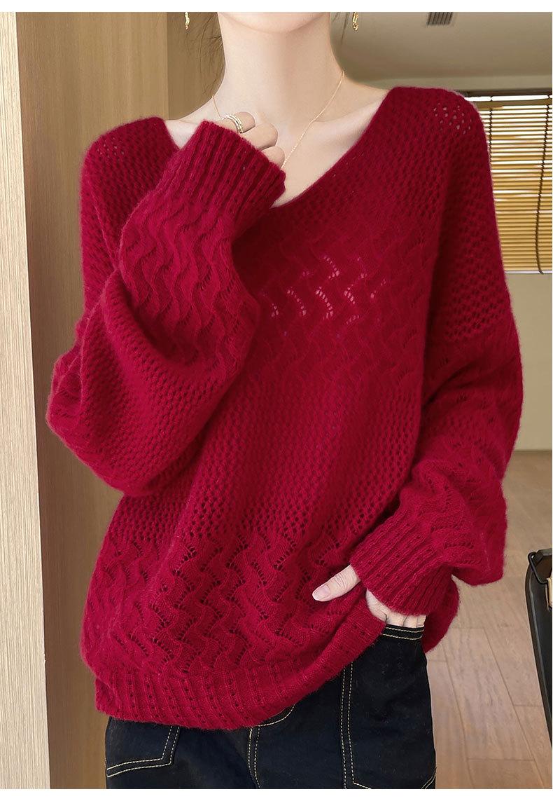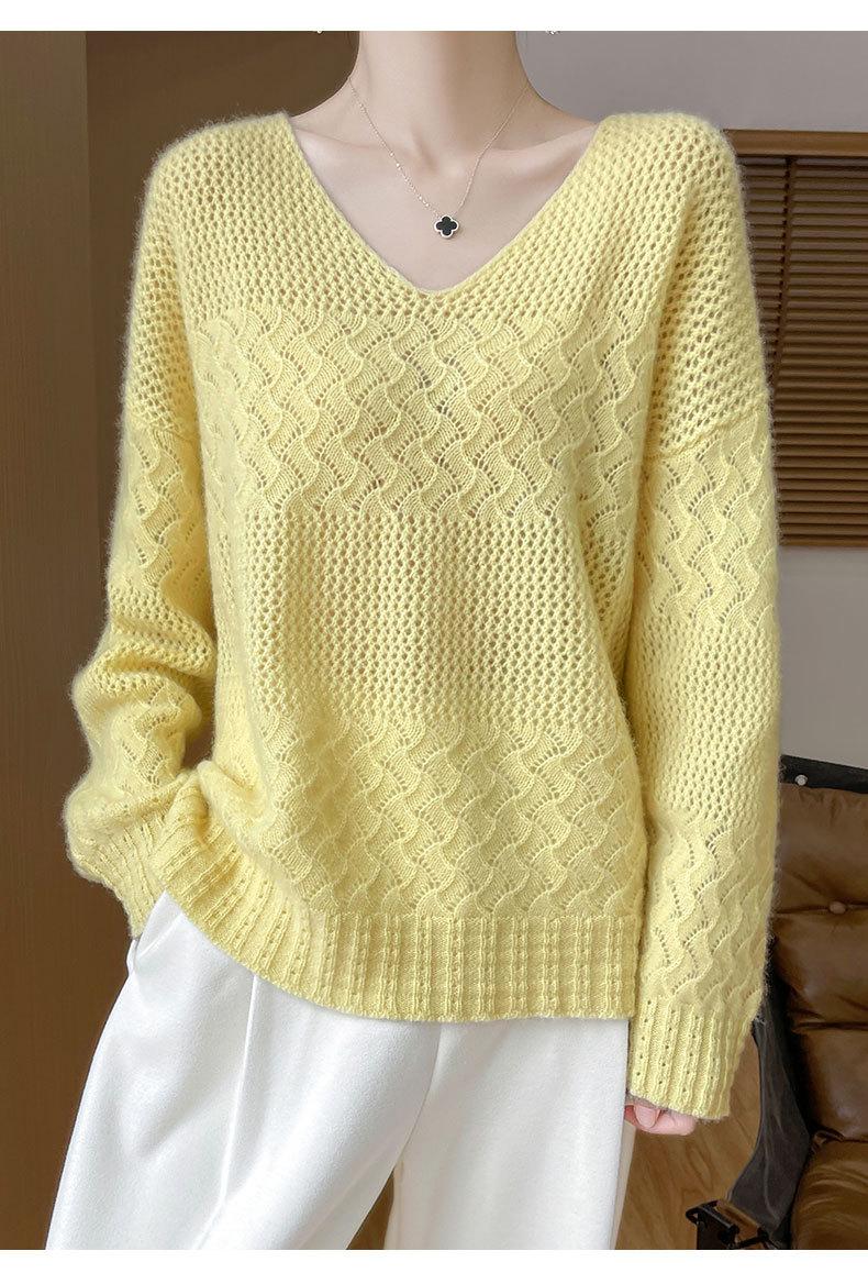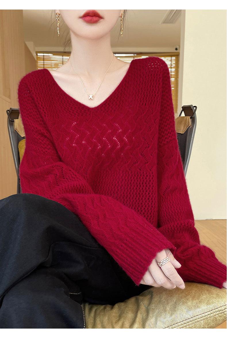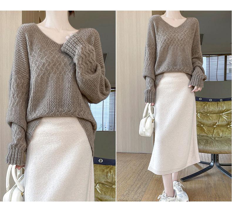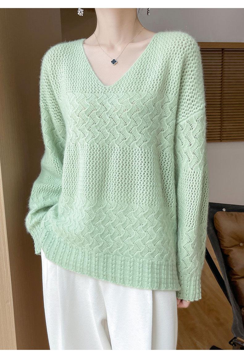 Suéter de cachemira con cuello en V para mujer, jersey de jacquard calado, holgado, combinable con todo, para uso diario, camisa de lana, novedad de otoño e invierno.