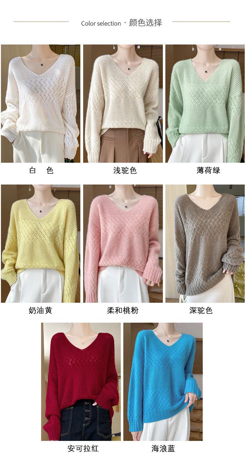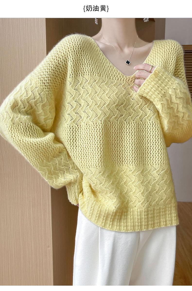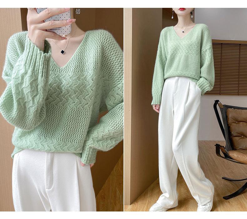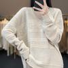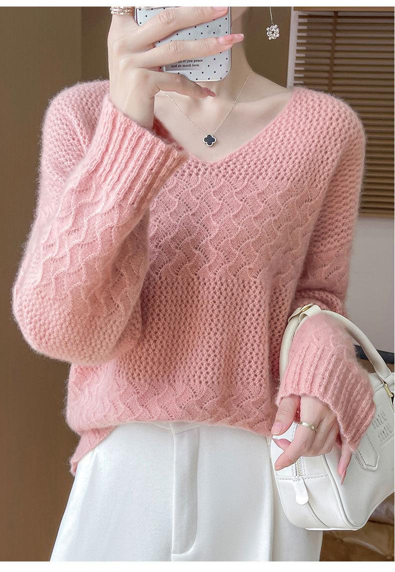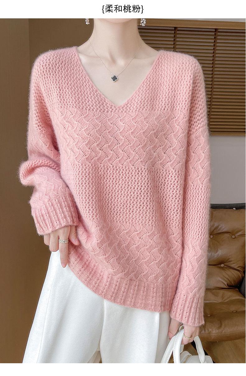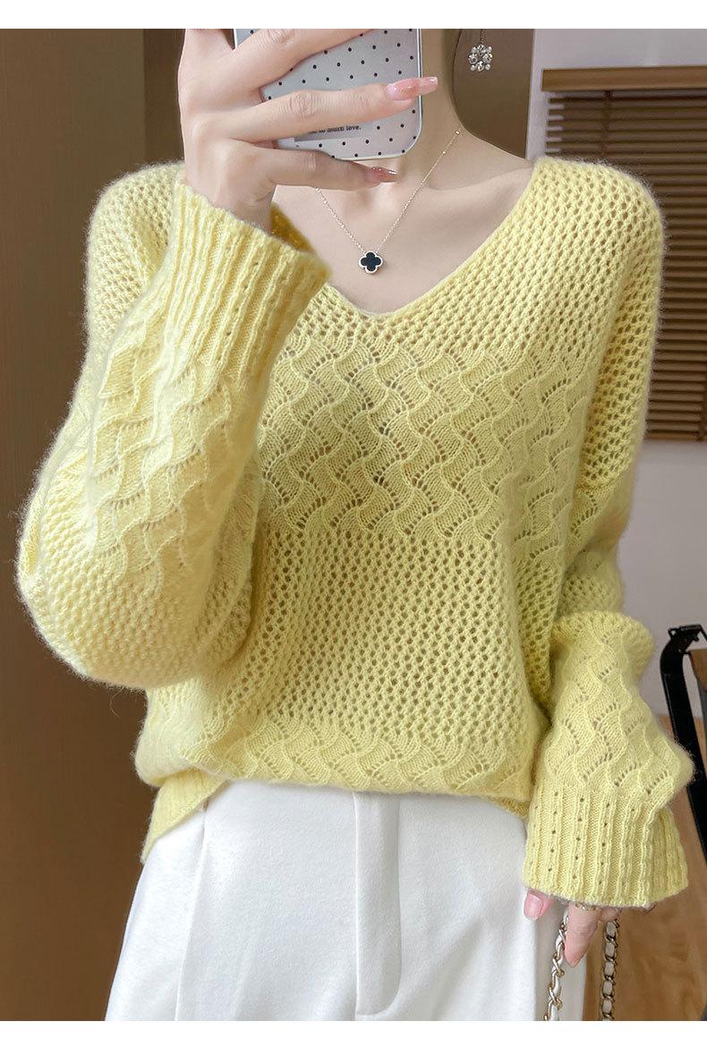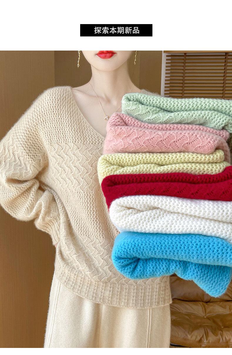 Suéter de cachemira con cuello en V para mujer, jersey de jacquard calado, holgado, combinable con todo, para uso diario, camisa de lana, novedad de otoño e invierno.