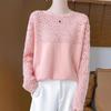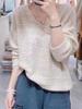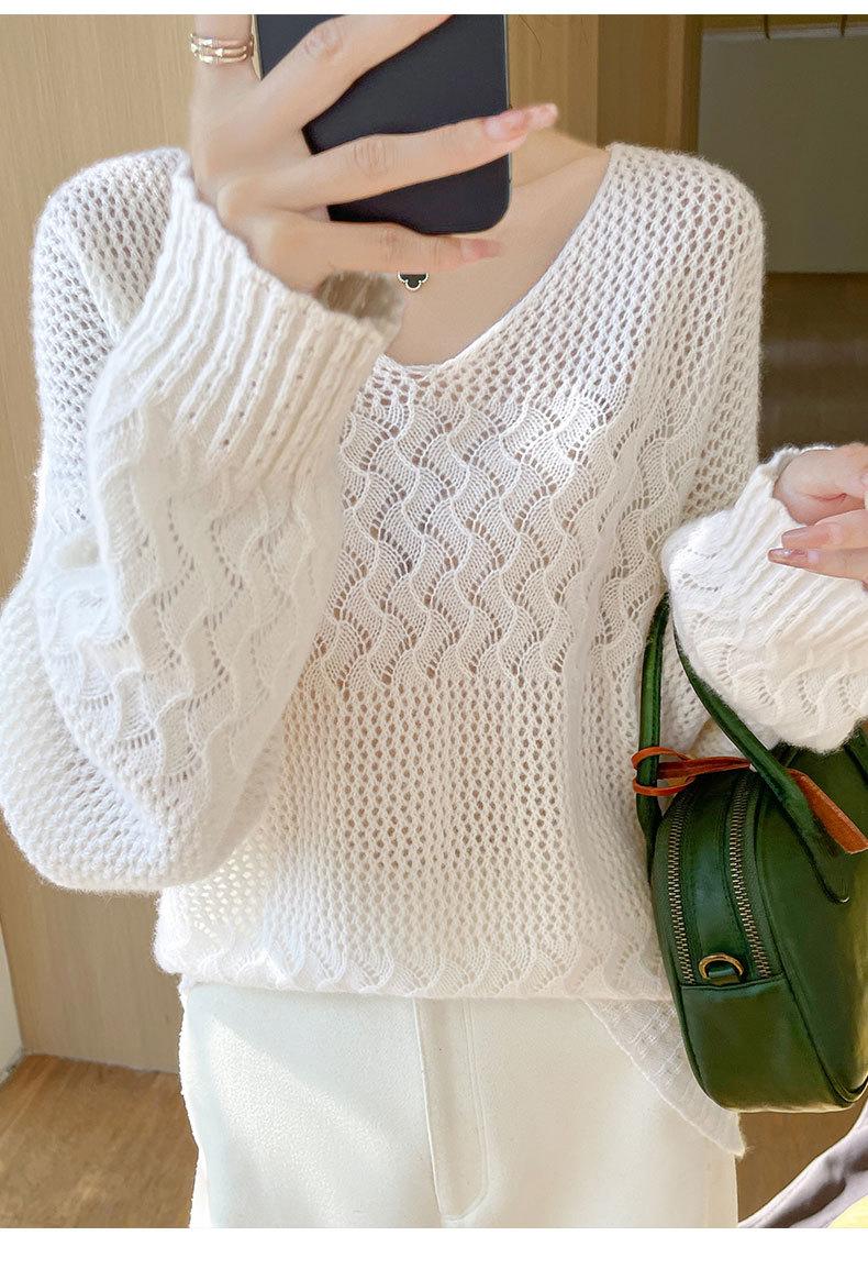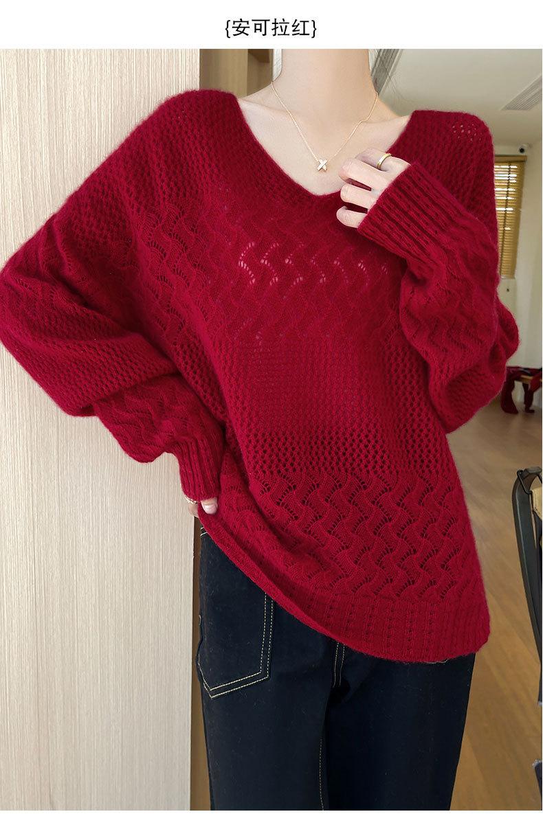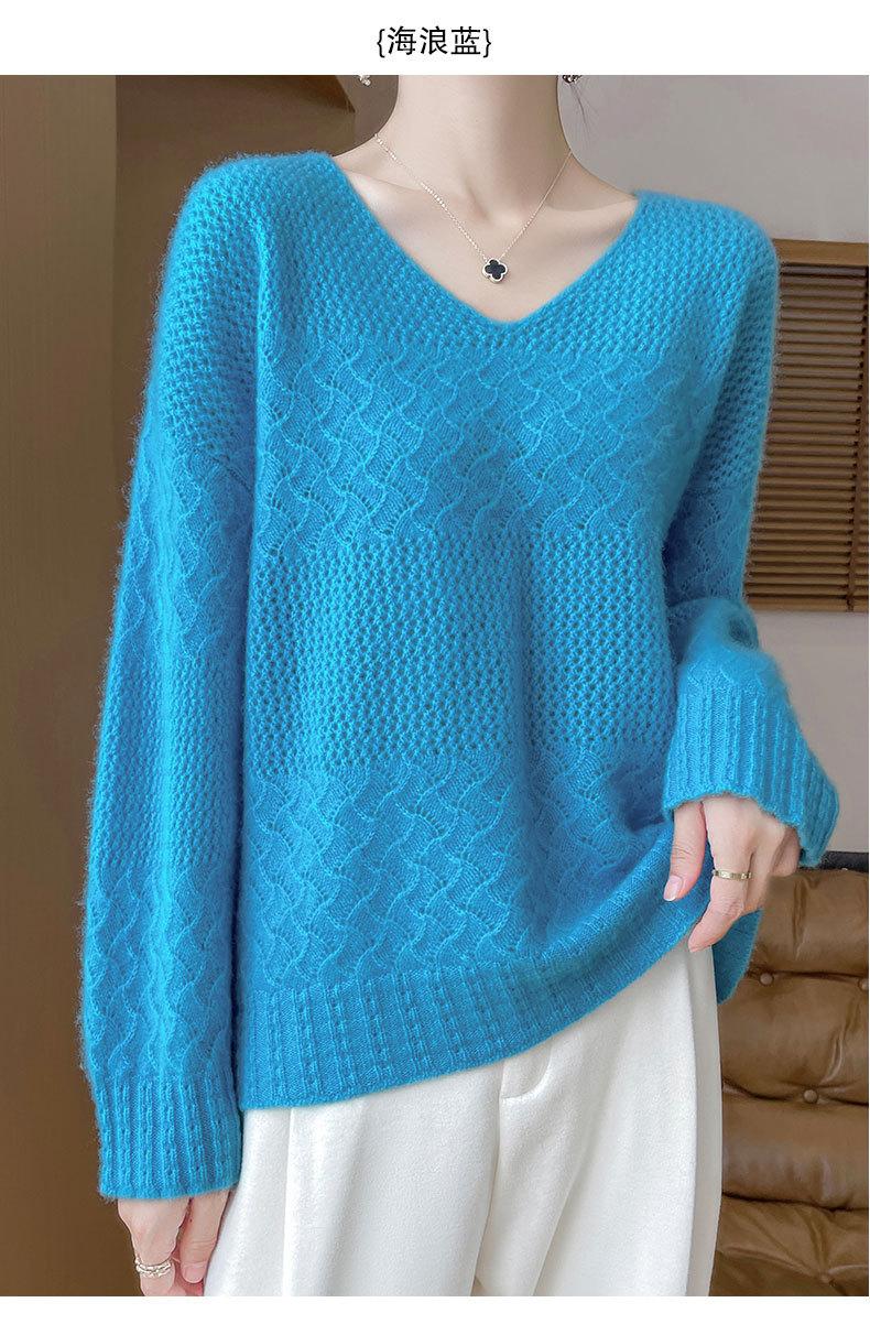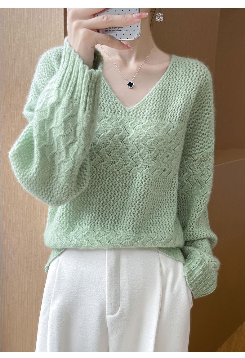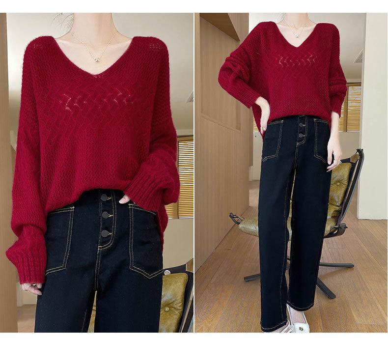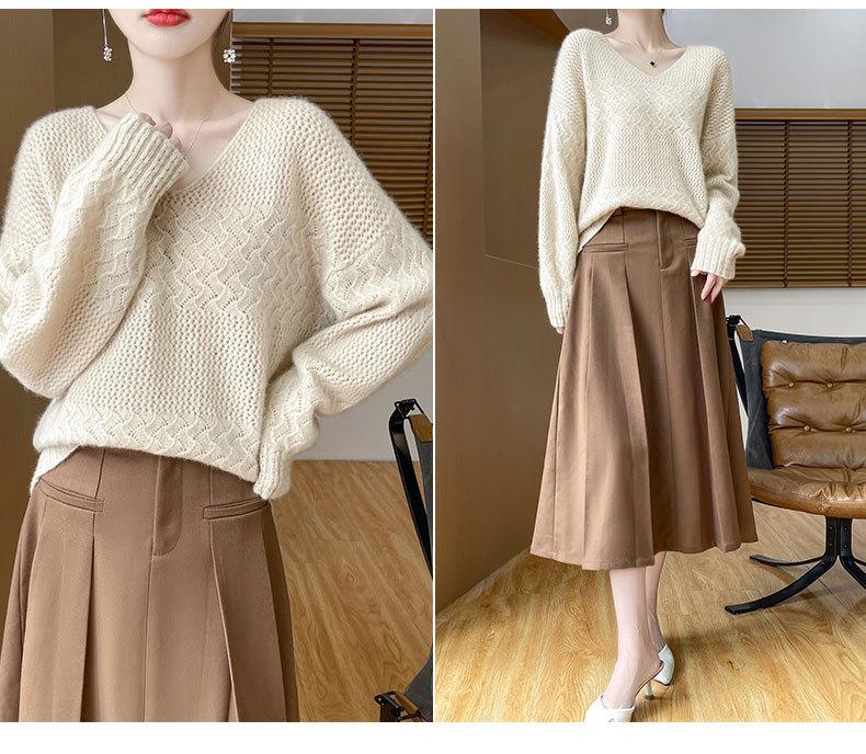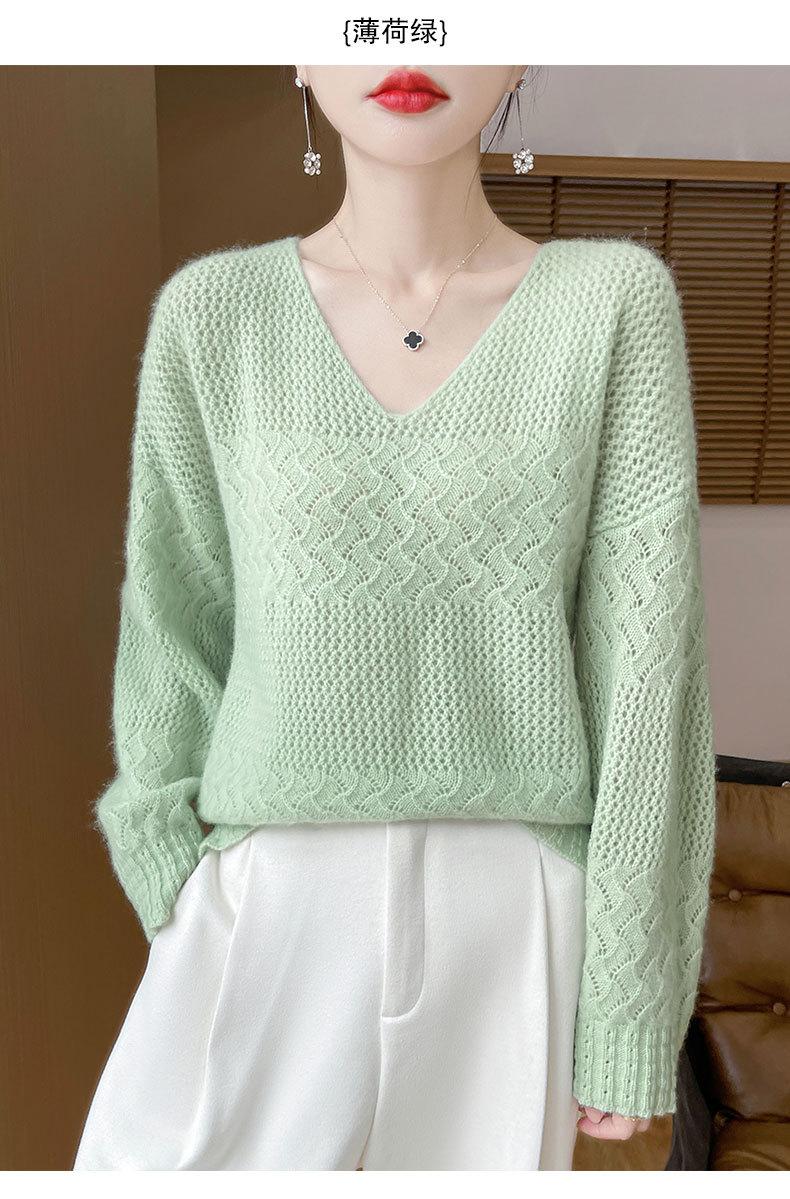 Suéter de cachemira con cuello en V para mujer, jersey de jacquard calado, holgado, combinable con todo, para uso diario, camisa de lana, novedad de otoño e invierno.