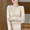 Suéter de punto sin costuras con cuello redondo y manga larga para mujer, jersey de moda de primera línea de otoño e invierno