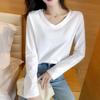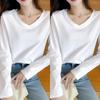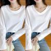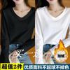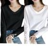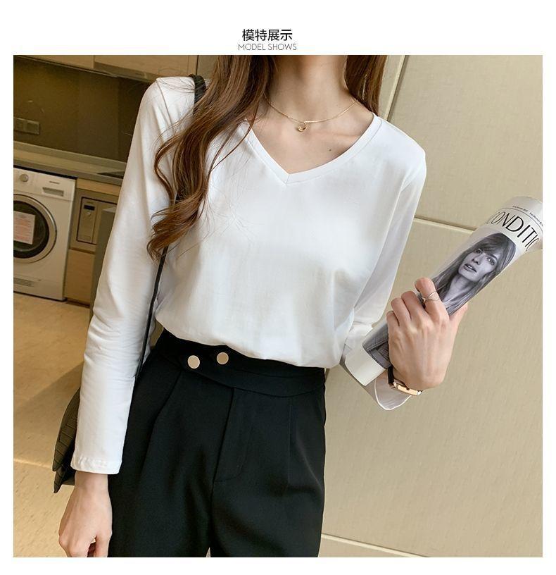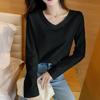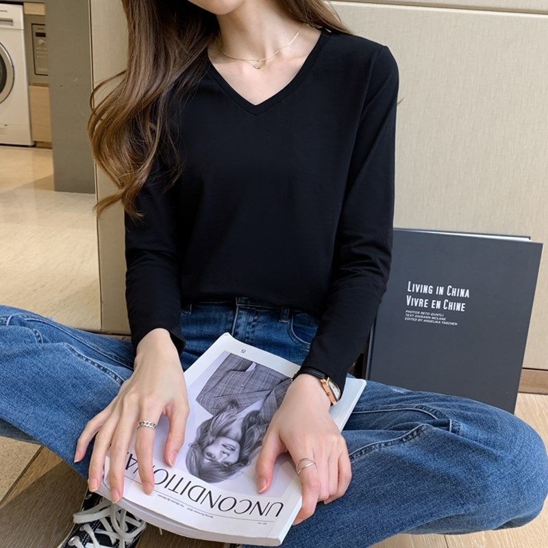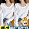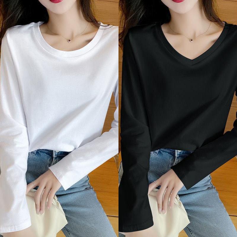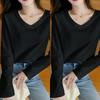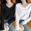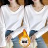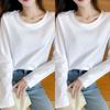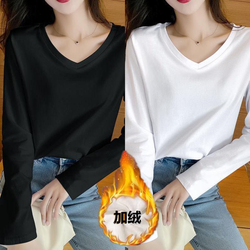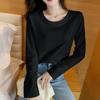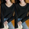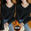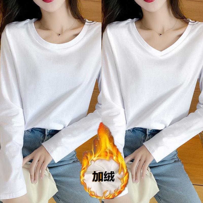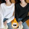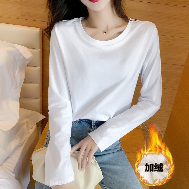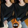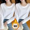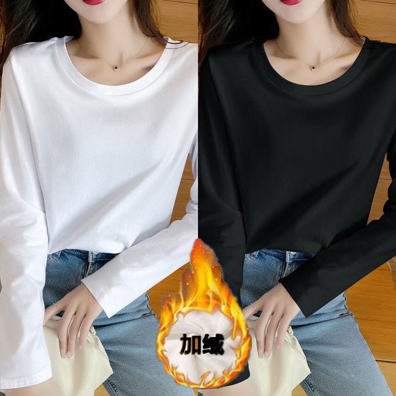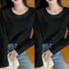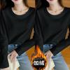Camisa básica de manga larga de color liso para mujer, camiseta ajustada de estilo coreano para otoño e invierno, cuello redondo negro, top holgado con forro polar de moda para todo tipo de combinaciones.