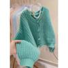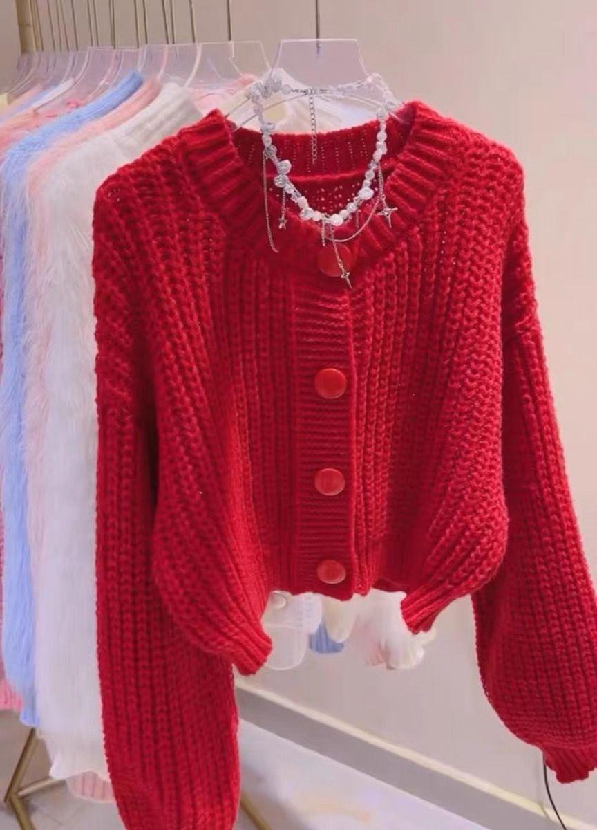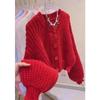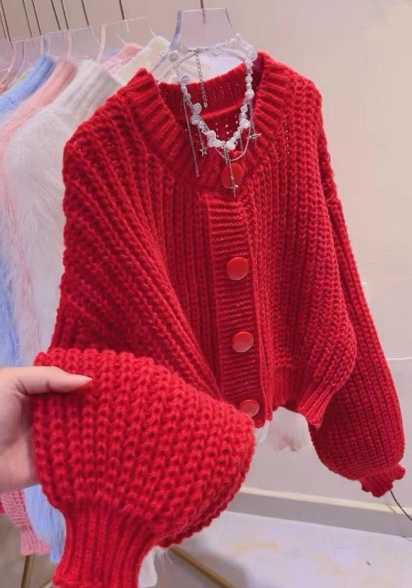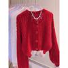 Branco Preguiçoso Doce Vermelho Casaco de Suéter Mulheres Outono Novo Solto Estilo Ocidental Engrossado Em Torno Do Pescoço Cardigan Curto De Malha