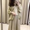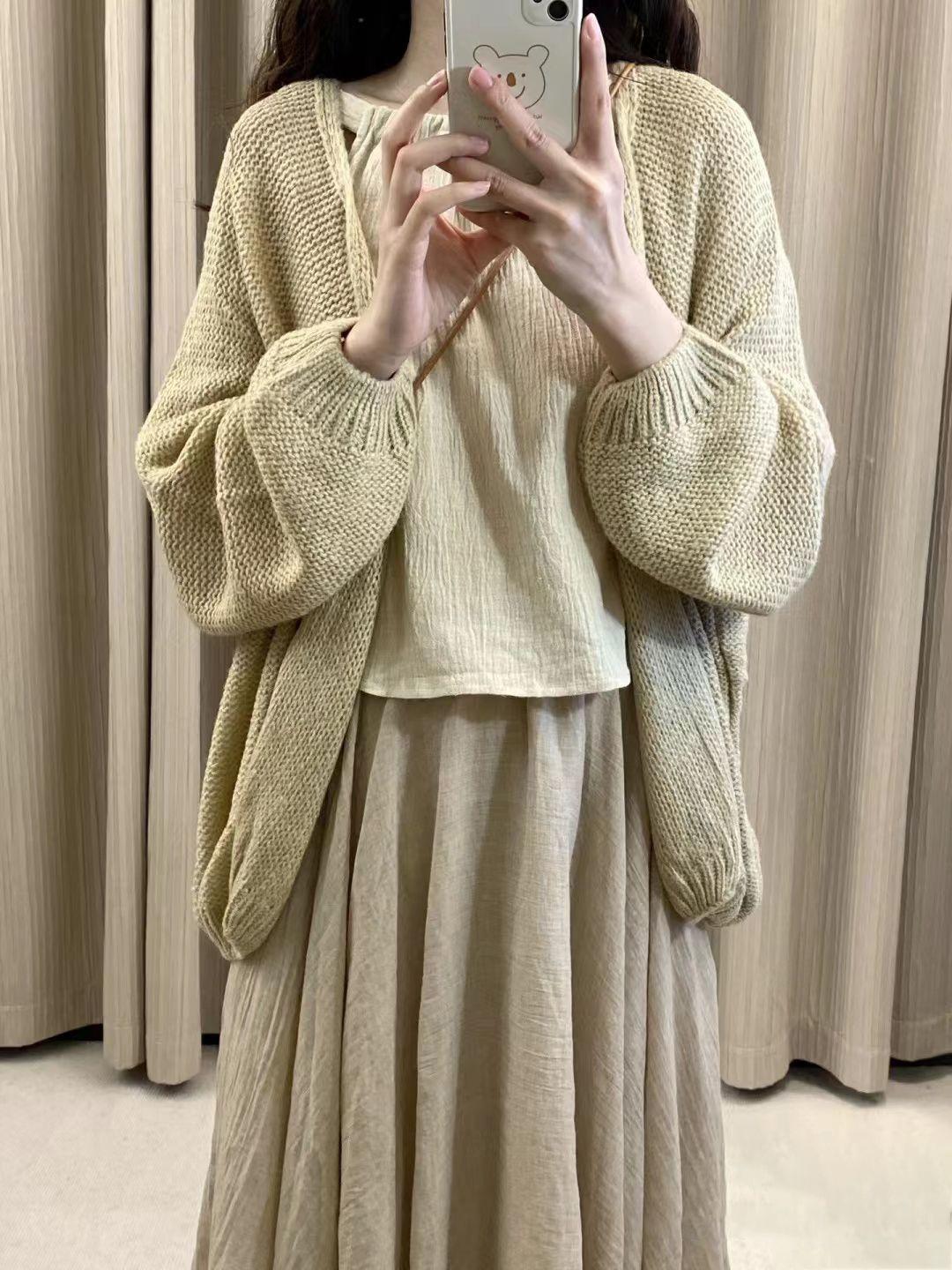 Traje de tres piezas para mujer 2025 Primavera Nuevo estilo Cárdigan de punto suave Protección solar Chaleco halter Falda ajustada de cintura alta