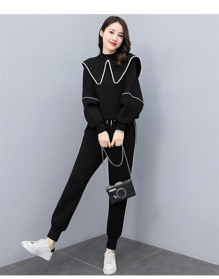 Traje deportivo blanco para mujer, otoño e invierno, nuevo, popular, suelto, de moda, estilo urbano, elegante, informal, suéter de dos piezas.