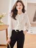 Camisa elegante de gasa con cuello floral estilo francés, color blanco, nueva llegada, para mujer, jersey de manga larga, camisa fina de primavera