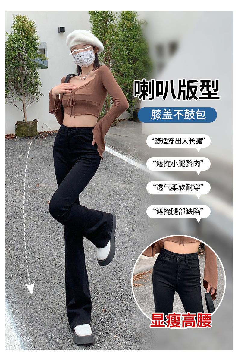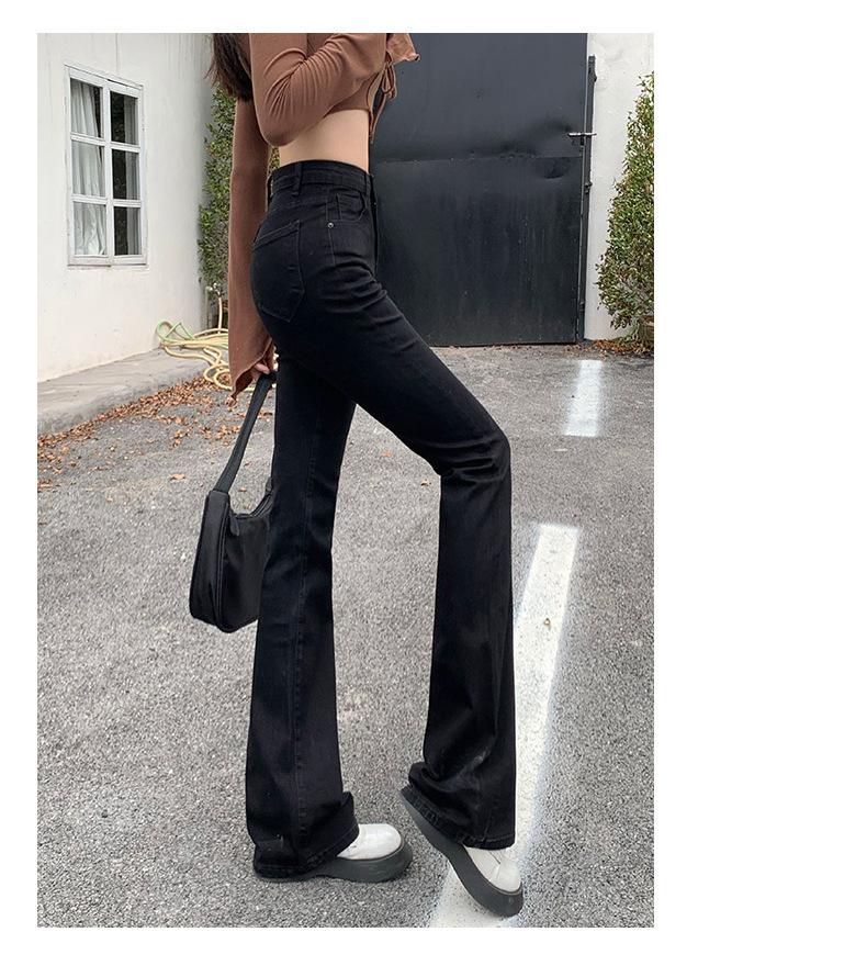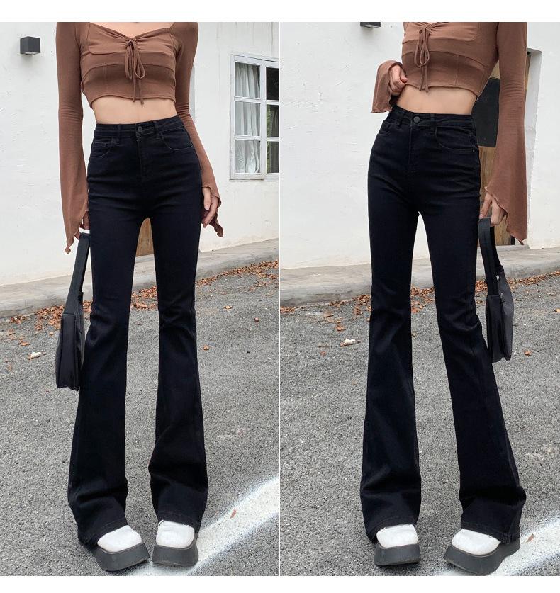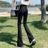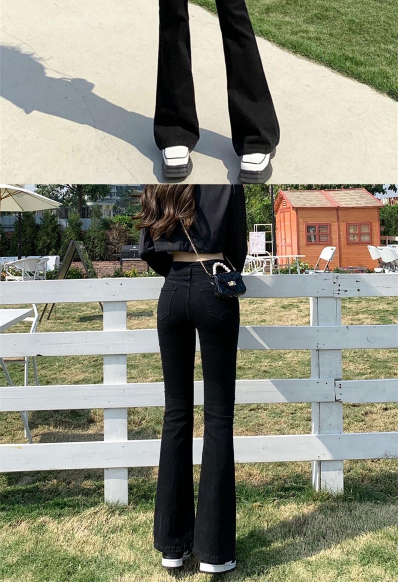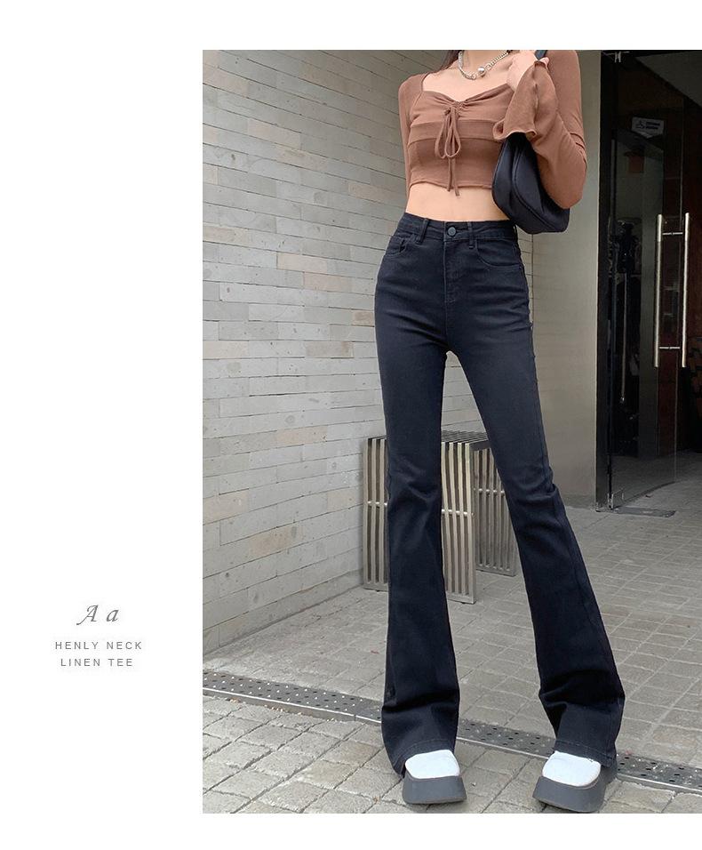 Vaqueros negros de tiro alto y micro acampanados para mujer, primavera 2024, elásticos, ajustados y de pierna ancha.