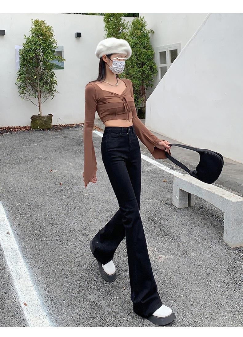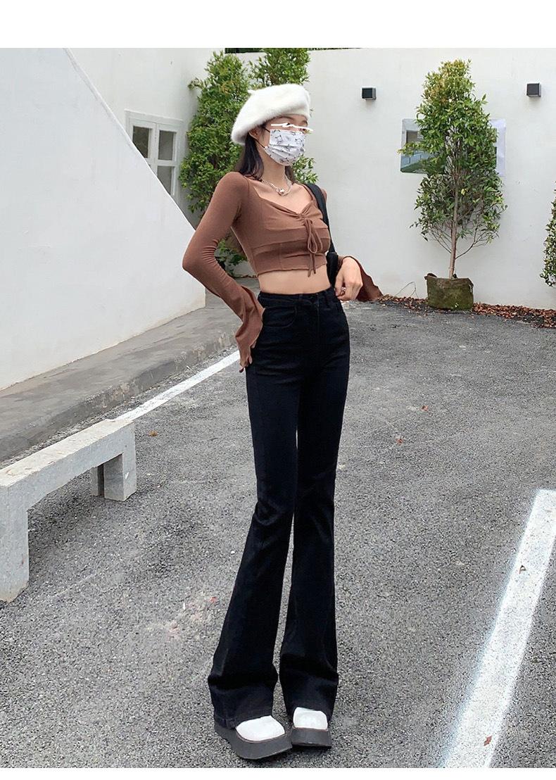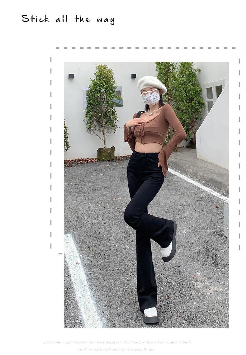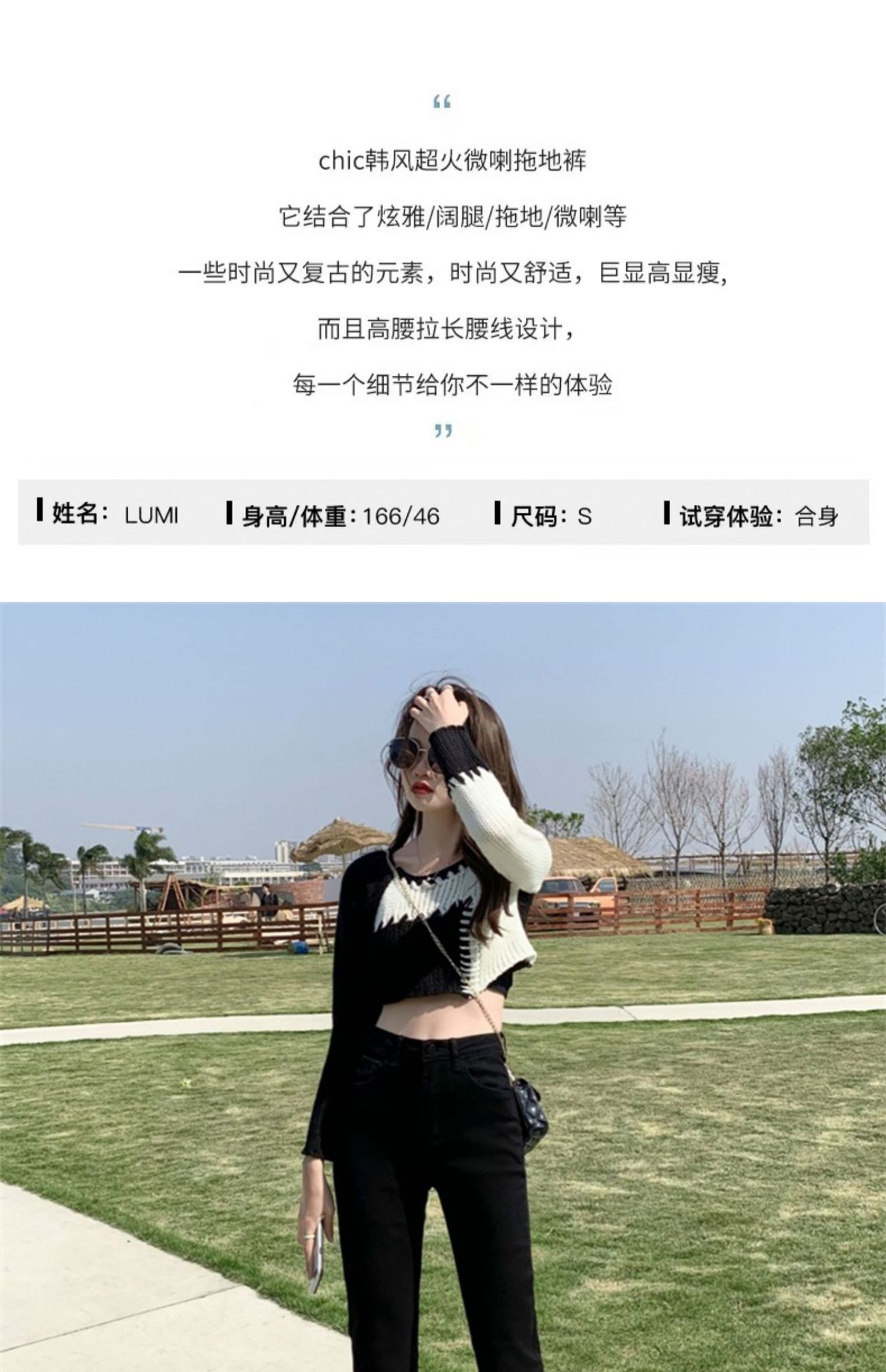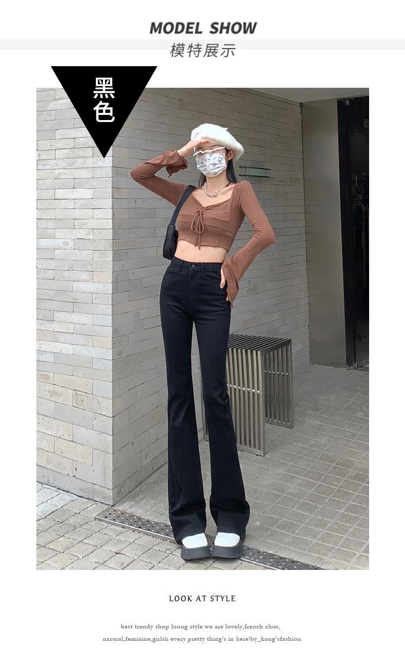 Vaqueros negros de tiro alto y micro acampanados para mujer, primavera 2024, elásticos, ajustados y de pierna ancha.