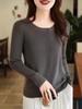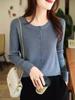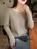 Suéter de punto fino de imitación francesa para mujer, diseño de 24 piezas, cuello medio abierto, manga larga, camisa interior