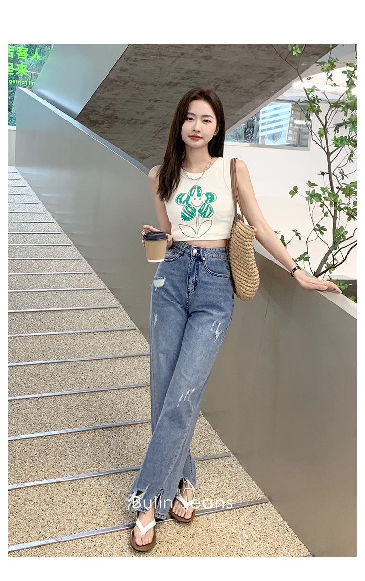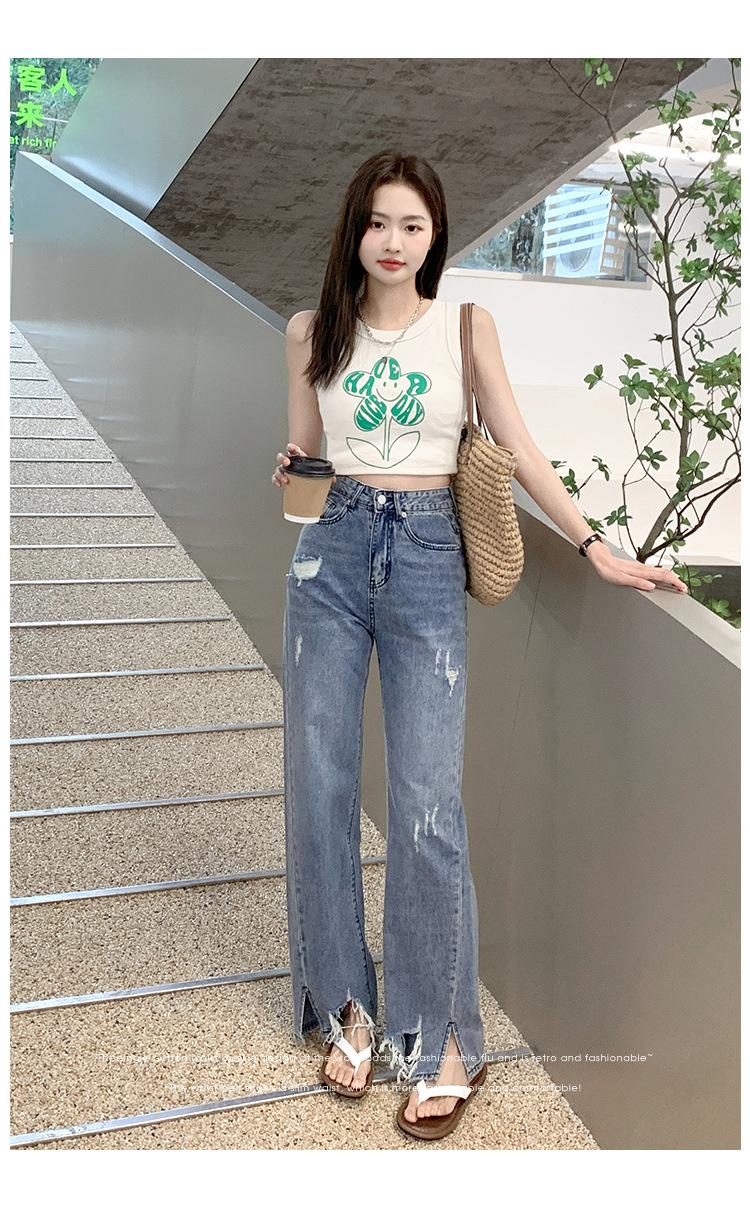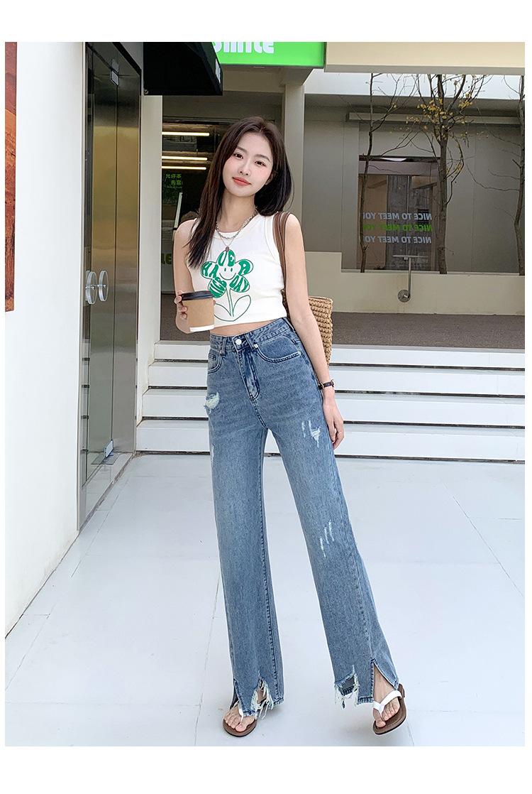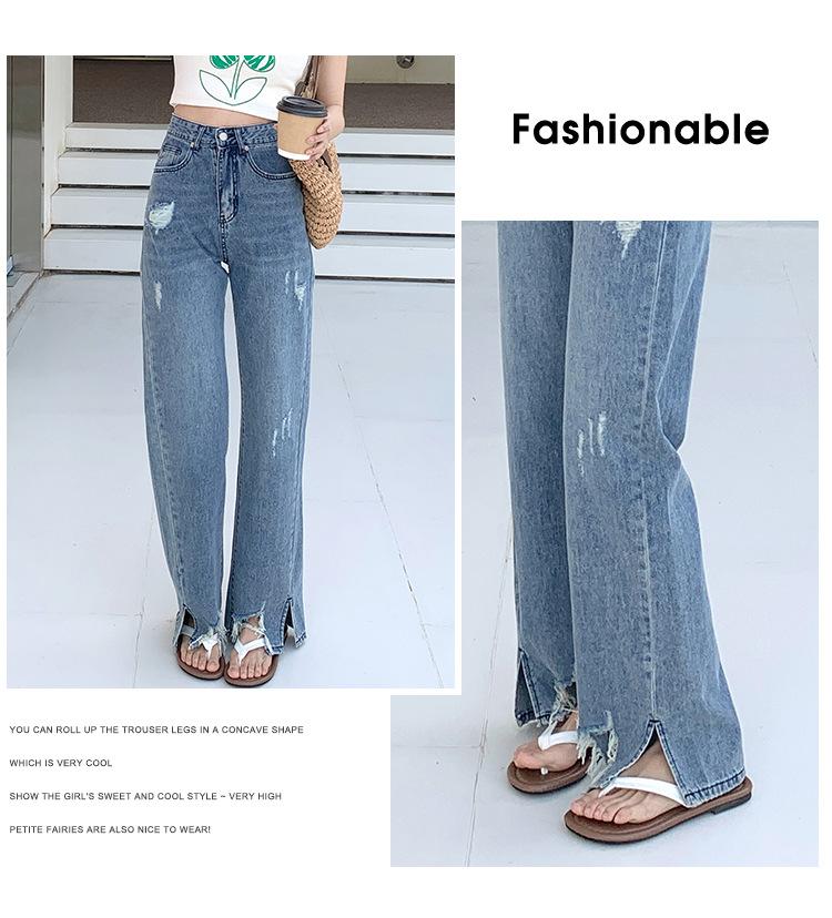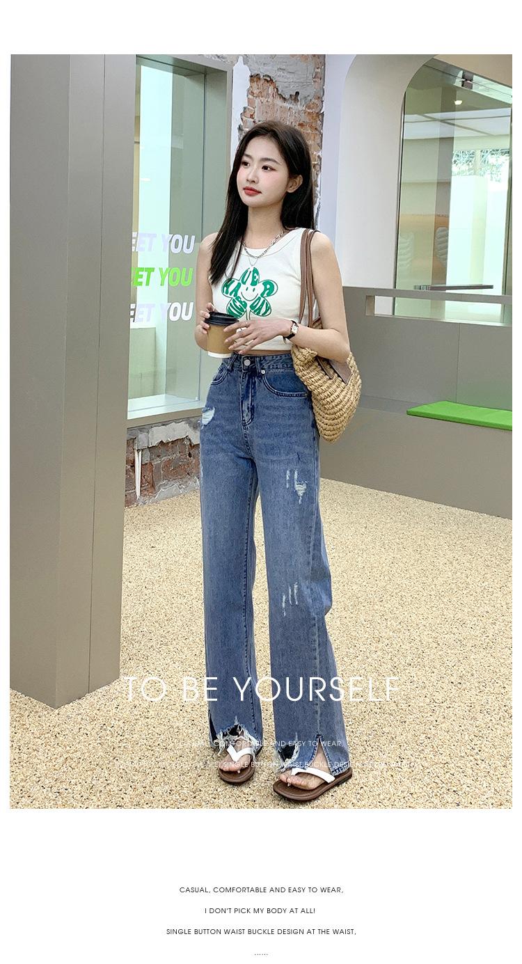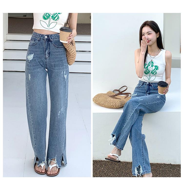 Pantalones vaqueros rasgados de pierna ancha para mujer, de Design Sense, otoño 2024, nuevos, holgados, adelgazantes, de cintura alta, rectos y a la moda.