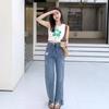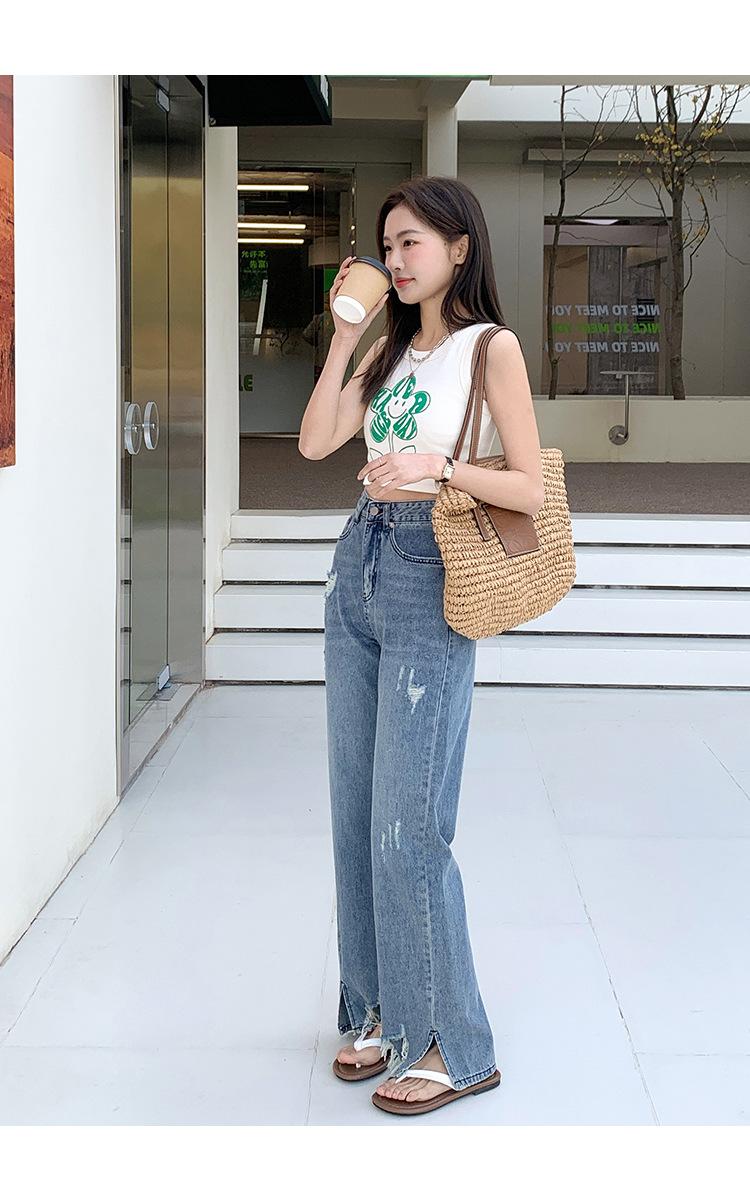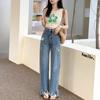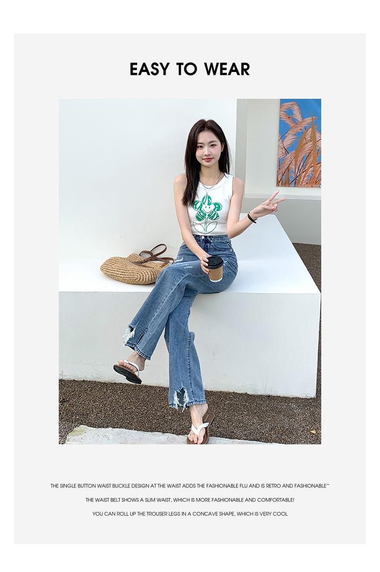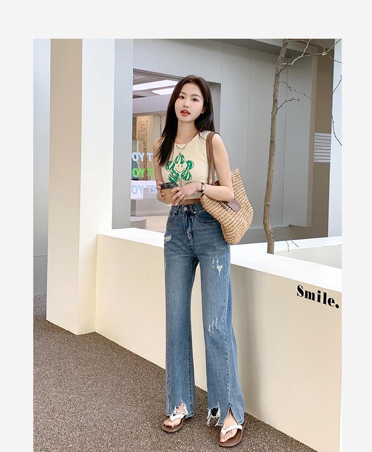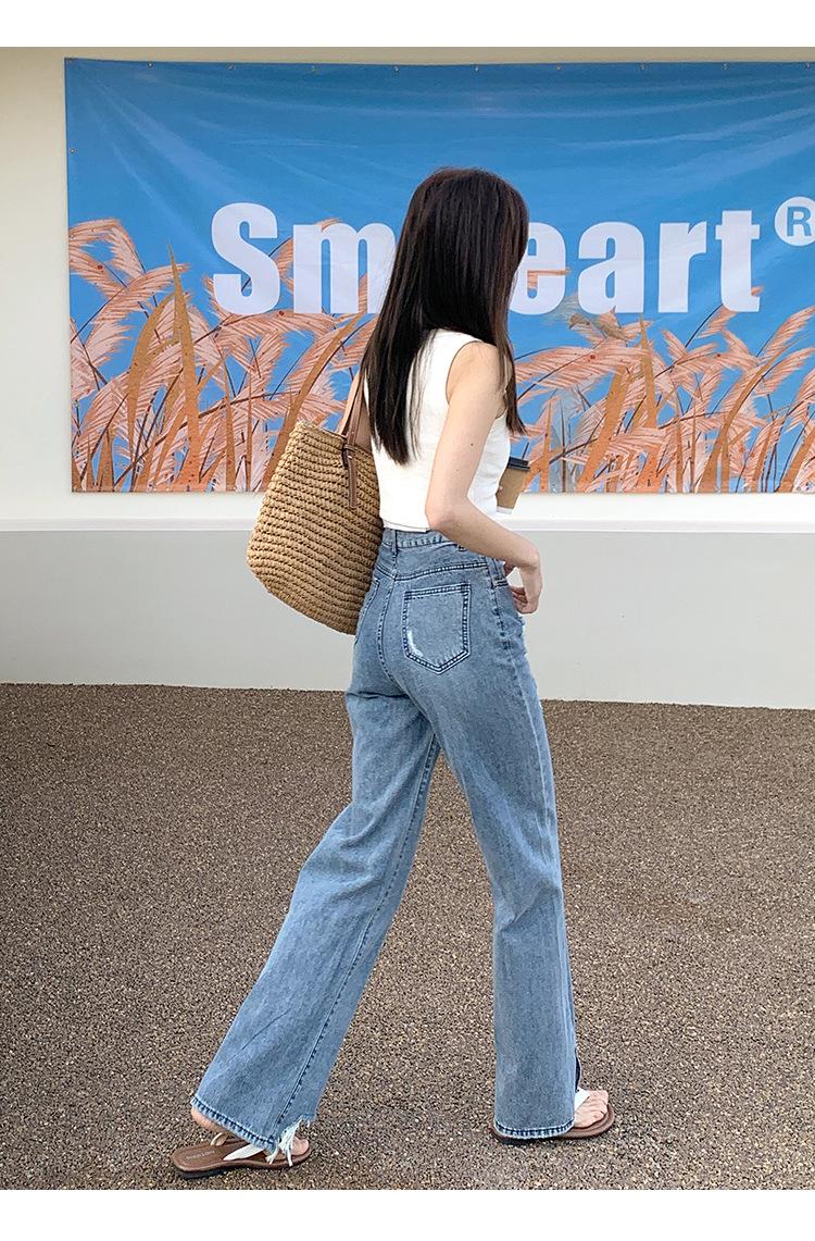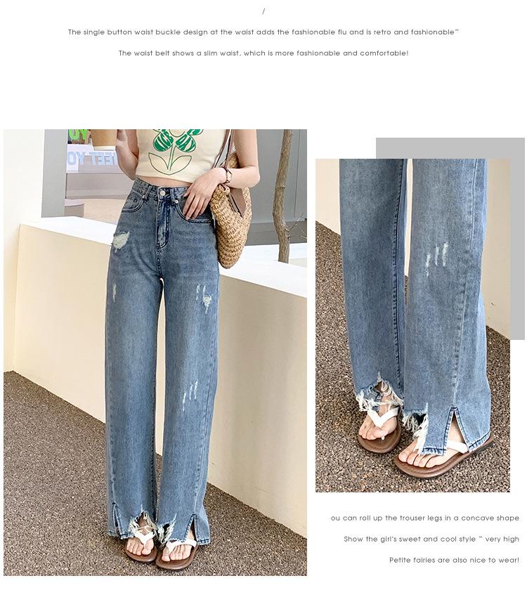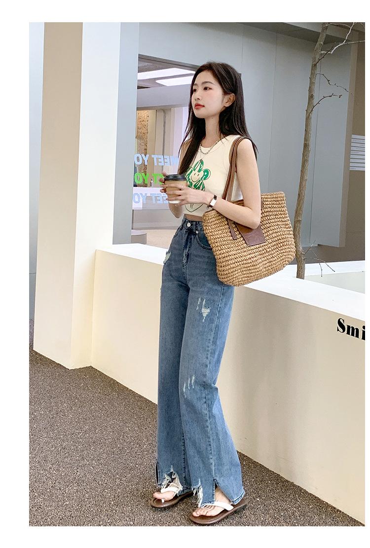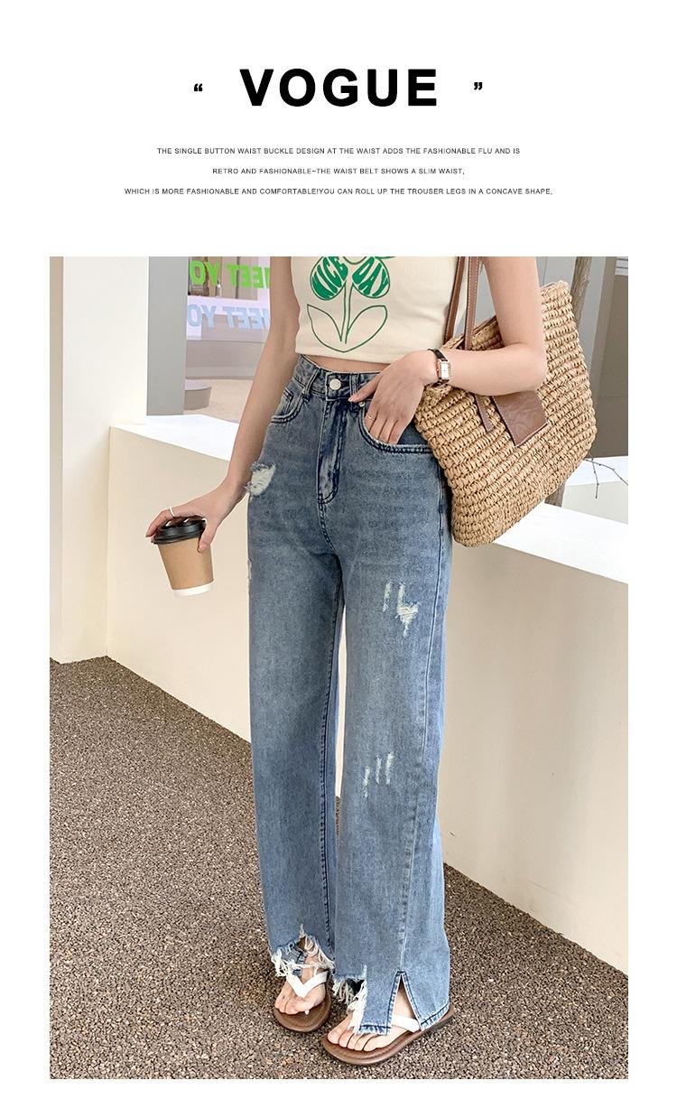 Pantalones vaqueros rasgados de pierna ancha para mujer, de Design Sense, otoño 2024, nuevos, holgados, adelgazantes, de cintura alta, rectos y a la moda.