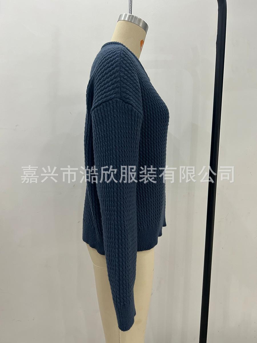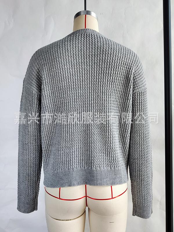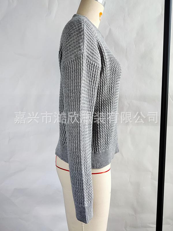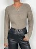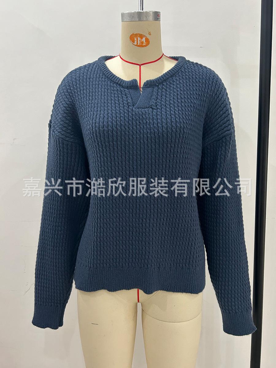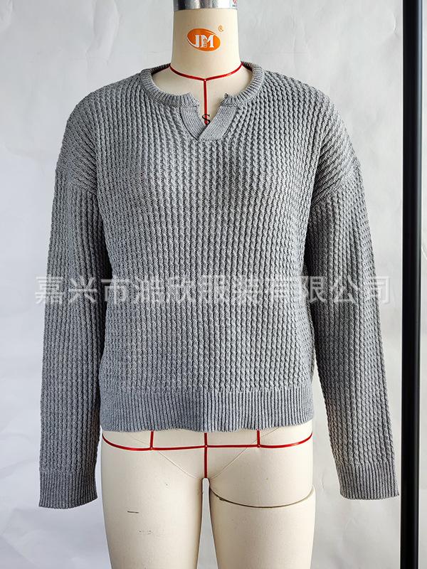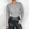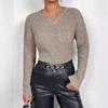 Suéter de Punto de Moda de Color Puro para Mujer de Otoño e Invierno para Exportación Transfronteriza Europea y Americana, Jersey de Cuello en V de Manga Larga