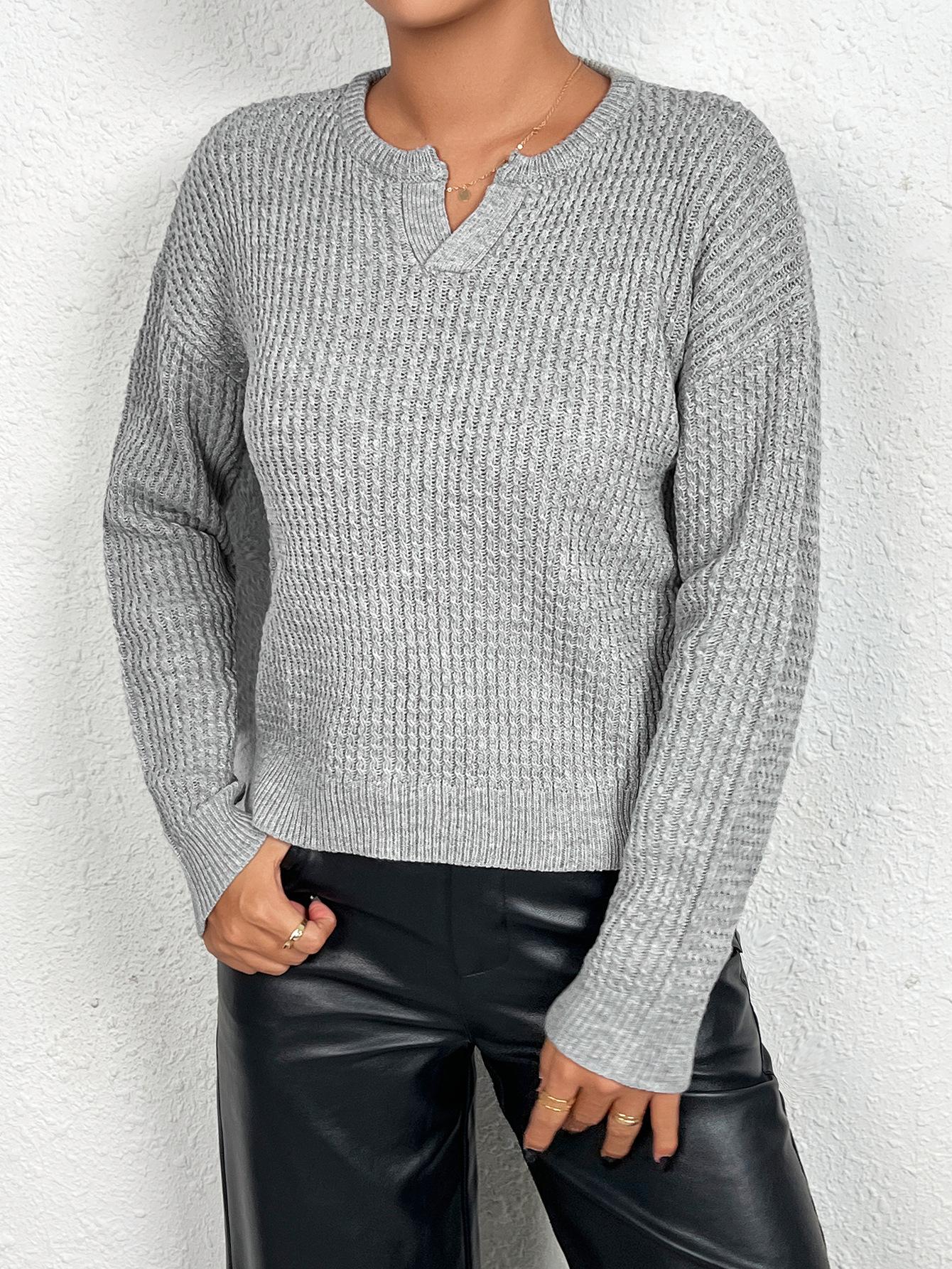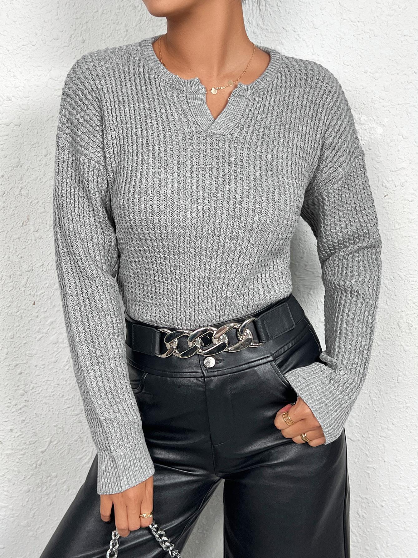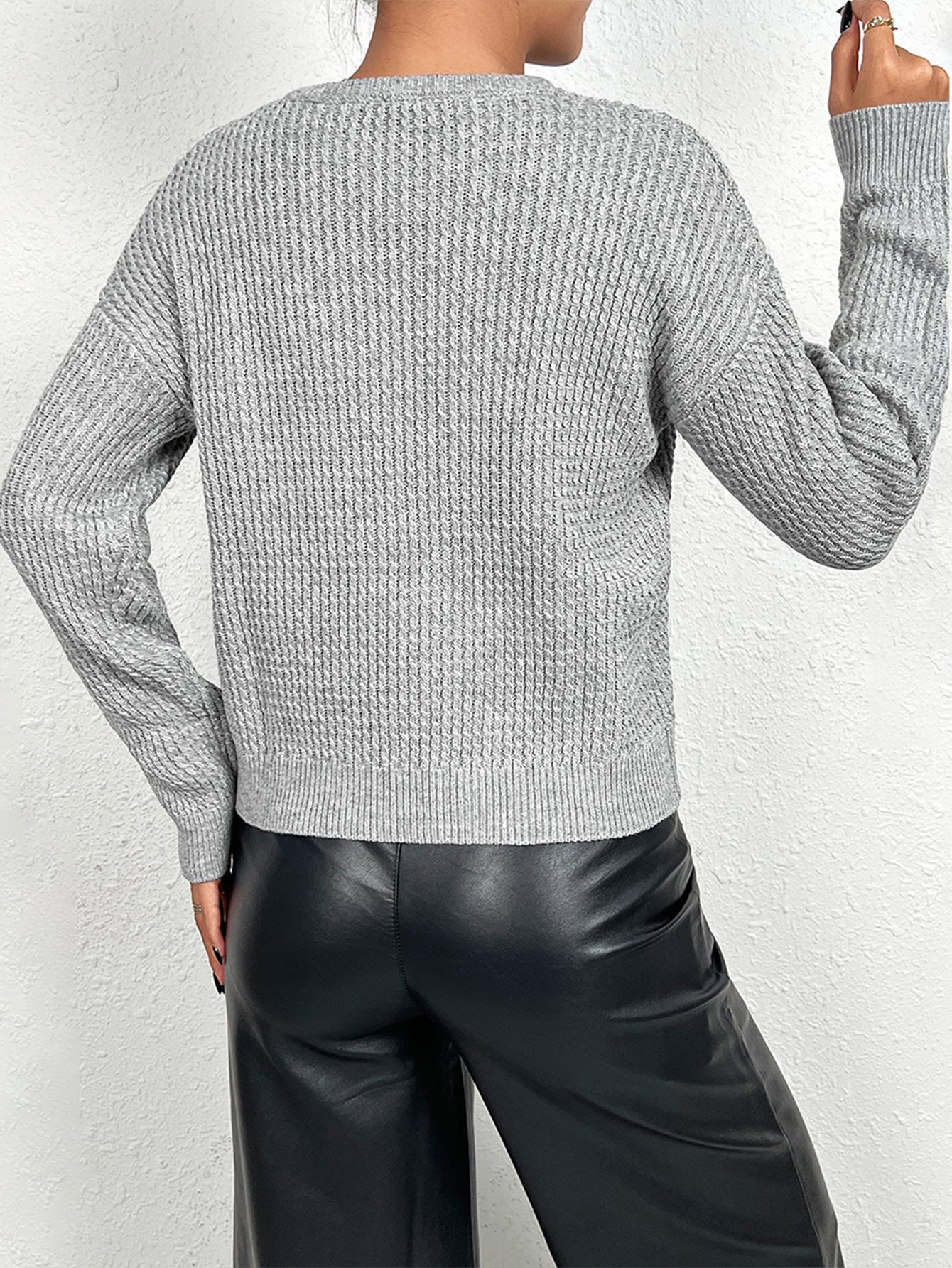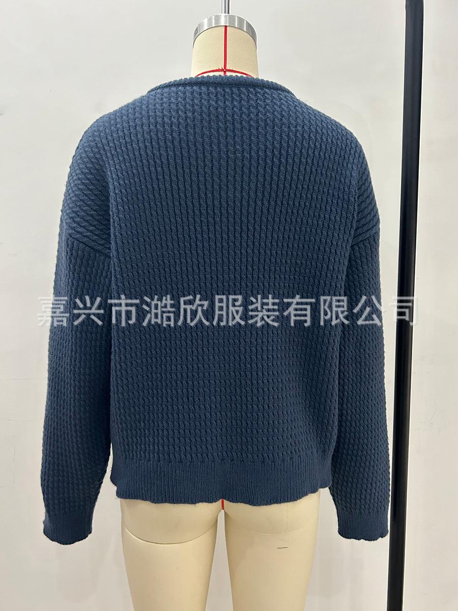 Suéter de Punto de Moda de Color Puro para Mujer de Otoño e Invierno para Exportación Transfronteriza Europea y Americana, Jersey de Cuello en V de Manga Larga
