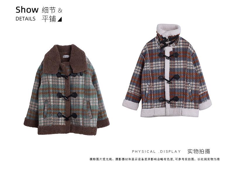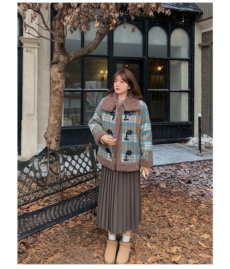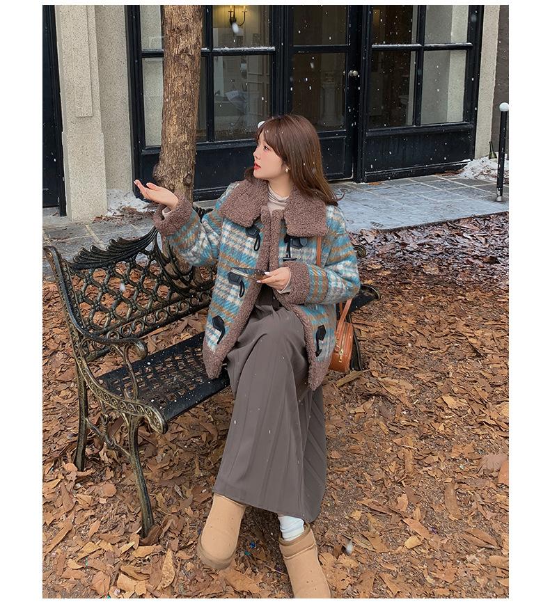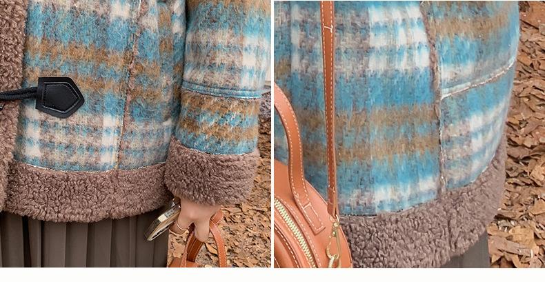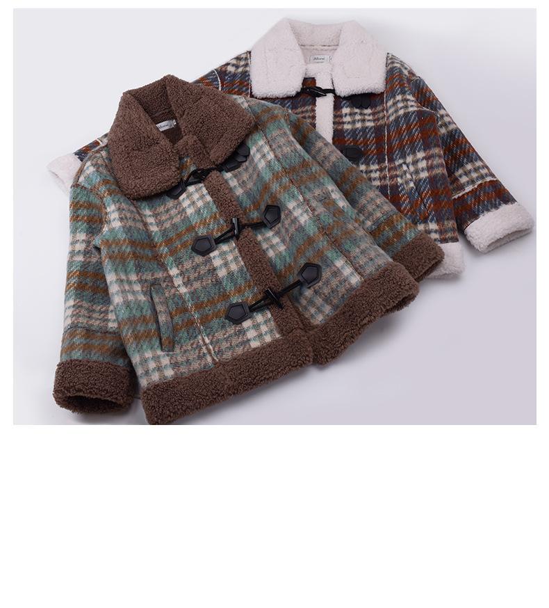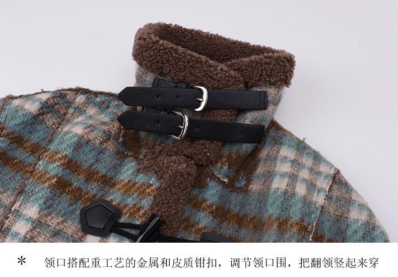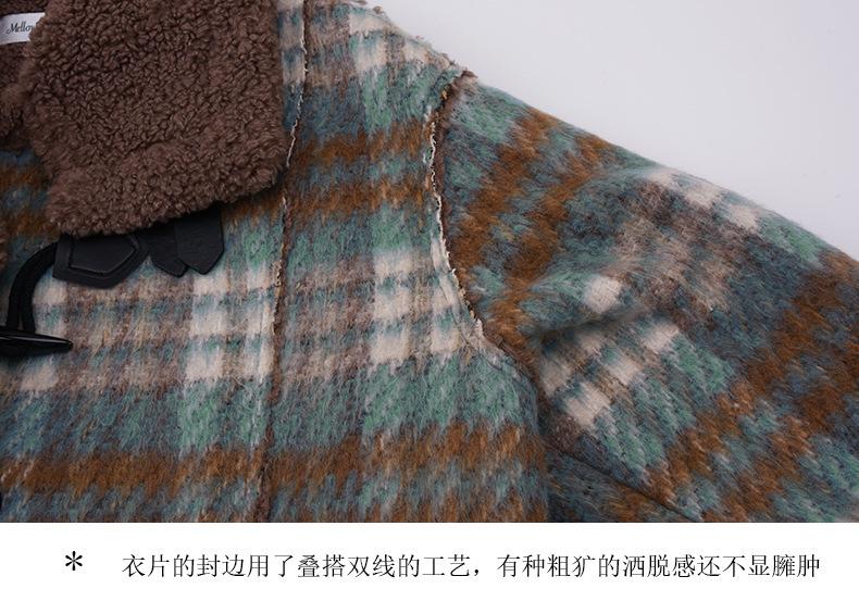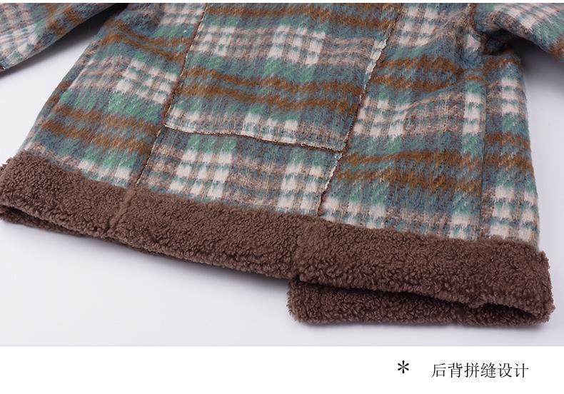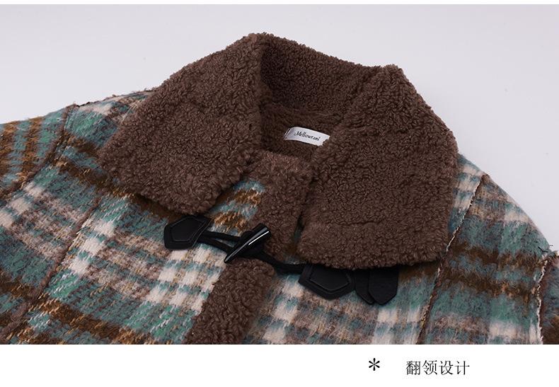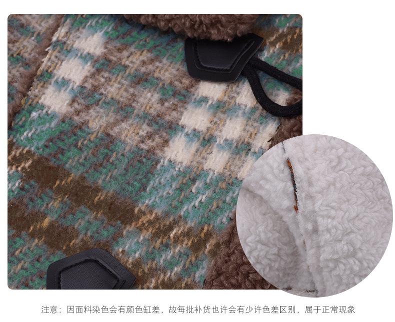 Se utiliza una tela compuesta de espiga de trigo a cuadros gruesa y cálida, que tiene una textura rústica de cuadros.