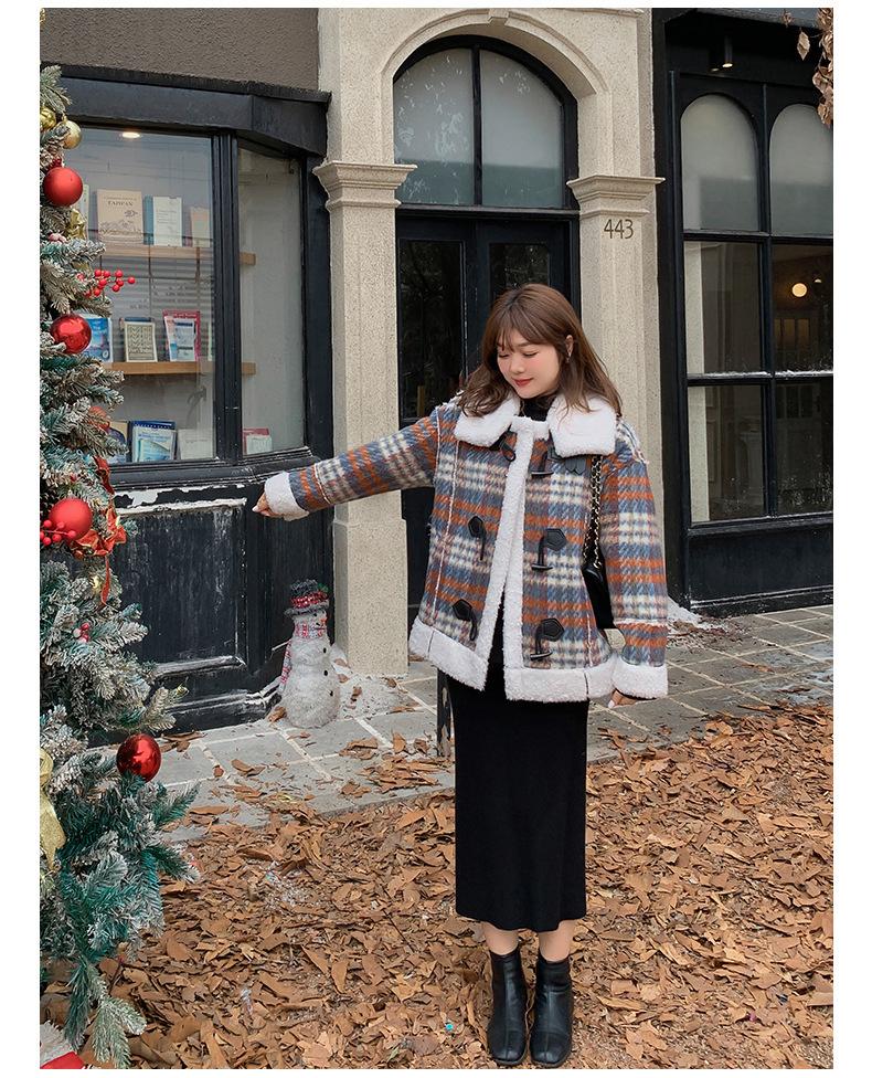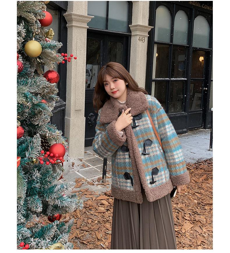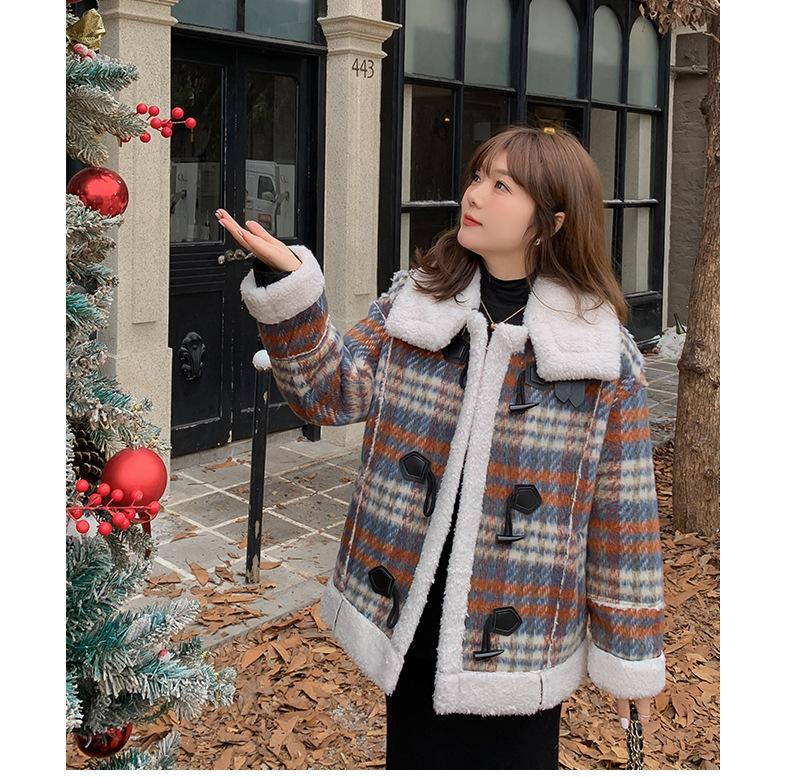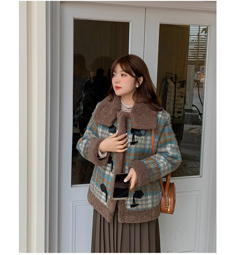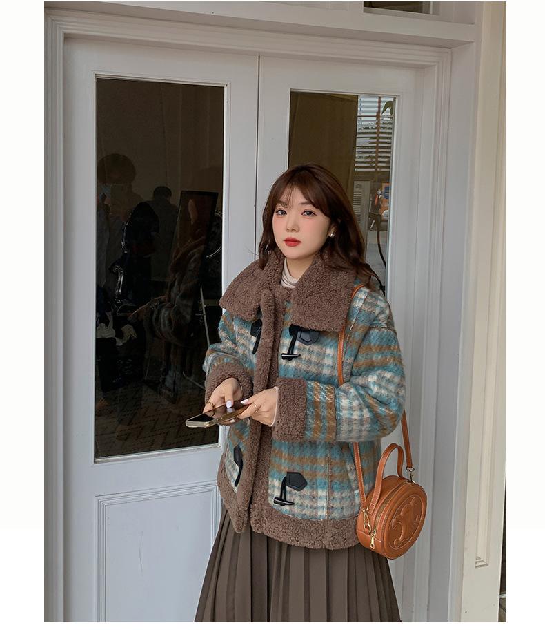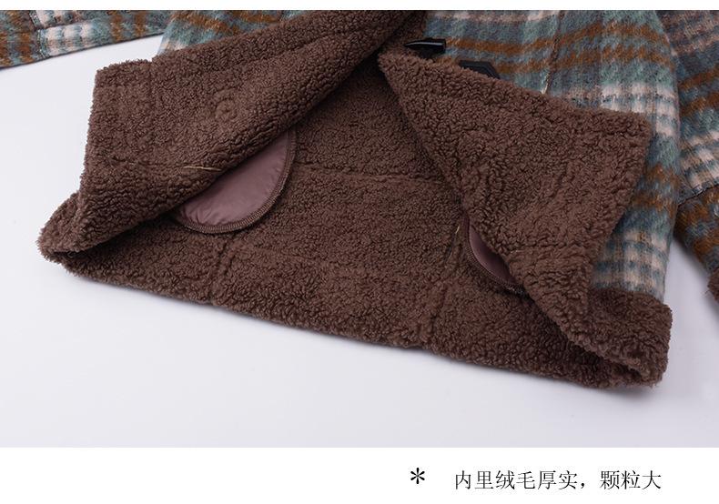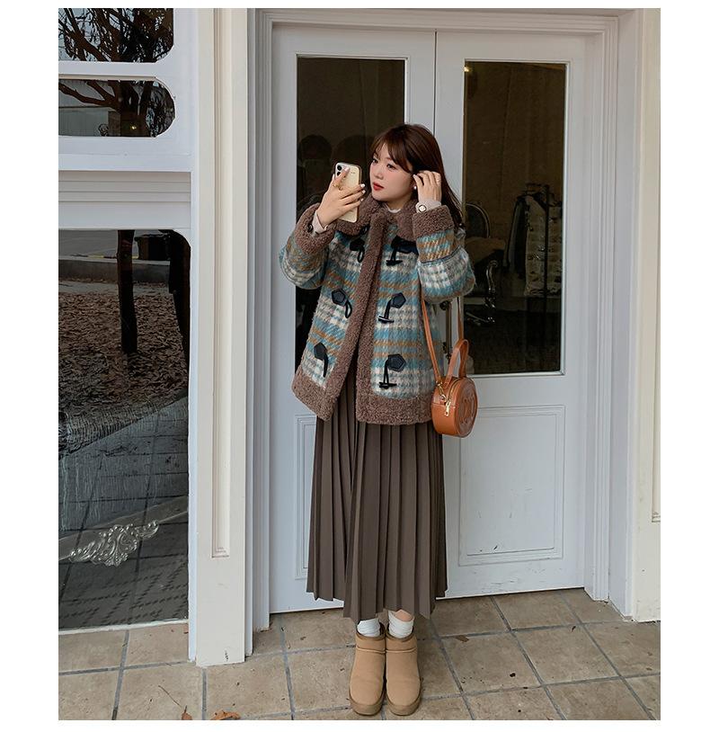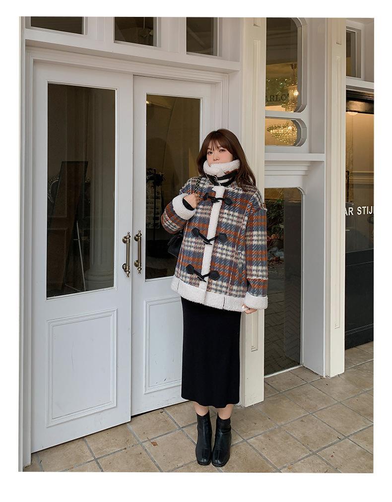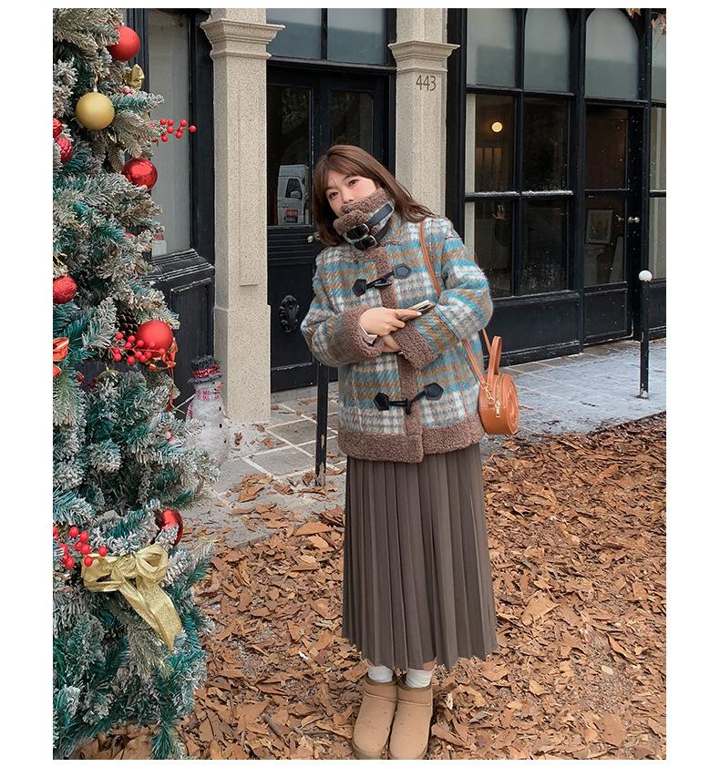 Se utiliza una tela compuesta de espiga de trigo a cuadros gruesa y cálida, que tiene una textura rústica de cuadros.