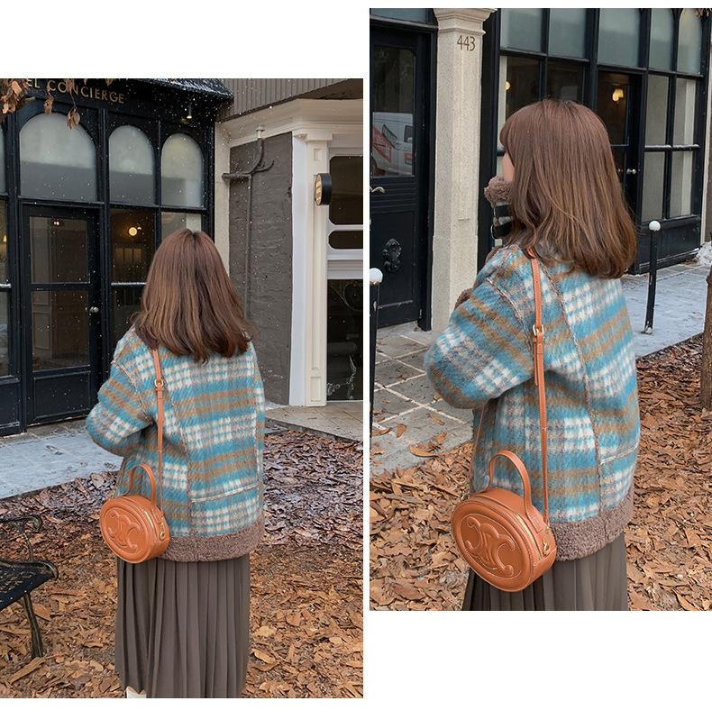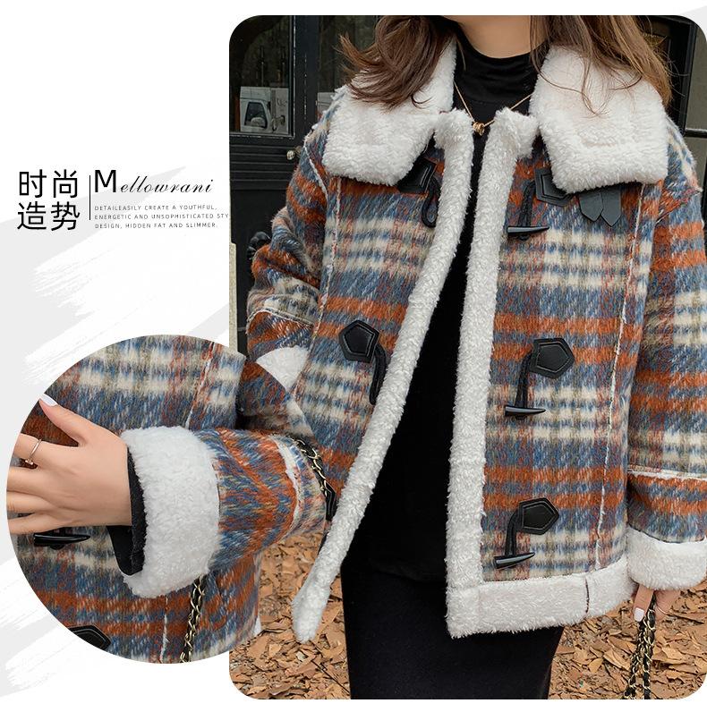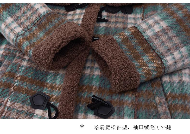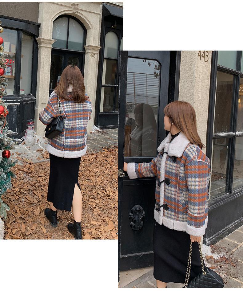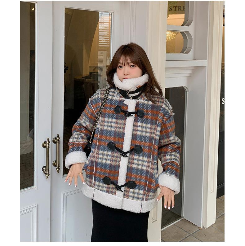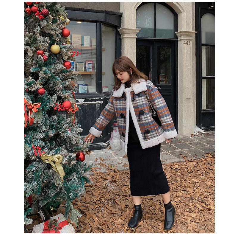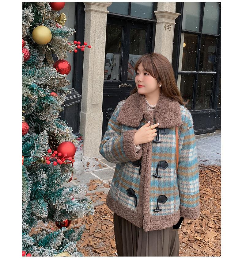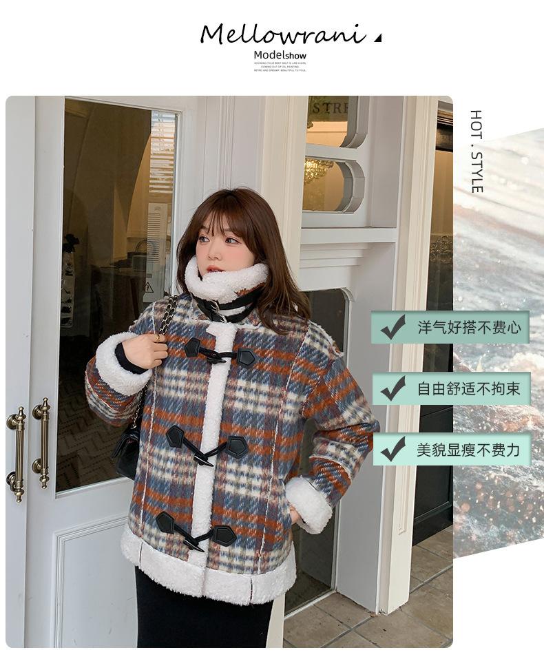 Se utiliza una tela compuesta de espiga de trigo a cuadros gruesa y cálida, que tiene una textura rústica de cuadros.