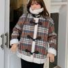 Chaqueta de cuadros de felpa adherida