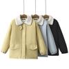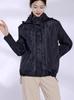 Bolsillos laterales delanteros, hombros caídos, mangas holgadas, puños de terciopelo que se pueden doblar hacia adentro