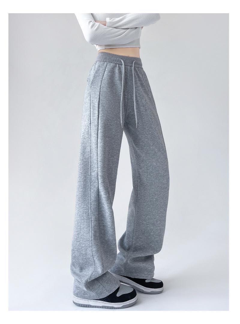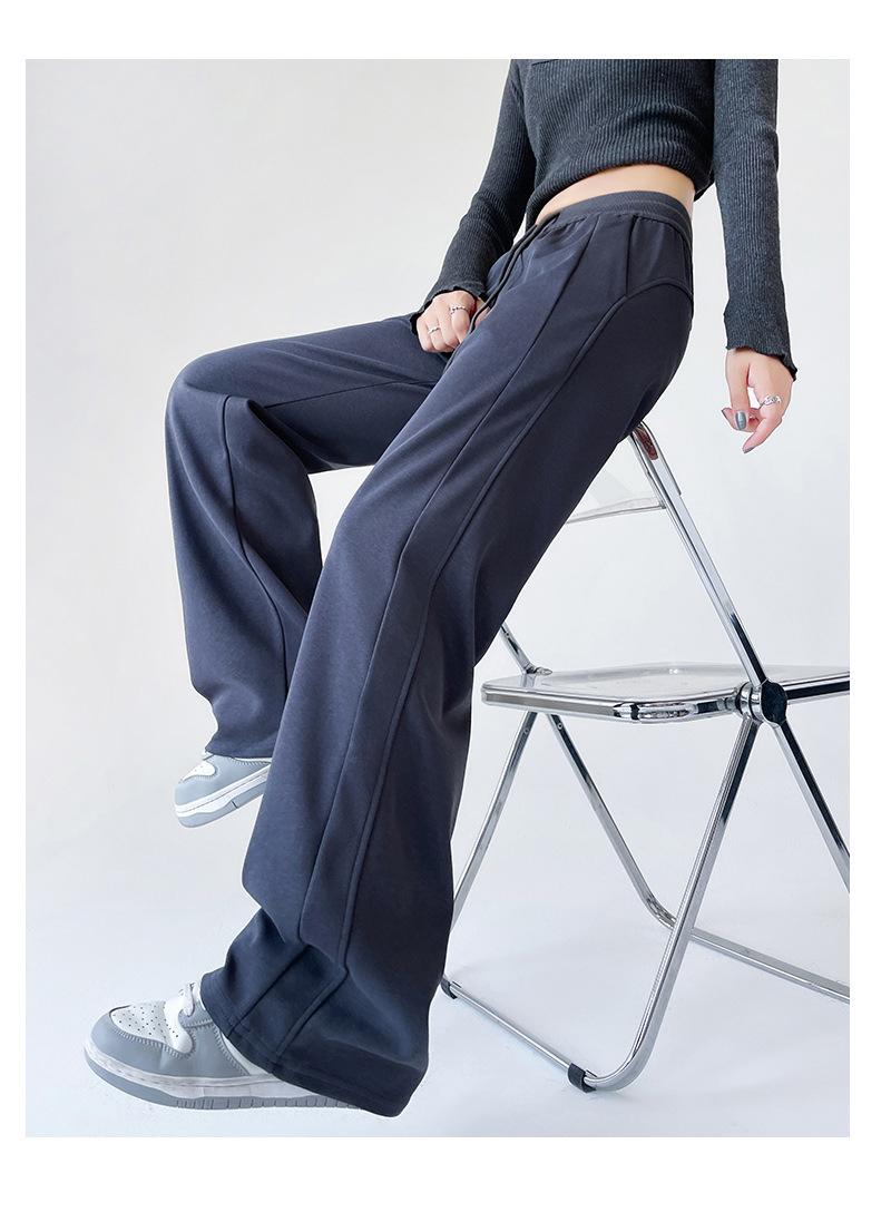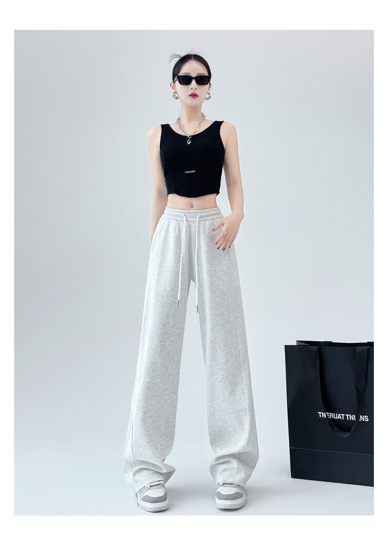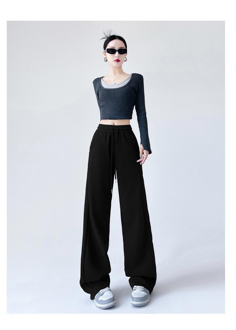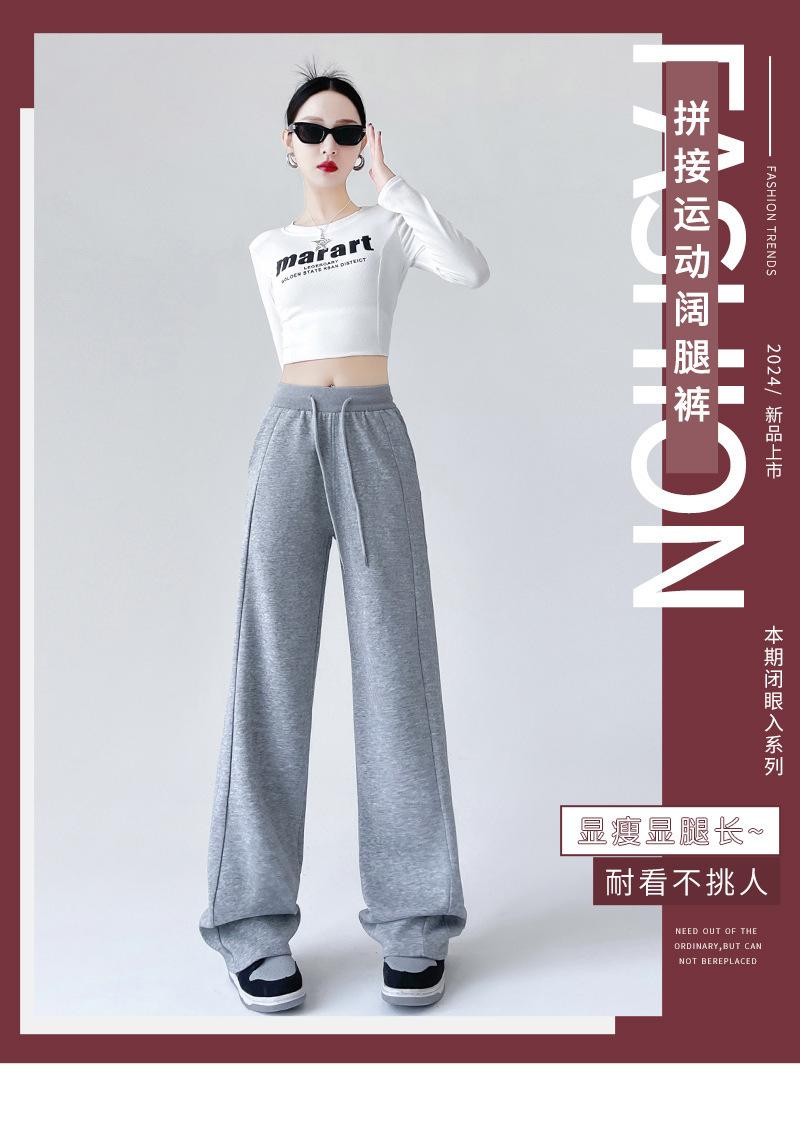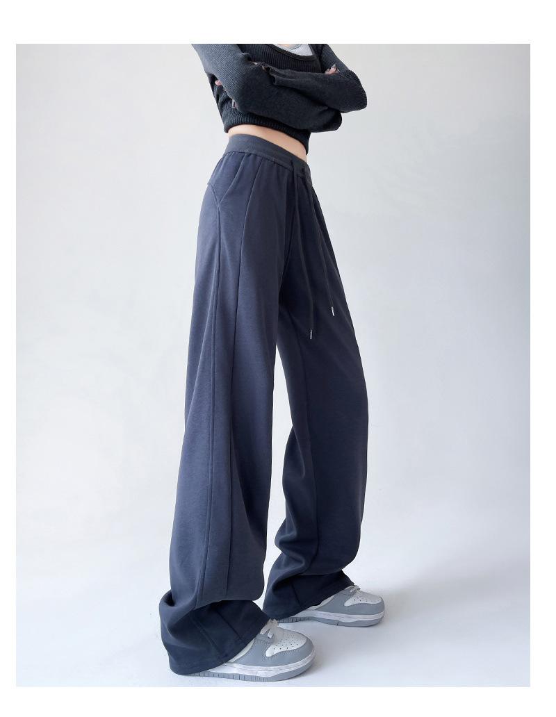 Pantalones deportivos de pierna ancha con costuras de cintura alta estilo americano para mujer, primavera y otoño, informales, holgados y rectos.