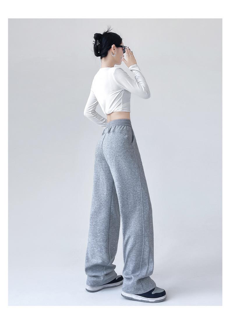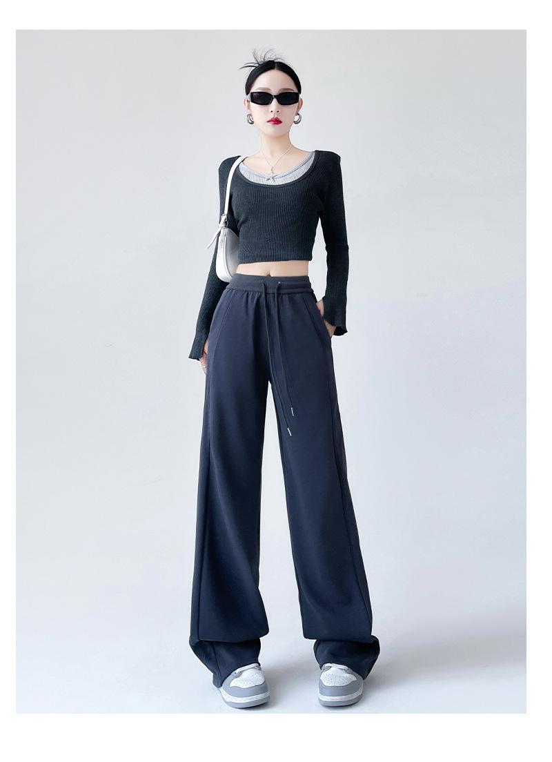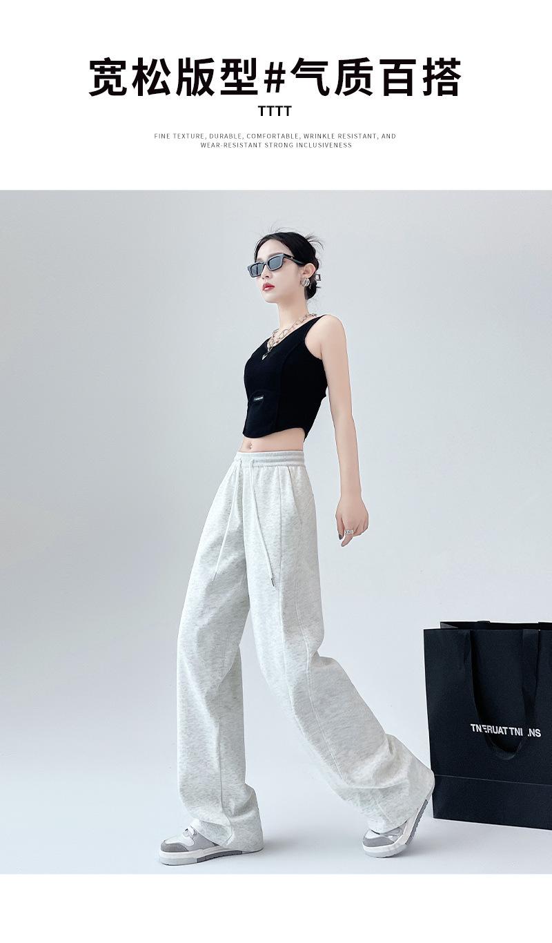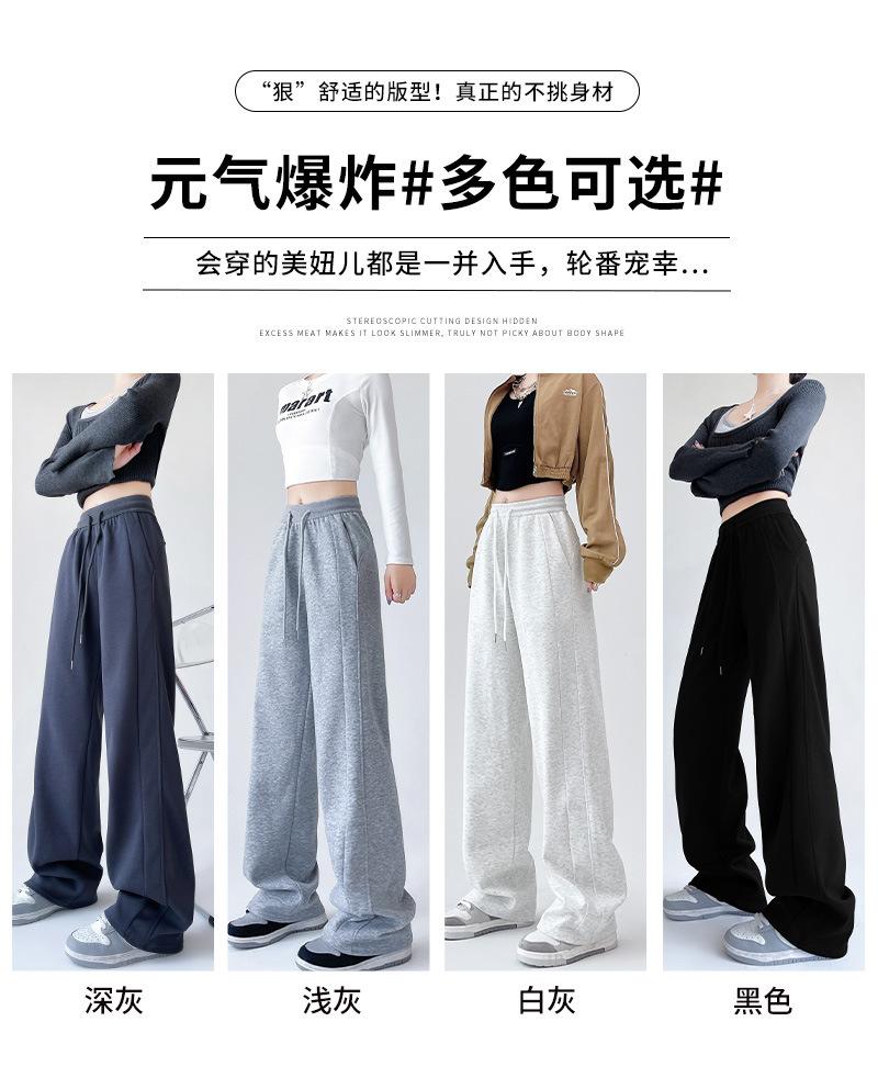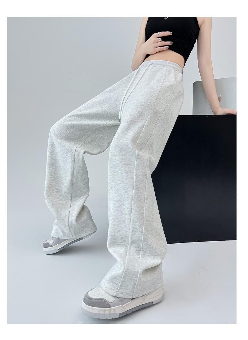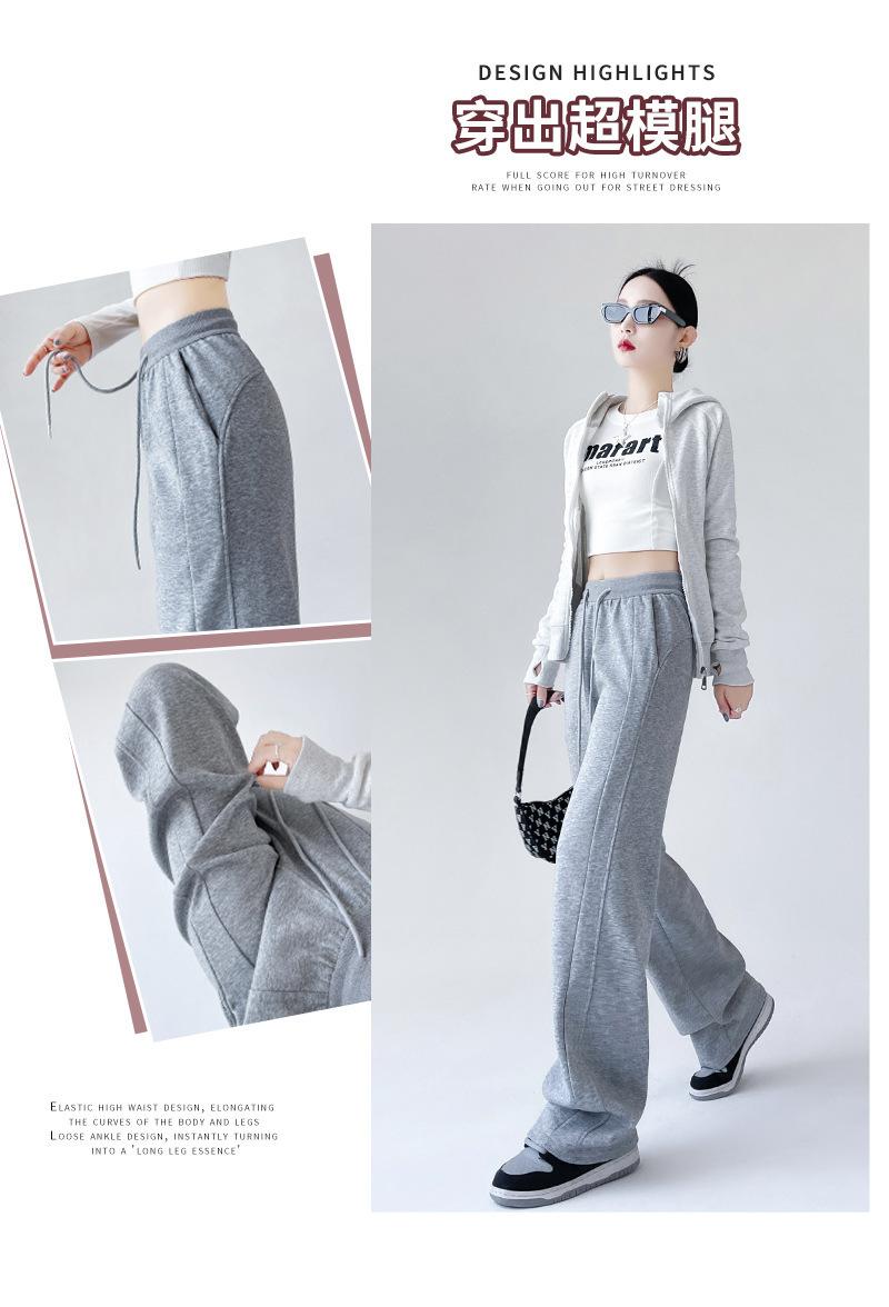 Pantalones deportivos de pierna ancha con costuras de cintura alta estilo americano para mujer, primavera y otoño, informales, holgados y rectos.