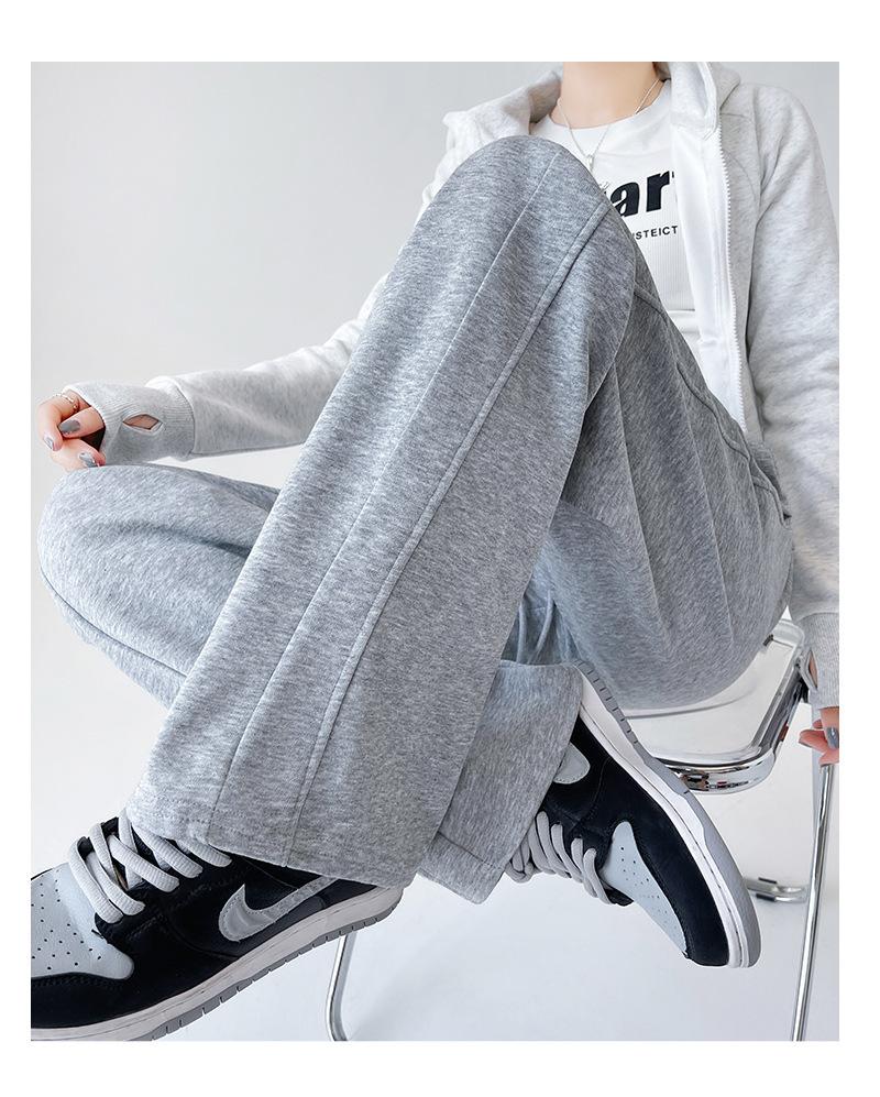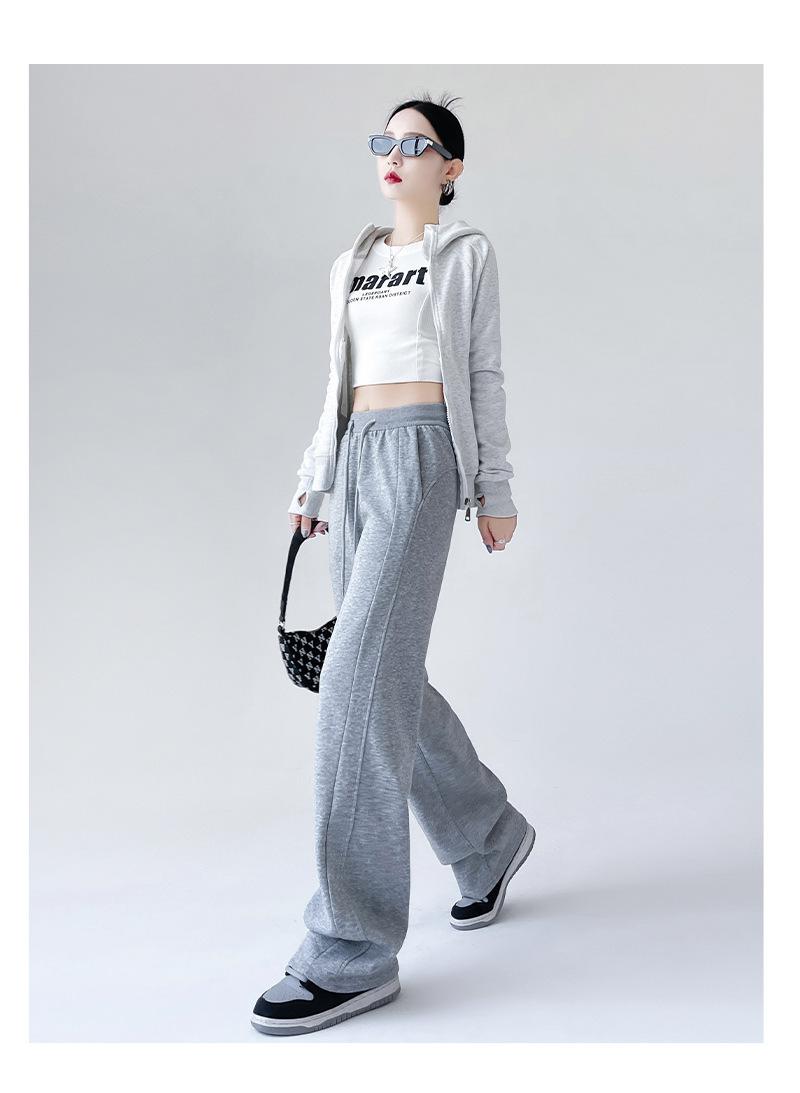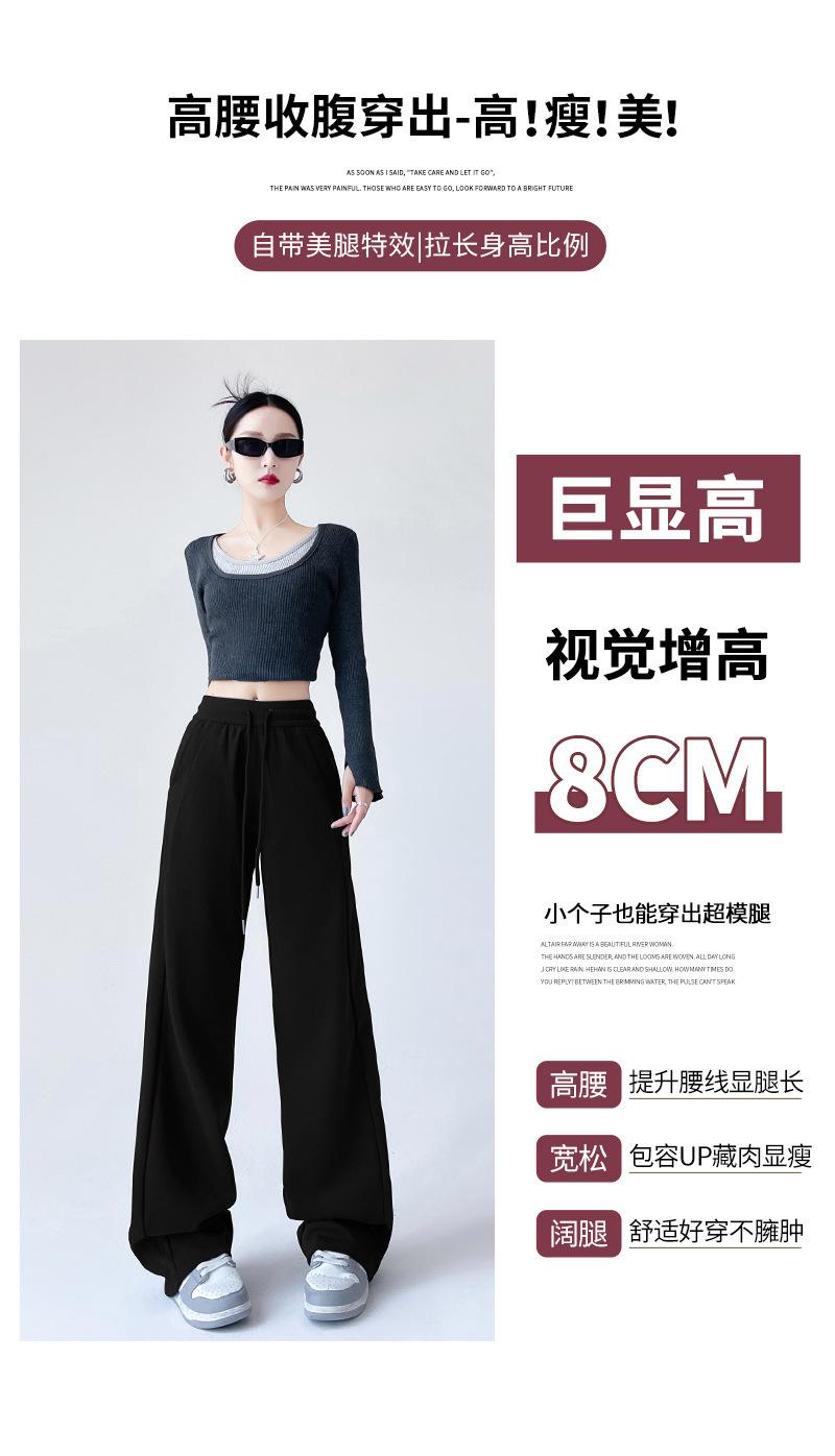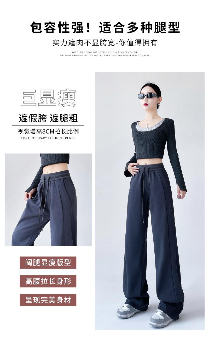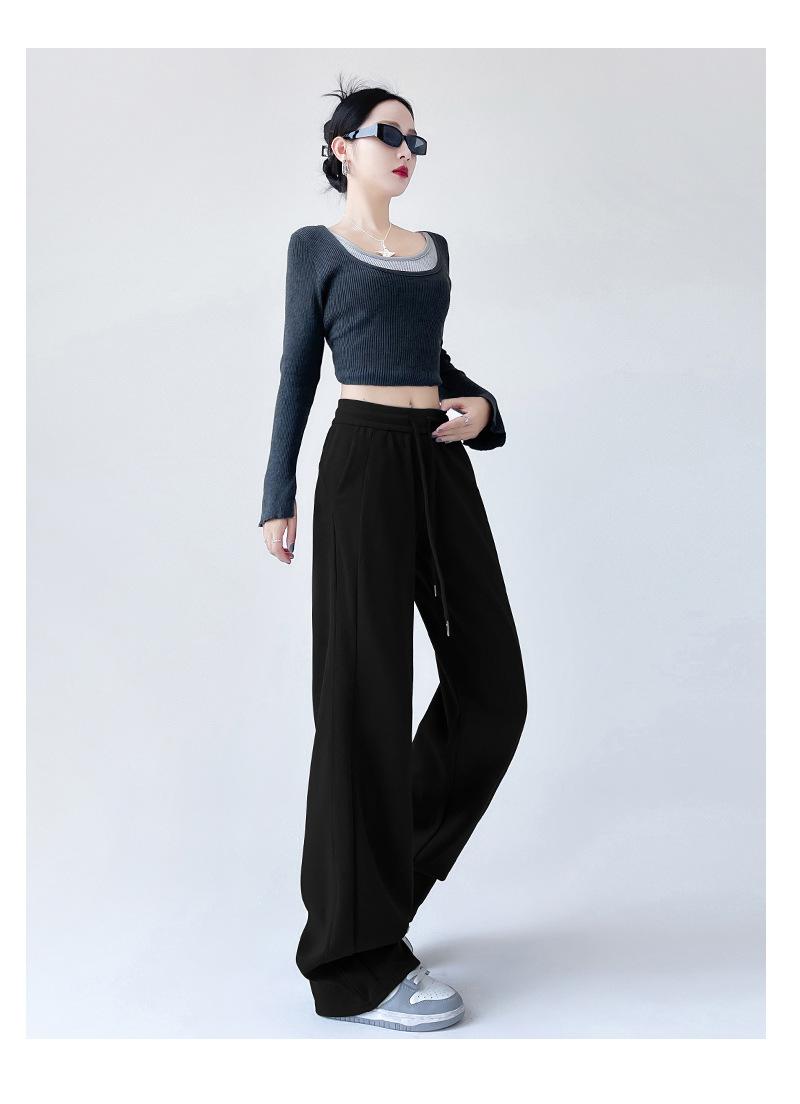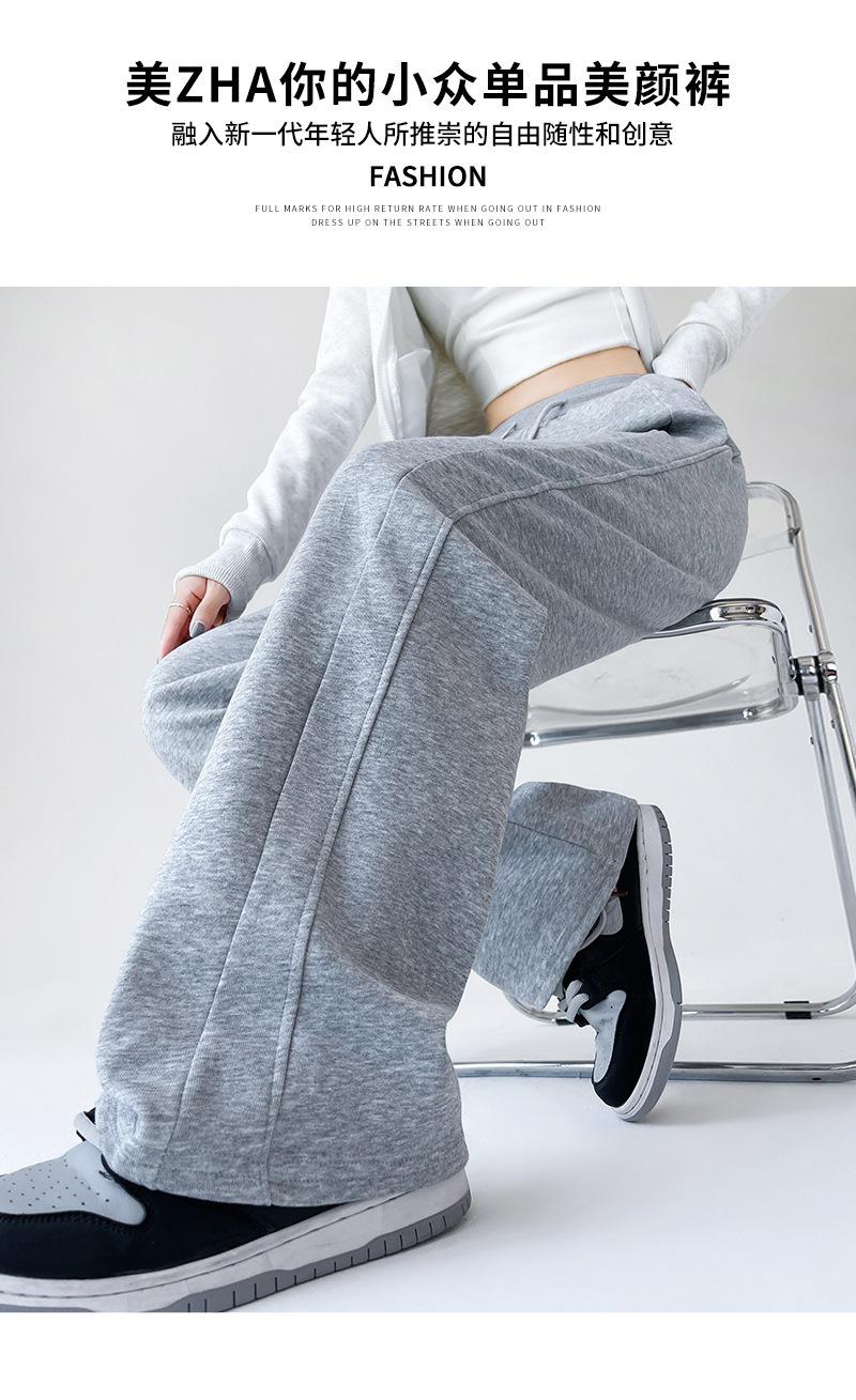 Pantalones deportivos de pierna ancha con costuras de cintura alta estilo americano para mujer, primavera y otoño, informales, holgados y rectos.