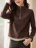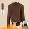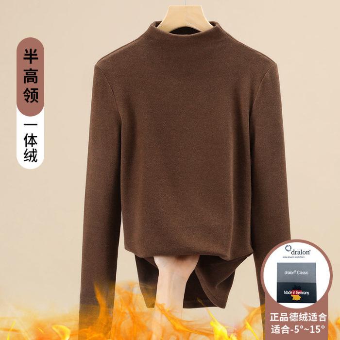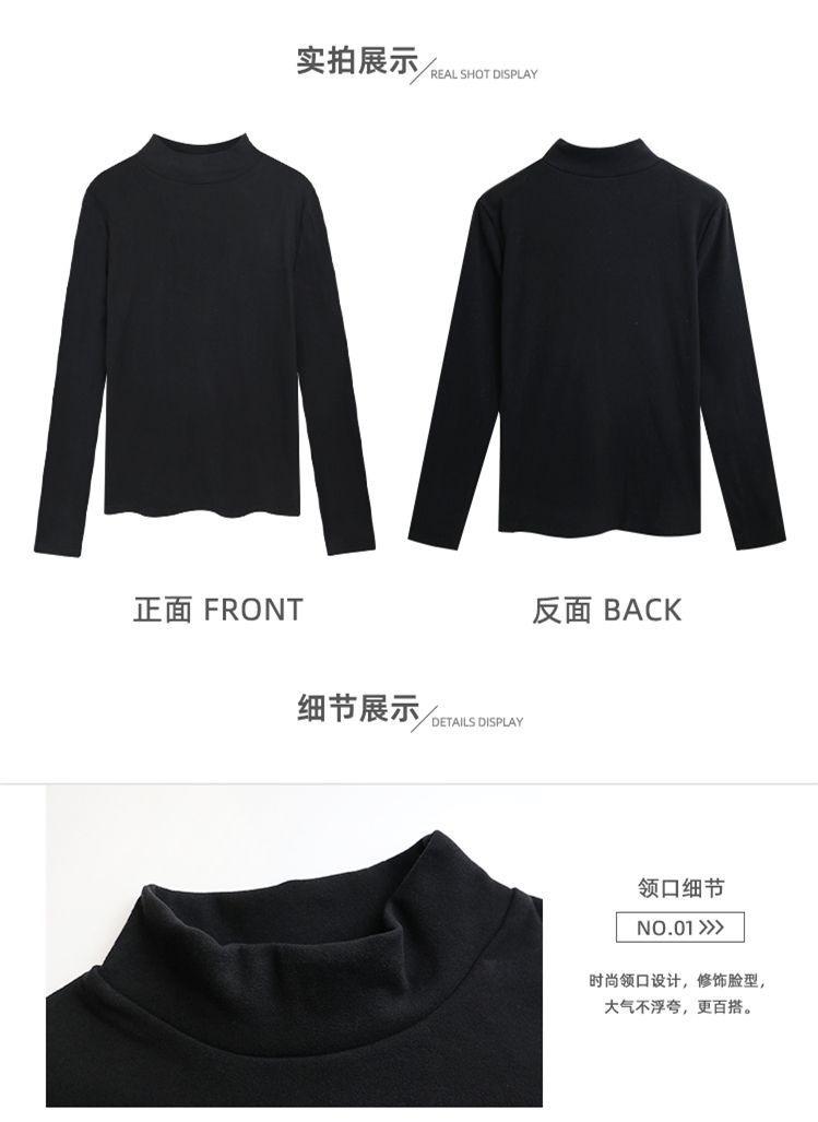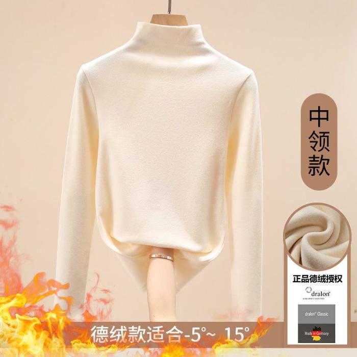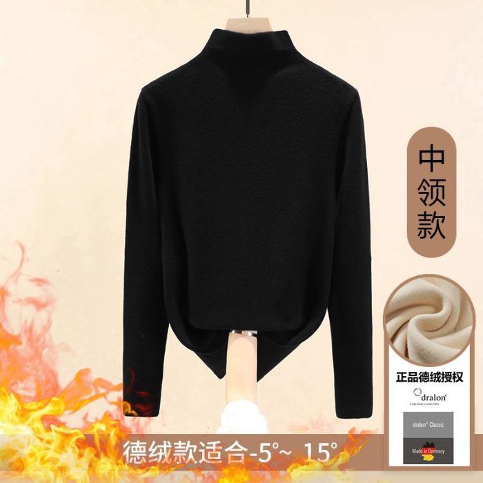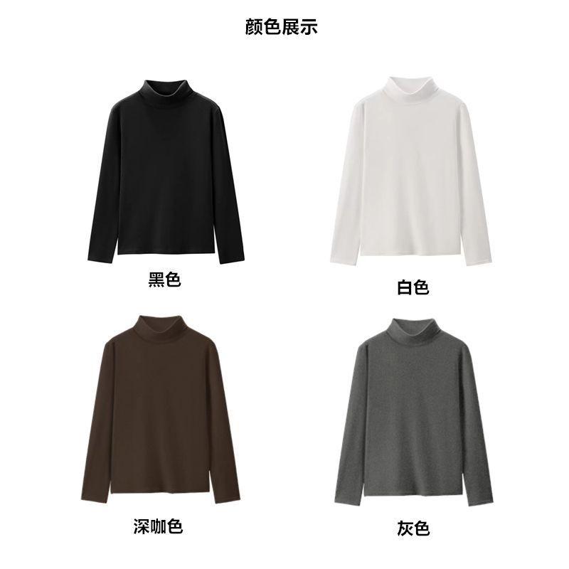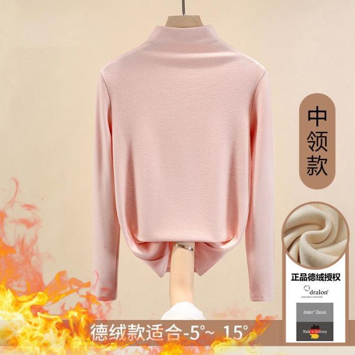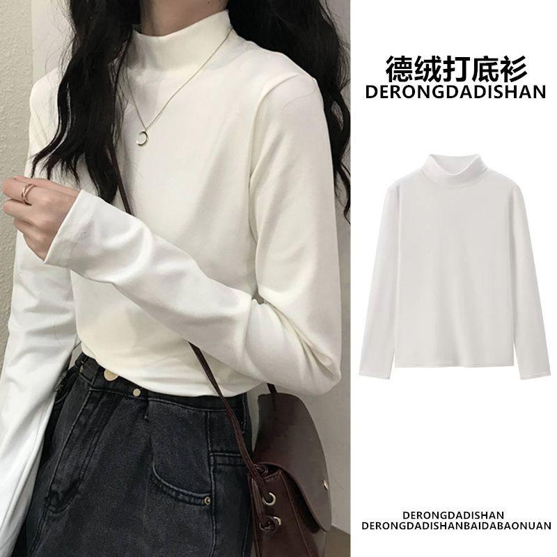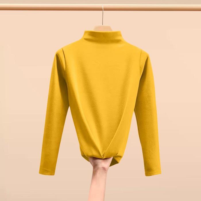 Camisa de terciopelo de color liso con cuello medio alto para mujer, nueva prenda interior informal de manga larga, ajustada y combinable, de invierno 2024, a la moda
