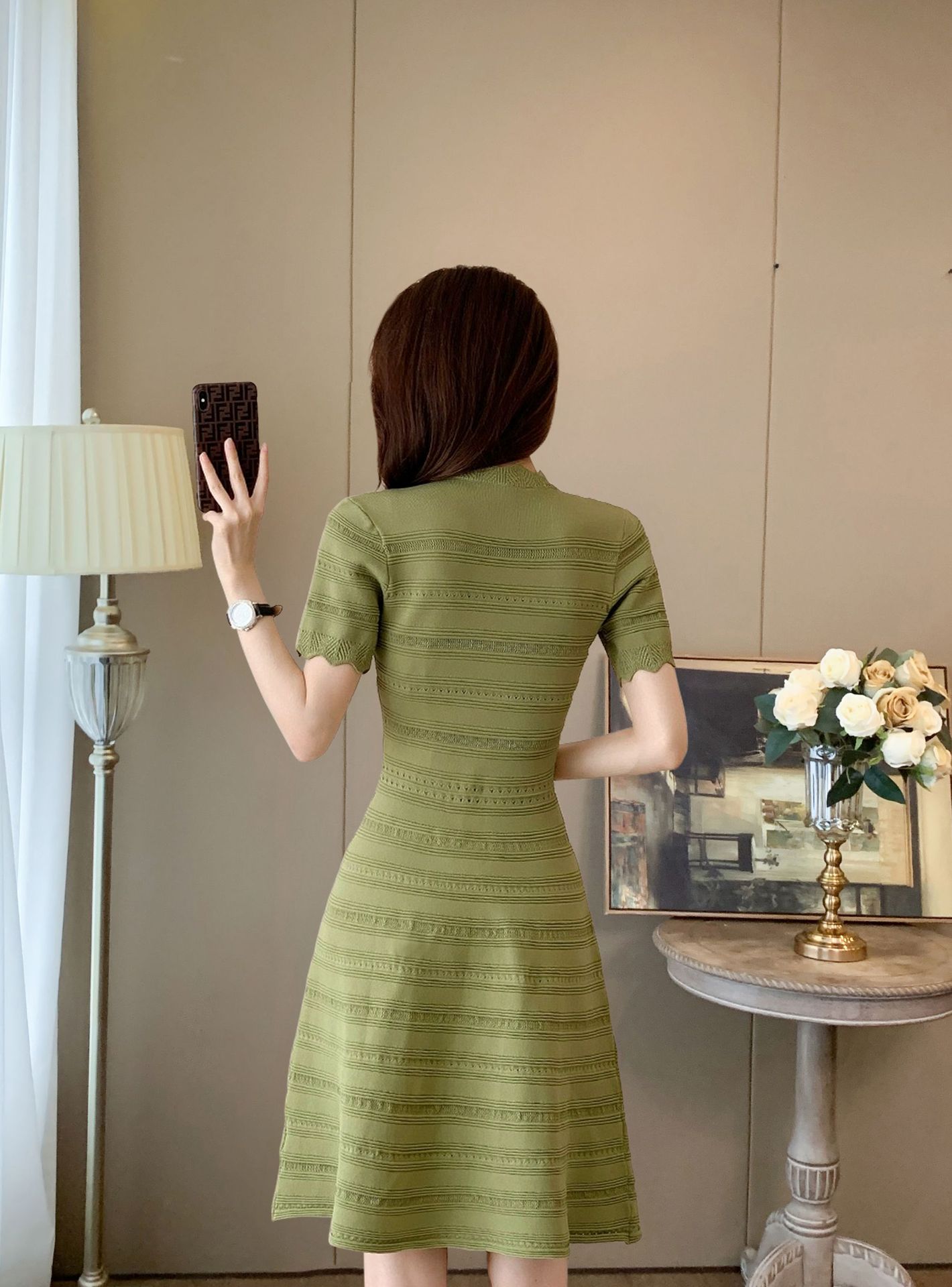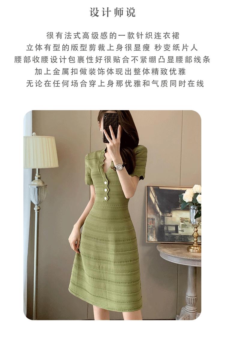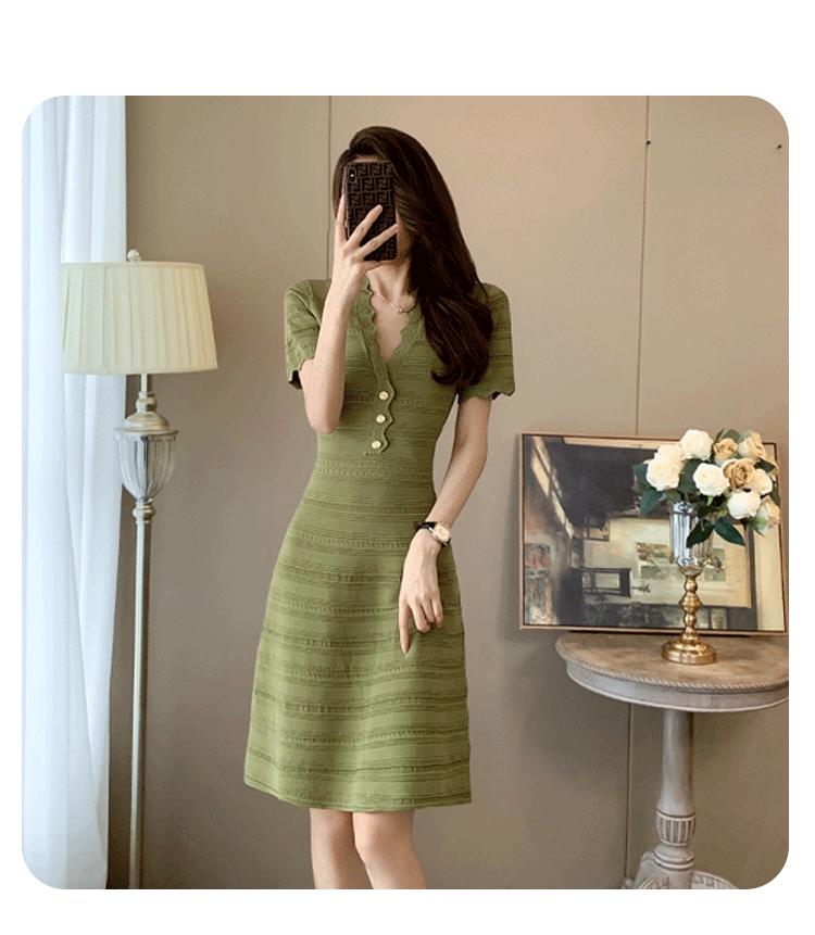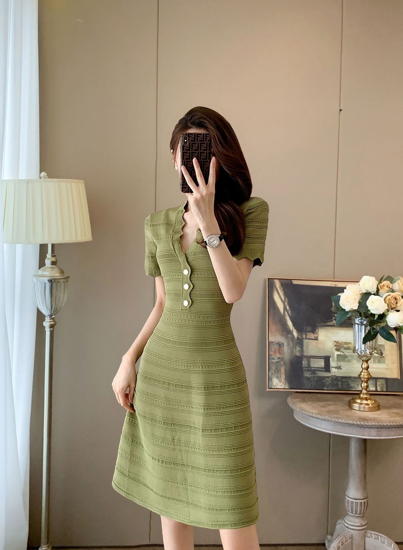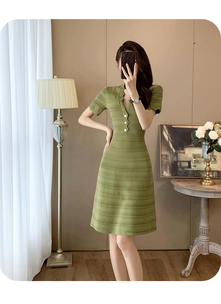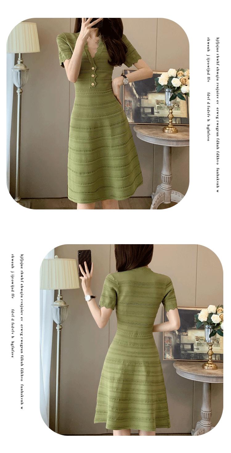 Vestido Elegante Francés de Lujo Accesible de Alta Gama 25 Nuevo Estilo de Primavera y Verano Ligero y Maduro Elegante Cintura Adelgazante Look Cuello en V Falda Línea A
