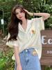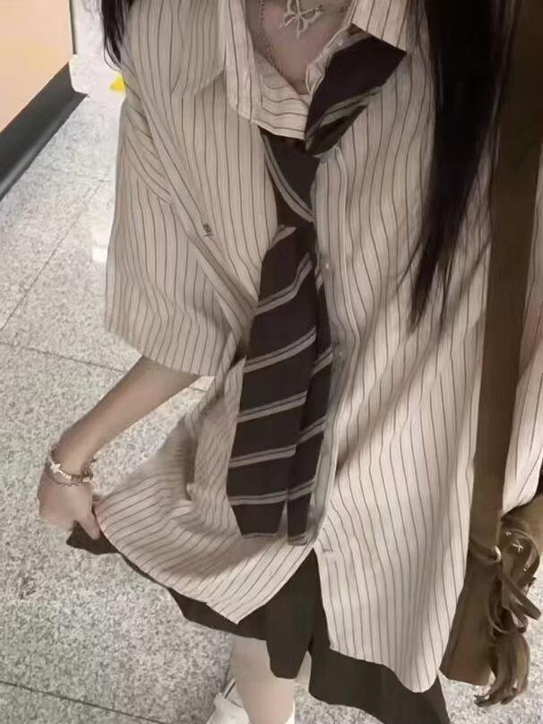 Camisa retro de verano 2024, estilo Hong Kong, para estudiantes, diseño holgado y divertido, nueva prenda para uso exterior.